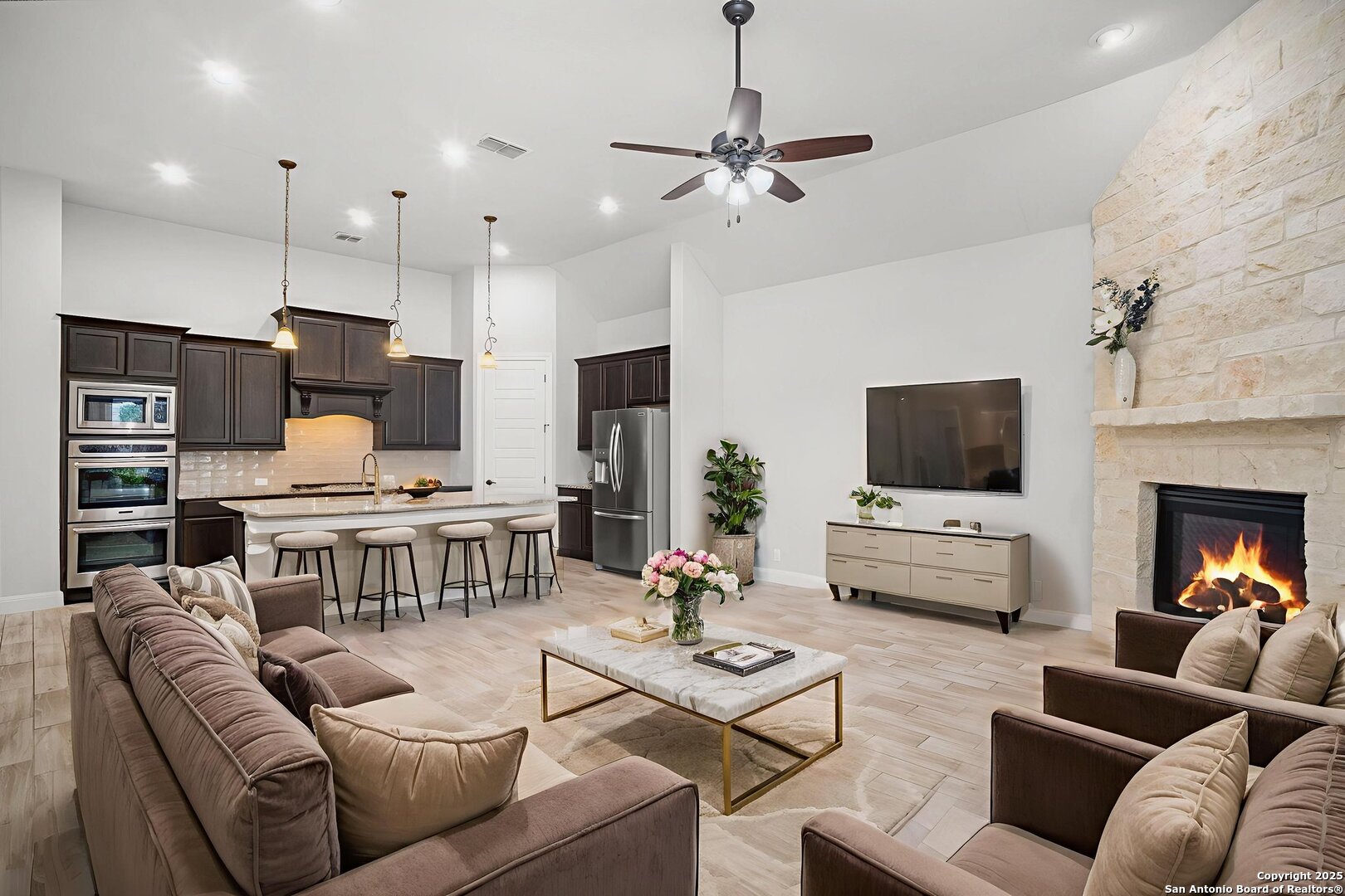 Experience contemporary elegance in one of San Antonio's most desirable gated communities at 23213 Emerald Pass-where modern style meets effortless living. This impeccably maintained single-story, 4-bedroom, 3-bath residence spanning 2,473 square feet invites you in with soaring high ceilings and an open, airy floor plan that instantly sets the tone for relaxation and connection. At the heart of the home, the sleek island kitchen provides the perfect stage for everything from casual morning coffee to lively evening gatherings, offering generous counter space and seamless flow into the living and dining areas. Recent enhancements-including fresh interior paint and updated carpet-create a crisp, move-in-ready atmosphere. Natural light pours into every corner, enhancing the home's clean lines and contemporary finishes. Whether hosting weekend brunches or unwinding after a long day, this home is designed to adapt beautifully to every occasion. Located within a gated community that encourages a vibrant and engaging lifestyle, this residence offers both privacy and connection. With its modern one-story layout, open entertaining spaces, and polished updates, it delivers a refined blend of style, convenience, and comfort. Homes of this caliber in Emerald Pass are seldom available. Schedule your private tour today and discover where your next chapter begins.