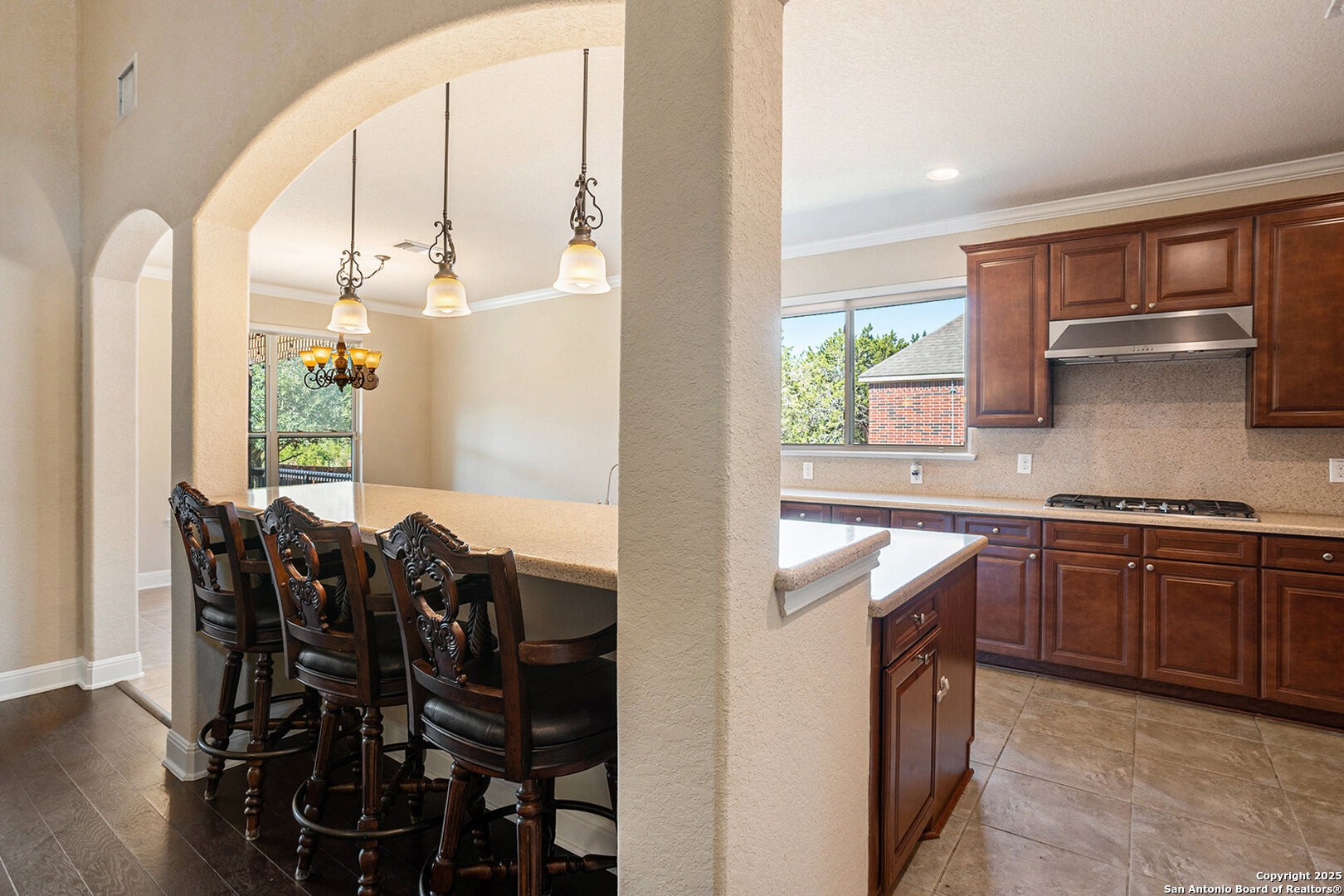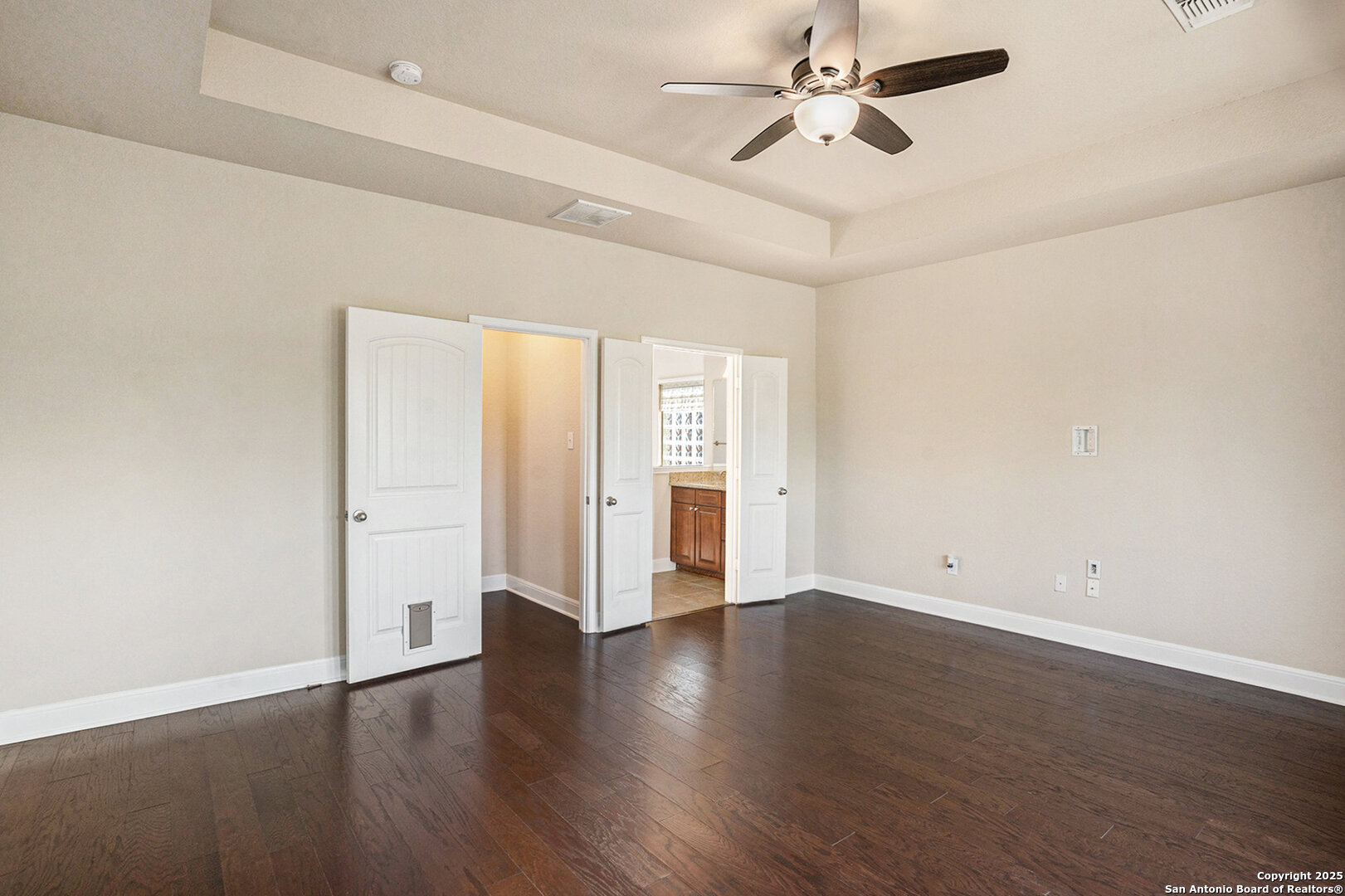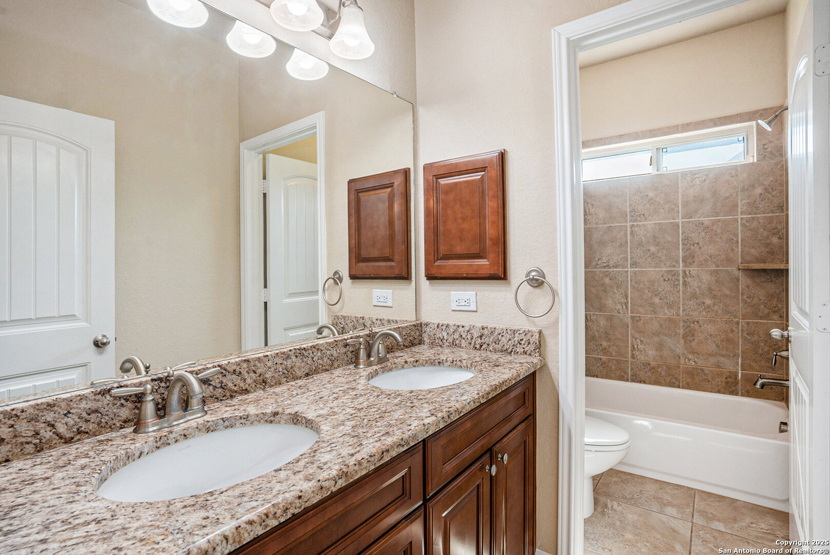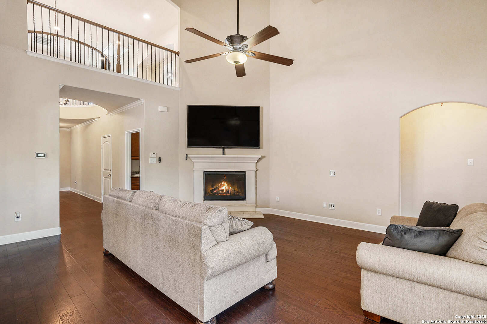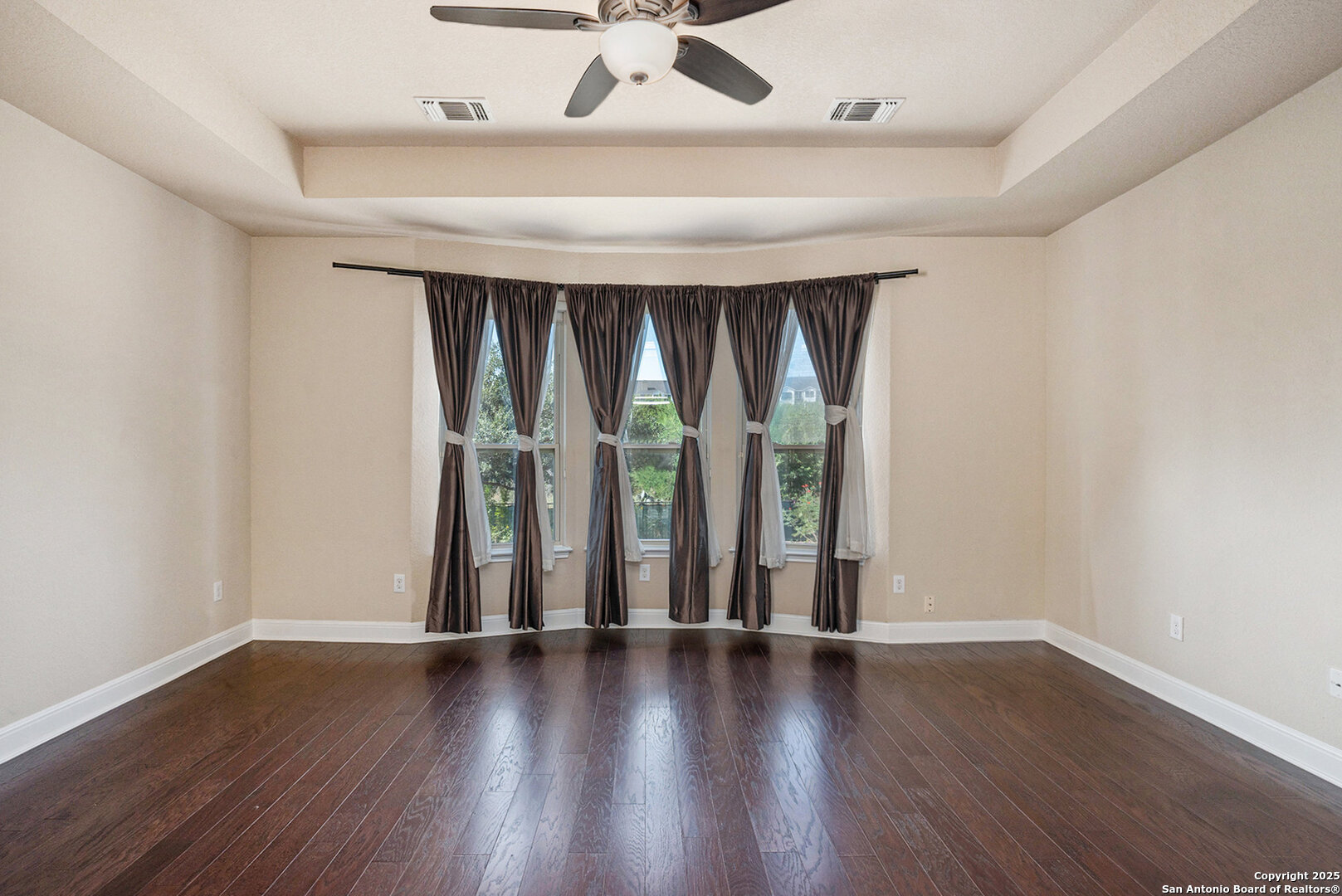Stop looking any further! You just found it. And it's VA Substitutable at 2.75 for the current loan balance. (Ask your lender for details) Situated on a quiet back street along a beautiful nature filled greenbelt. This fairy-tale like two-story home offers space and style in a master-planned, resort-style community. Come inside and you're greeted by a vast foyer with a breath-taking curling staircase that feels bright and open, leading up to a recently renovated upstairs recreation area. The upstairs which has a bathroom and walk-in closet for each of the bedrooms and an open area which provides all sorts of possibilities is beyond comparison. There is a kitchen and butler's pantry which provides comfort and efficiency to the heart of the home - a kitchen made for cooking and gathering, with an island the size of Oahu. Complete with built-in stainless appliances, gas cooking, reverse osmosis water, and tons of cabinet space. The kitchen then opens into the fireplace equipped living room, where the current owner is leaving a fantastic TV for your family's and guests' entertainment. The formal Dinning area is now being used as an office but can be used as you desire. The primary suite is privately situated downstairs and feels like a vacation get-away; featuring a large walk-in closet and a spa-inspired bath with separate vanities, a garden tub, and an oversized walk-in shower that you'll fall in love with. Outside, the beautifully maintained, oversized yard and deck offer so much potential - install an outdoor kitchen, put in a pool, design the outdoor space of your dreams, or do all of the above. Quick access to Hwy 281 and close to the many amenities in North Central San Antonio area.