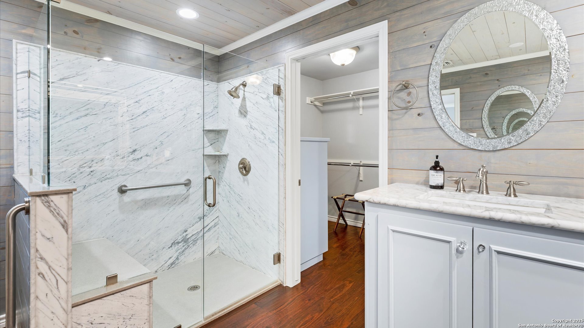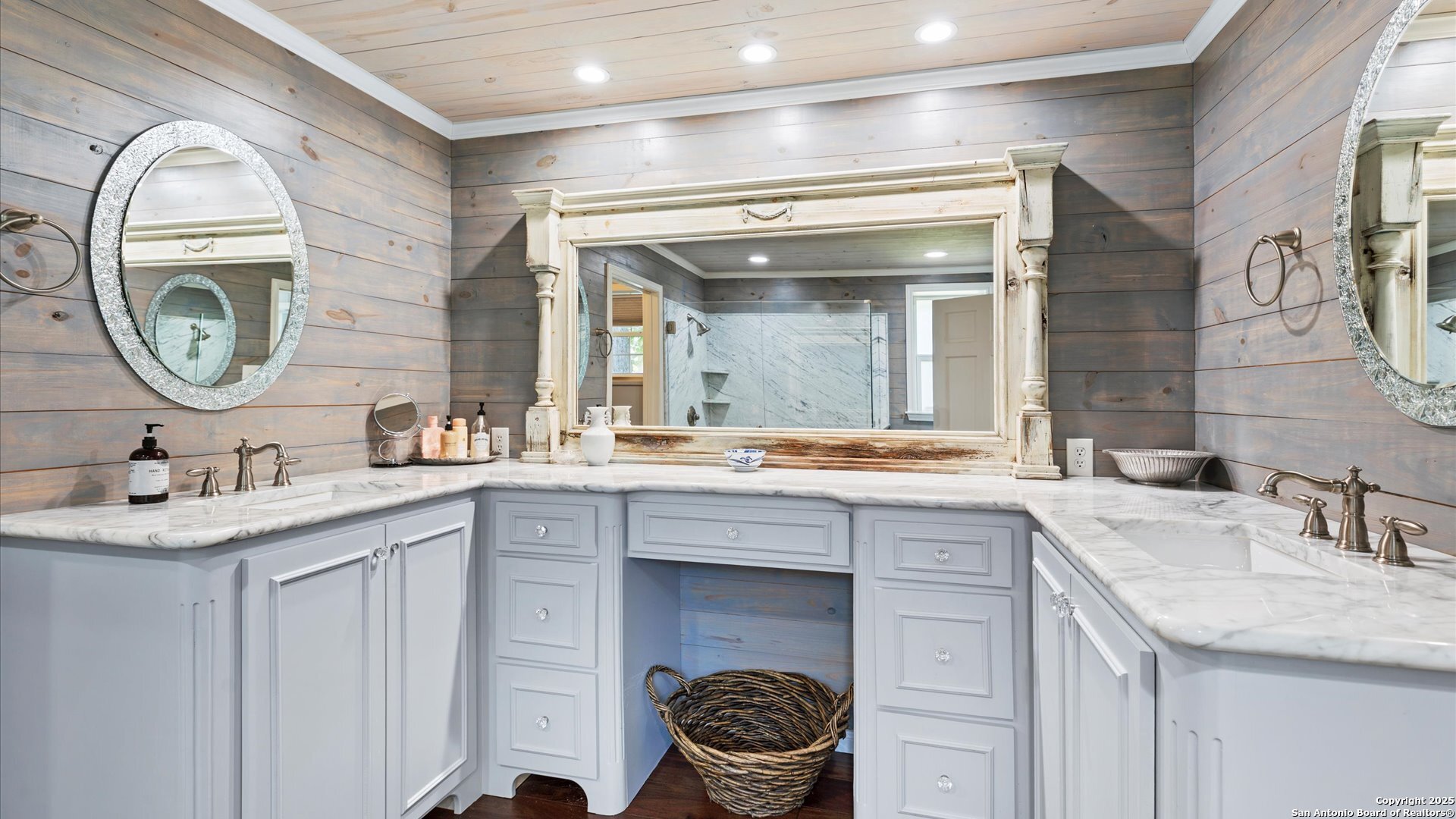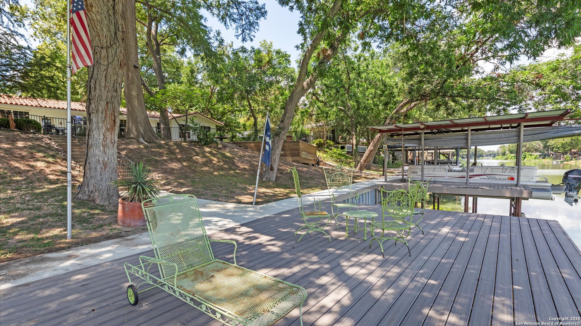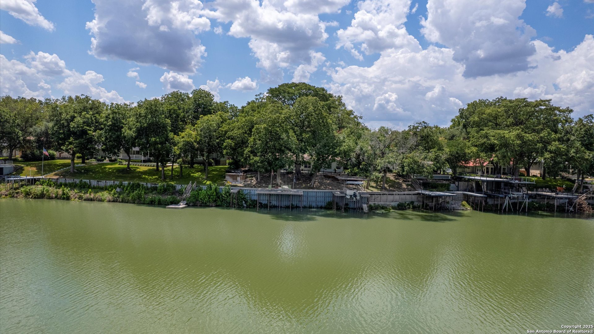Lake McQueeney waterfront retreat with a spanish flair that encompasses luxury and comfort. Property sits on over half an acre with approx. 100' of prime Lake McQueeney waterfront. A private gated front entry welcomes you to abundant parking area, 2 car Garage, and Storage room. Inside, a split layout offers quiet and privacy with 4 Bedrooms including two true primary suites and 3 full Baths. Warm Saltillo tile flooring throughout. The Kitchen features a farmhouse sink, butcher-block countertops, tiled backsplash and plentiful cabinetry. Inviting Living room with a stone fireplace, built-ins, and antique double front doors. Additional features to include a wet bar, mudroom, and office/flex room. Enjoy water views from almost every room. The backyard is an entertainer's dream: a spacious covered patio and large extended concrete patio flow to the waterfront deck and boathouse, surrounded by lush vegetation. Tile roof. No HOA. Short term vacation rentals allowed.