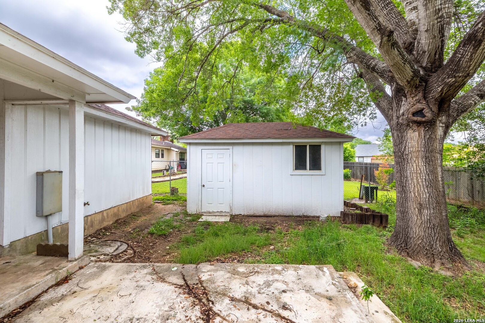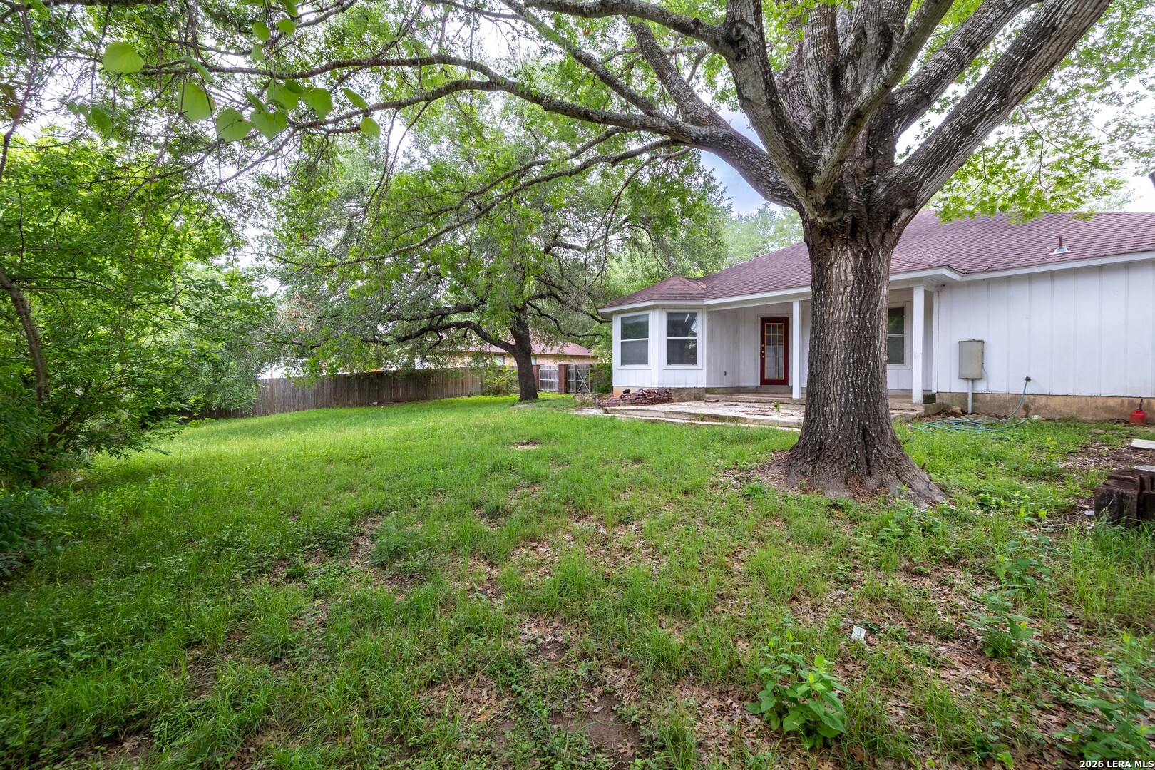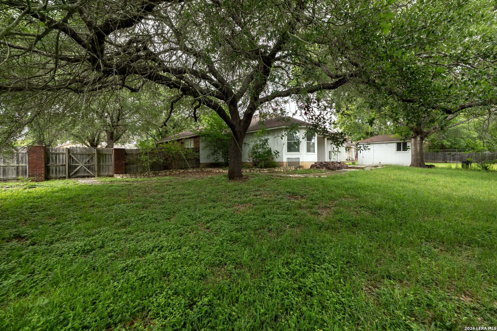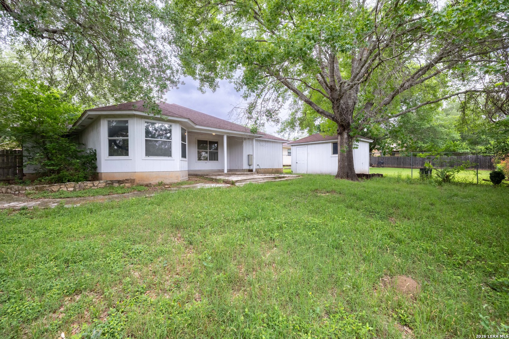 Set on a generous over quarter-acre lot shaded by mature trees, this home offers a strong foundation, comfortable space, and the opportunity to make it your own. The setting is one of its best features, with a large yard that provides both privacy and room to spread out, whether for entertaining, outdoor projects, or simply enjoying the shade and quiet surroundings. With 4 bedrooms and 2 bathrooms across 1,765 square feet, the layout is practical and easy to live in. High ceilings in the main living areas create an open, airy feel while still maintaining distinct spaces that suit everyday living. The kitchen is well designed with ample counter space and plenty of cabinetry, offering solid functionality today with room to update over time. The primary suite is set apart from the additional bedrooms, creating a sense of separation and privacy. It features an en-suite bath with a double vanity that adds convenience and usability to the space. Out back, the yard offers the kind of space that is becoming harder to find, complete with a storage shed and plenty of room to expand, garden, or design your ideal outdoor setup. For buyers looking for a property with good bones, a sizable lot, and the chance to add their own style, it presents a great opportunity in the growing community of Seguin!