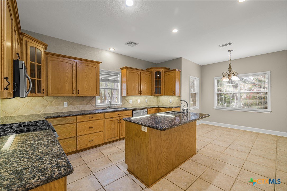Unique property at 233 Post Oak Bend in Inez, Texas! Situated on approximately 1.5 acres, this peaceful property is surrounded by beautiful shade trees, creating a serene country setting in the desirable Post Oak neighborhood. The main home offers appx. 2,571 sq. ft. with four bedrooms and 2.5 baths, featuring a comfortable layout with an easy flow throughout. Recent updates include new carpet and fresh paint inside and out, giving the home a refreshed feel. In addition to the main residence, the property includes a detached dwelling with multiple living options. The first floor appx (595 sq. ft.) features a one-bedroom, one-bath layout, while the second floor appx. (1,351 sq. ft.), with its own separate entry, offers two bedrooms and two baths—ideal for guests or extended family,. This beautiful brick home combines space, versatility, and a tranquil setting, all in the sought-after Post Oak neighborhood.