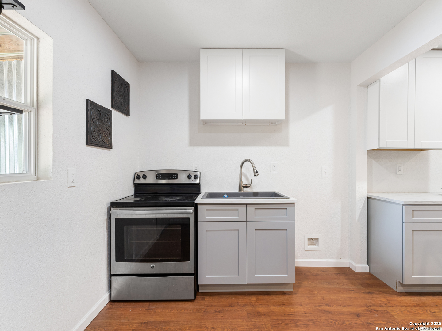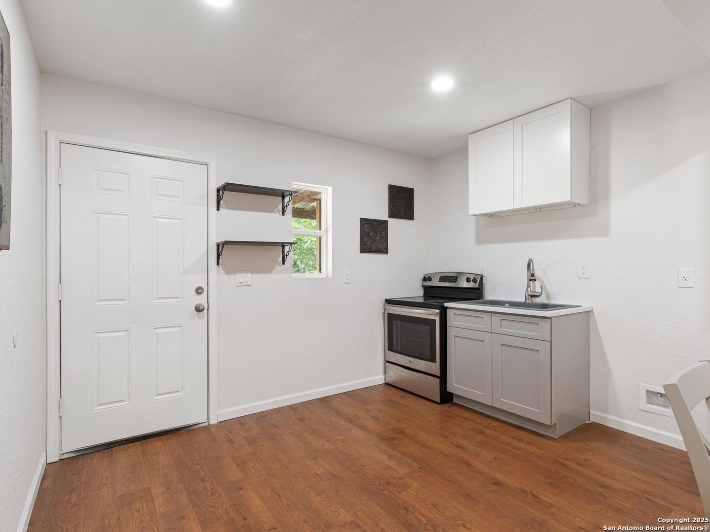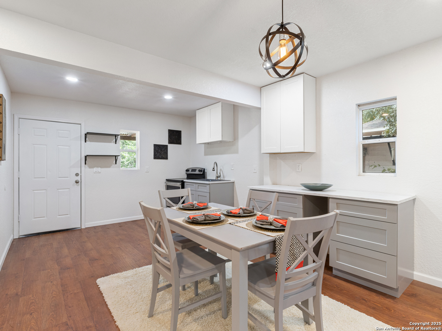 Welcome to 2336 E Houston, a charming and modern home just minutes from downtown San Antonio, the Arena District, and historic Dignowity Hill. This inviting property features an open floor plan with stylish updates throughout. The kitchen boasts gray lower cabinets paired with crisp white uppers, sleek white countertops, and a fresh contemporary feel. Enjoy the comfort of plush carpet in the bedrooms and durable laminate flooring in the main living areas. Washer and dryer connections inside the home for added convenience. Step outside to relax on the covered back deck or greet neighbors from the welcoming front porch. The wrought iron fence and gated entry add curb appeal and peace of mind. Extended driveway and large backyard too!!! Perfectly located near the River Walk, Fort Sam Houston, Frost Bank Center, and more, this home combines convenience with charm. It's a fantastic opportunity to own near the heart of San Antonio!
