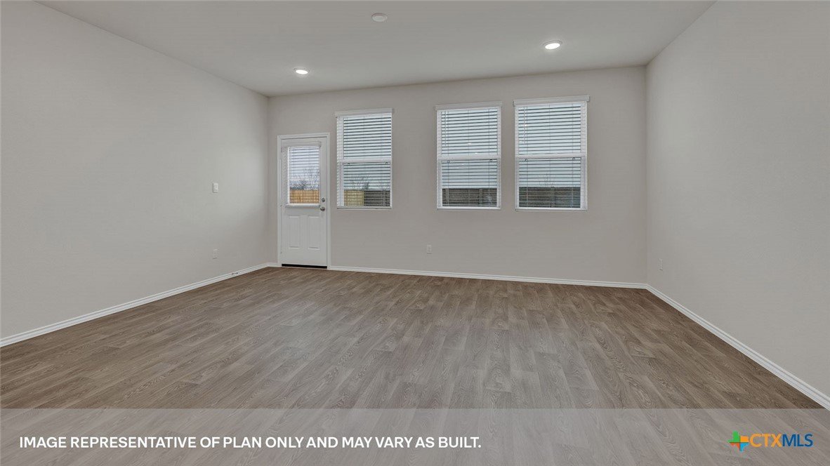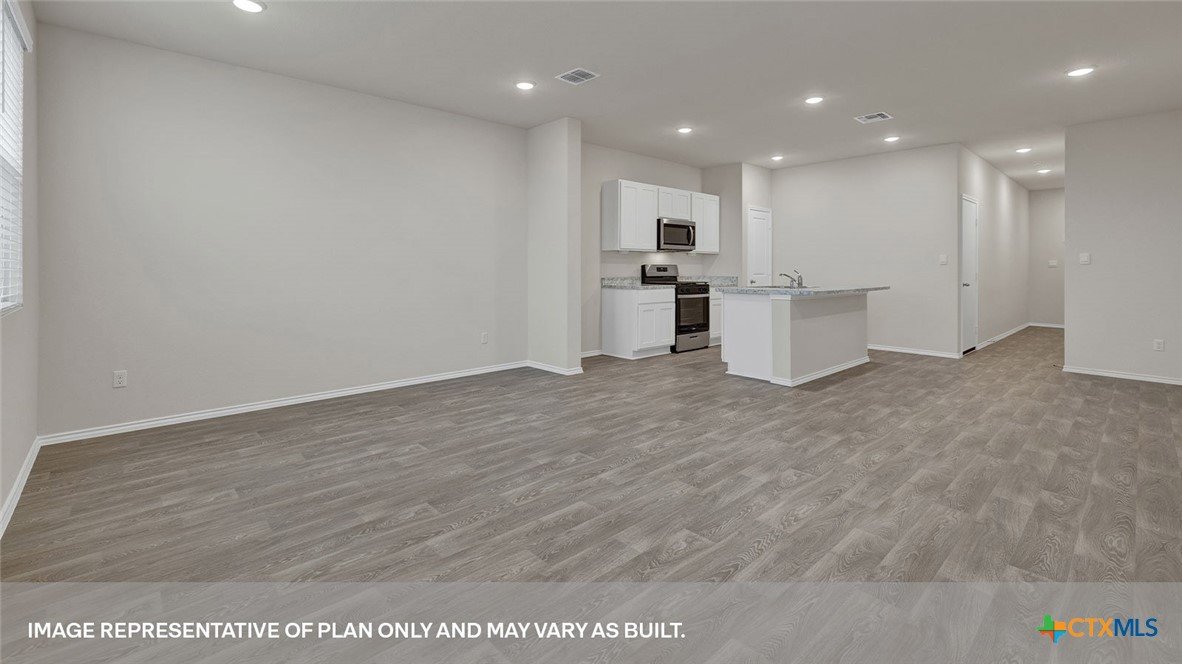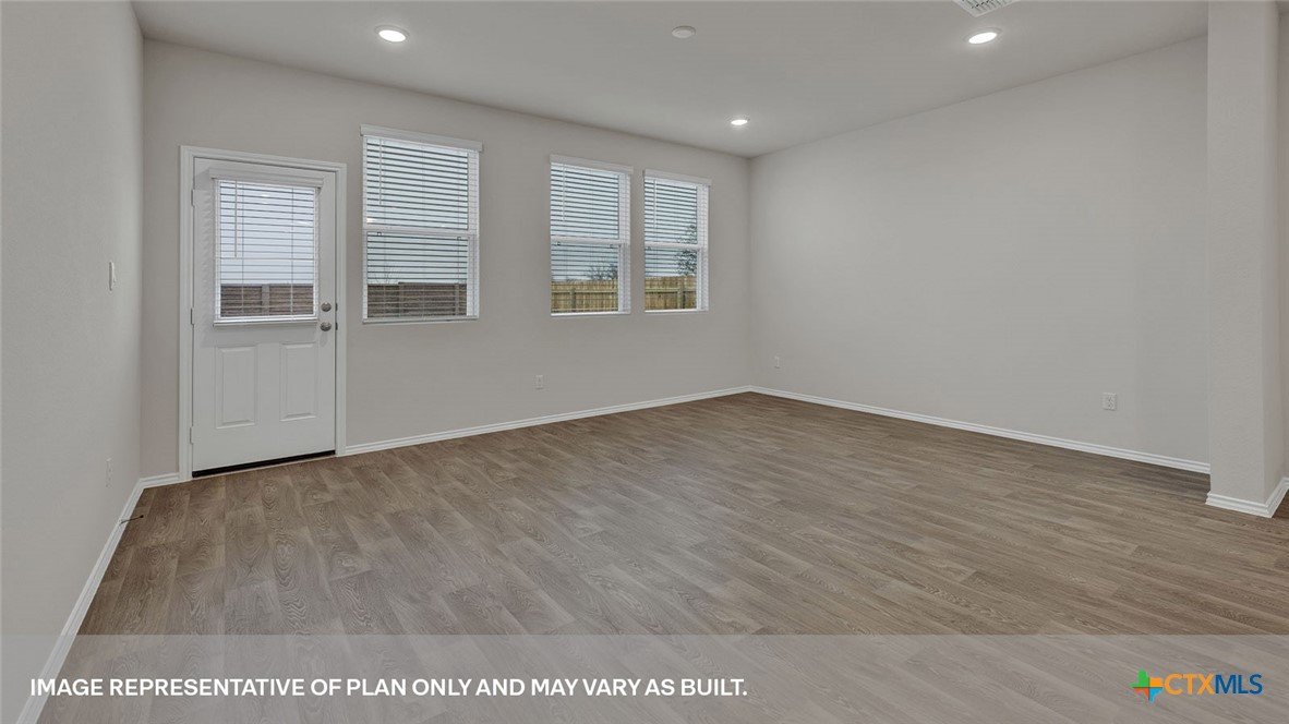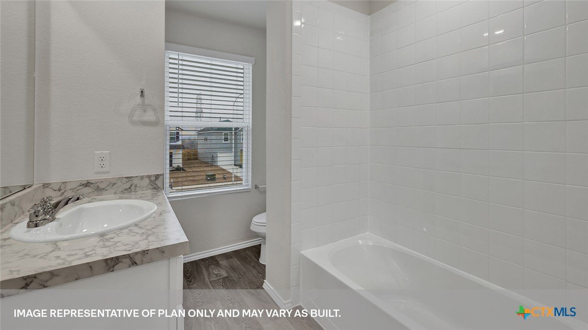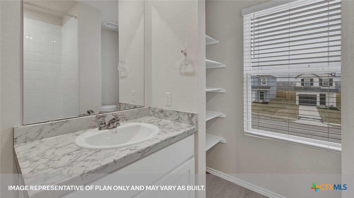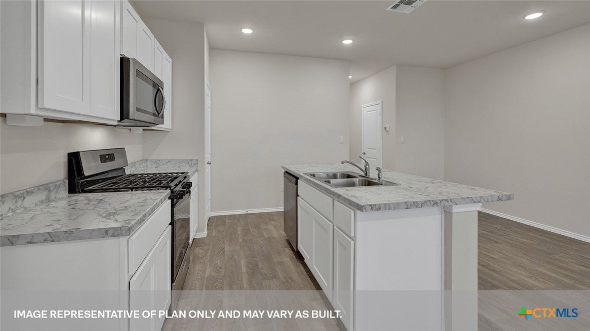 MOVE IN READY! The Altaria floorplan in Bollinger, is one of our communities in Maxwell, Texas. This two-story home has 4 bedrooms, 2.5 bathrooms and a 1 car garage across 1,543 square feet of living space. Our homes in Bollinger feature our modern farmhouse exterior. As you enter the home from the covered front porch, you’ll pass through the foyer and hallway to the large open living space. The kitchen faces out to the dining room and family room, allowing for conversations to flow easily across the space as you make dinner and unwind from your day. The kitchen features laminate countertops with 50/50 stainless steel drop-in bowl, 4” laminate backsplash, pantry closet, 36” upper cabinets and stainless-steel appliances, including a gas range. The powder room is off the front hallway to complete the downstairs space. Moving upstairs, you’ll find the 4 bedrooms and 2 full bathrooms. The primary bedroom is located at the rear of the second floor and includes an attached bathroom. Enjoy the walk-in shower, laminate countertop, and a walk-in closet inside the primary bathroom. The secondary bedrooms include closets with shelving and the hall bathroom includes a shower/tub combination. Whether you use these rooms as an office, child’s room or guest room, there is amble space for work, sleep, and play. The Altaria includes vinyl flooring throughout the common areas of the home, and carpet in the bedrooms. All our new homes feature Bermuda sod, an irrigation system in the front and back yard, and a 6’ privacy fence around the back yard. This home comes with our America’s Smart Home base package, which includes the Amazon Echo Pop, Front Doorbell, Front Door Deadbolt Lock, Home Hub, Thermostat, and Deako® Smart Switches.