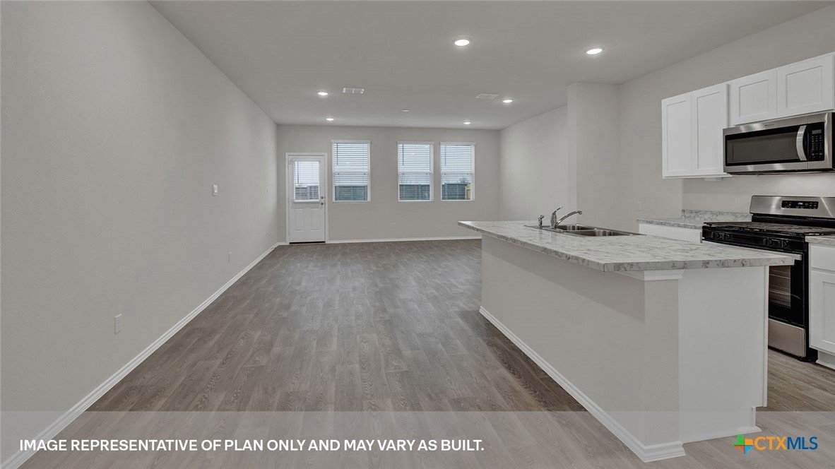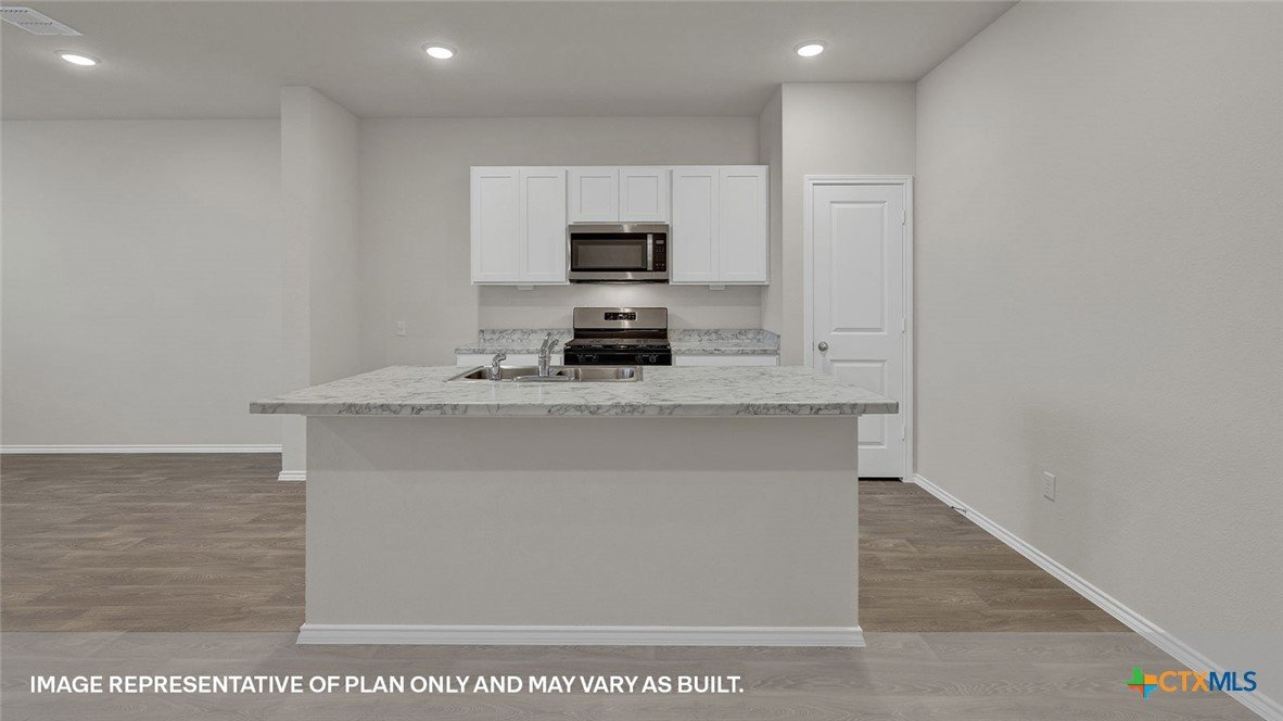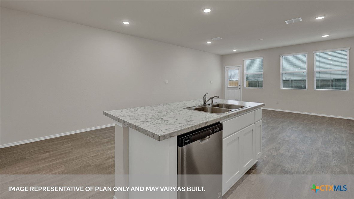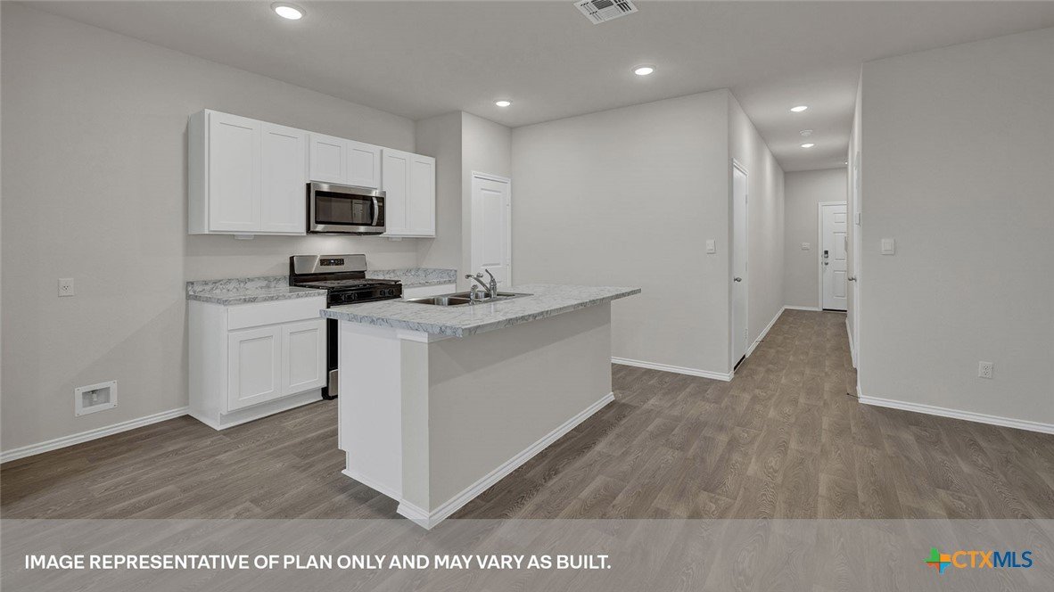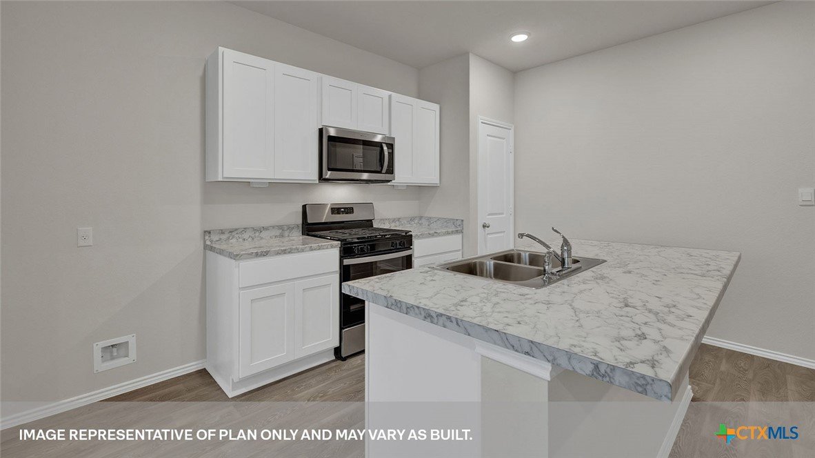 MOVE IN READY! The Altaria floorplan in Bollinger, is one of our communities in Maxwell, Texas. This two-story home has 4 bedrooms, 2.5 bathrooms and a 1 car garage across 1,543 square feet of living space. Our homes in Bollinger feature our modern farmhouse exterior. As you enter the home from the covered front porch, you’ll pass through the foyer and hallway to the large open living space. The kitchen faces out to the dining room and family room, allowing for conversations to flow easily across the space as you make dinner and unwind from your day. The kitchen features laminate countertops with 50/50 stainless steel drop-in bowl, 4” laminate backsplash, pantry closet, 36” upper cabinets and stainless-steel appliances, including a gas range. The powder room is off the front hallway to complete the downstairs space. Moving upstairs, you’ll find the 4 bedrooms and 2 full bathrooms. The primary bedroom is located at the rear of the second floor and includes an attached bathroom. Enjoy the walk-in shower, laminate countertop, and a walk-in closet inside the primary bathroom. The secondary bedrooms include closets with shelving and the hall bathroom includes a shower/tub combination. Whether you use these rooms as an office, child’s room or guest room, there is amble space for work, sleep, and play. The Altaria includes vinyl flooring throughout the common areas of the home, and carpet in the bedrooms. All our new homes feature Bermuda sod, an irrigation system in the front and back yard, and a 6’ privacy fence around the back yard. This home comes with our America’s Smart Home base package, which includes the Amazon Echo Pop, Front Doorbell, Front Door Deadbolt Lock, Home Hub, Thermostat, and Deako® Smart Switches.