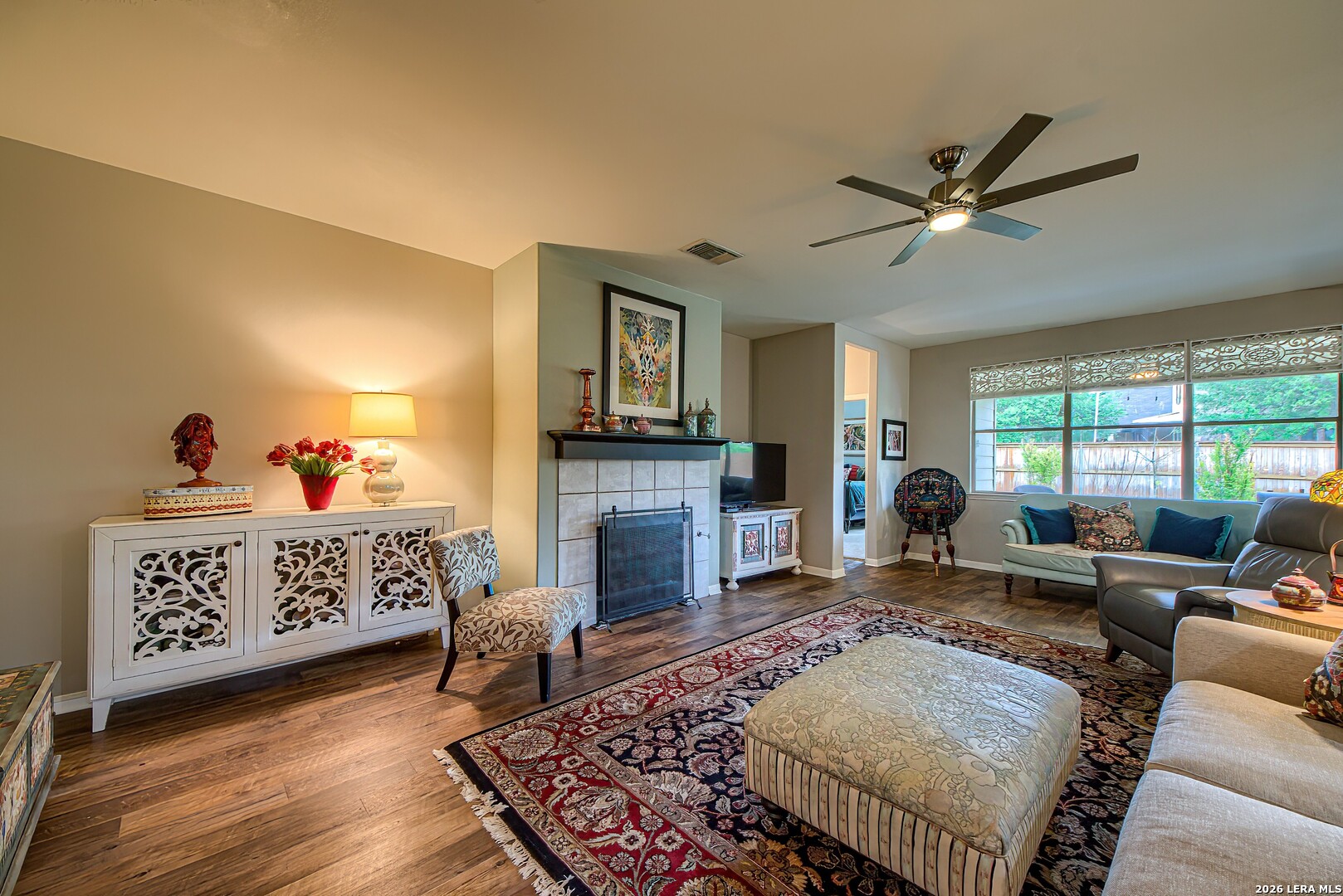 STUNNING!!! This beautiful 4 bedroom 2 bath home will not disappoint and sure to impress.. Beautifully thought out upgrades including flooring, interior paint , lighting and more. Walk into a long elegant entry that opens to a large living area, features a gas log fireplace for year round enjoyment. Lots of windows that showcase an amazing patio with an outdoor kitchen. Home also offers a large kitchen, middle island and an open breakfast area for entertaining friends and family. Secondary bedrooms are very spacious. Carpet is in 3 bedrooms with tile in front bedroom that is being used as an art office. This is a must see!! Decorated straight out of an art gallery. Just stunning!!