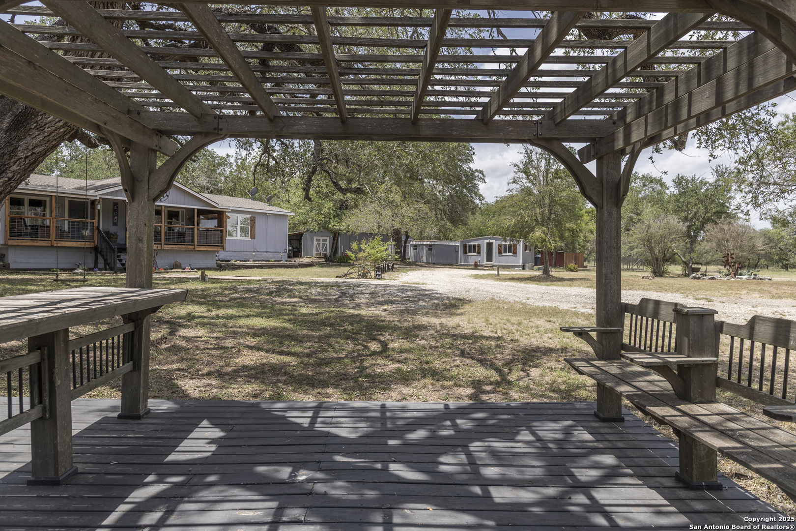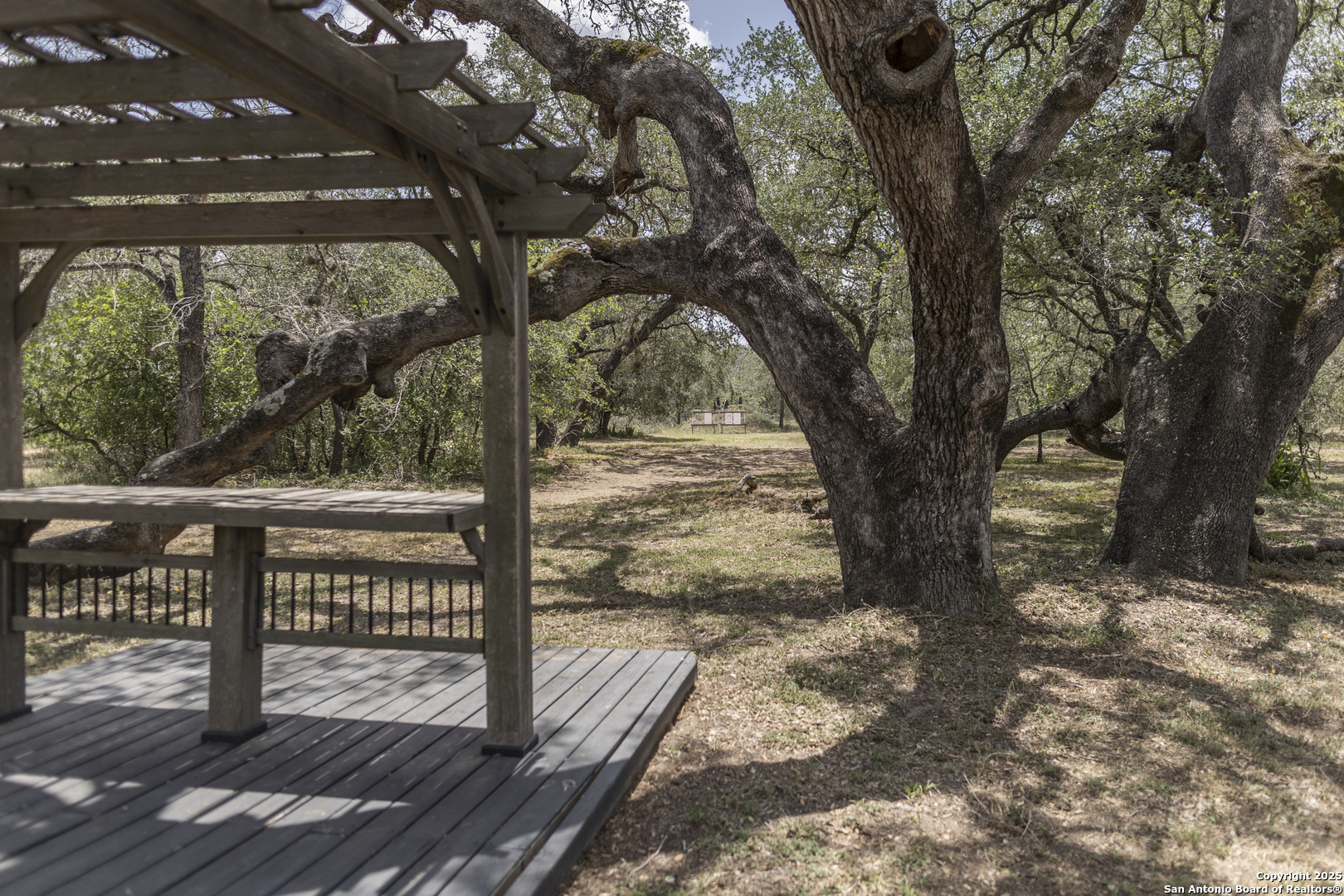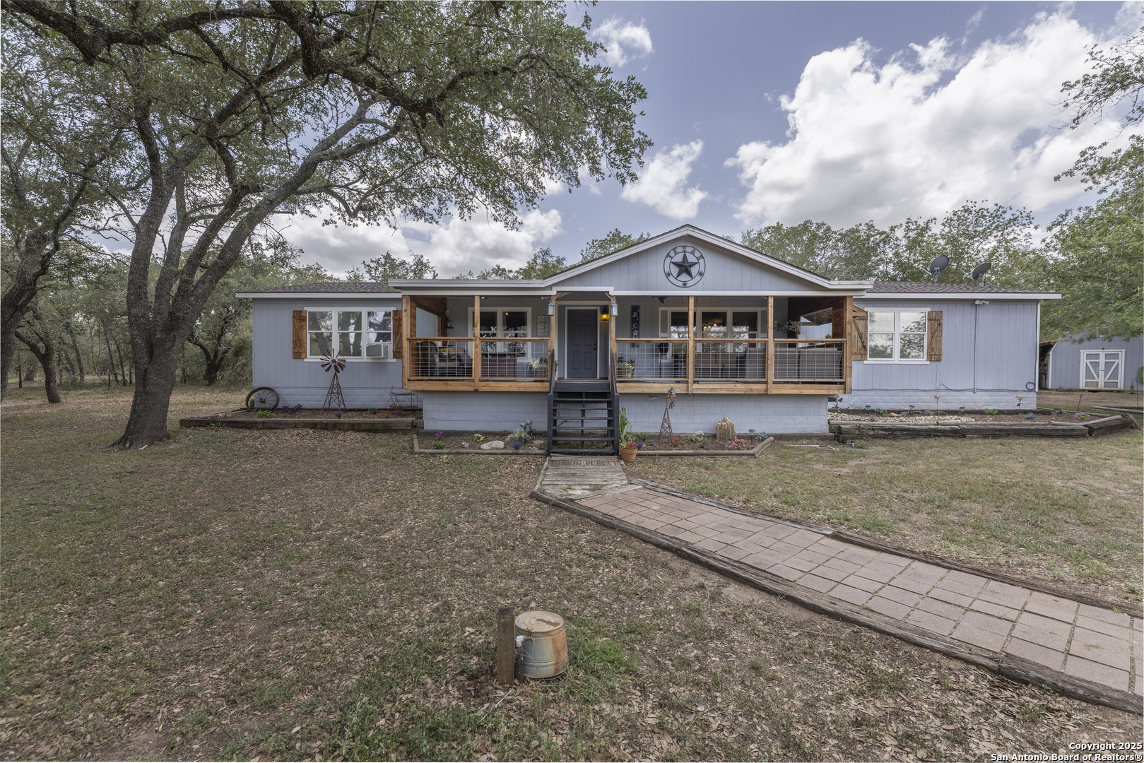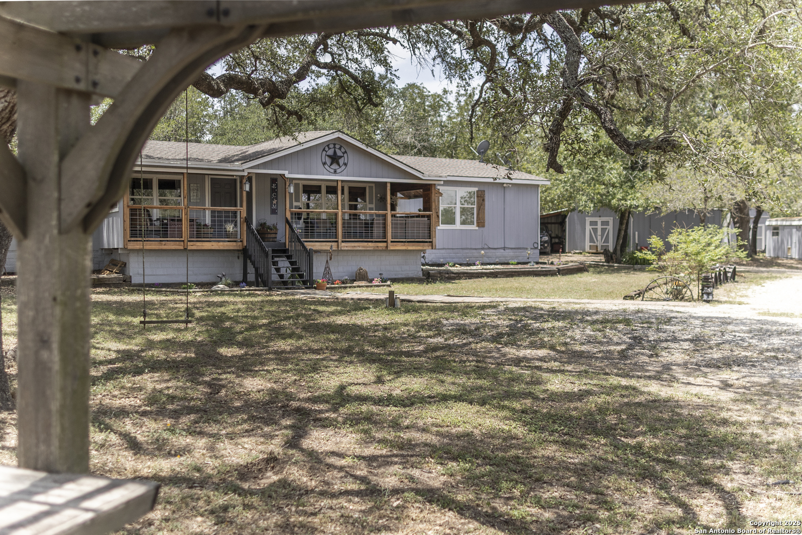 Stop scrolling- this 10-acre retreat has it all. Updated 3 bedroom, 2 bath home. Gated entry. Circle drive. Sprawling oak trees and wide-open skies. From the moment you arrive, it feels less like a house and more like a lifestyle. Inside, the home is warm and inviting with modern finishes. Open living and dining. Large kitchen. A second living room or office. Comfortable bedrooms with plenty of storage. The enclosed front porch, wrapped in wood, adds charm and extra living/entertaining space. Out back, an oversized deck overlooks a fire pit with stone seating, koi pond and target practice ranges, and around the corner is your fenced garden with raised beds. Outbuildings include a powered workshop/barn with covered parking, storage shed with loft, bird coop, and two climate-controlled buildings for hobbies, guests, or a home business. There's also a full slab ready for your second home, garage, or entertaining area. The setting here is unforgettable- towering oaks shade a pergola and swing, giving the land a private park feel. Just off 281-S near 1604, commuting is easy. Even better, the tax rate is only 1.49%. This is true country living, close to the city, ready for you to make it your own.