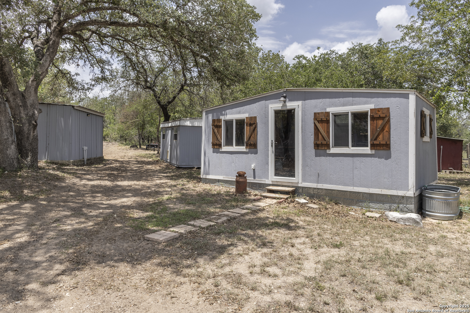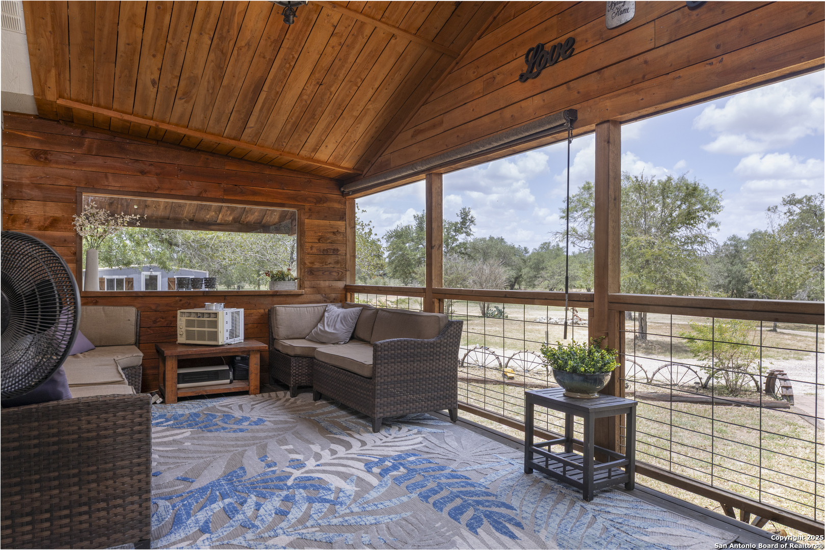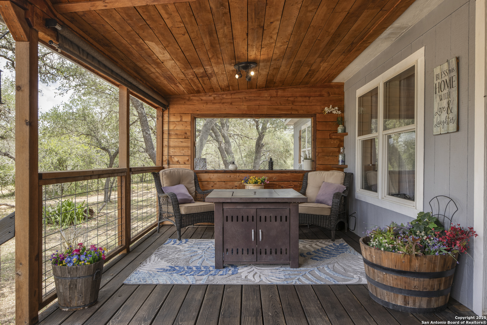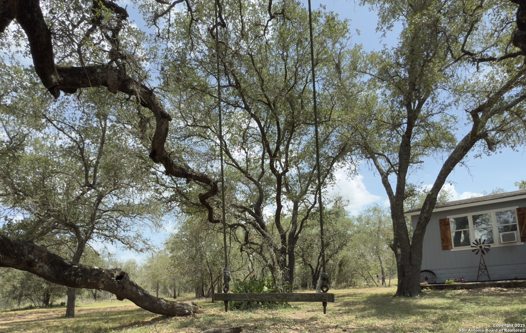 Stop scrolling- this 10-acre retreat has it all. Updated 3 bedroom, 2 bath home. Gated entry. Circle drive. Sprawling oak trees and wide-open skies. From the moment you arrive, it feels less like a house and more like a lifestyle. Inside, the home is warm and inviting with modern finishes. Open living and dining. Large kitchen. A second living room or office. Comfortable bedrooms with plenty of storage. The enclosed front porch, wrapped in wood, adds charm and extra living/entertaining space. Out back, an oversized deck overlooks a fire pit with stone seating, koi pond and target practice ranges, and around the corner is your fenced garden with raised beds. Outbuildings include a powered workshop/barn with covered parking, storage shed with loft, bird coop, and two climate-controlled buildings for hobbies, guests, or a home business. There's also a full slab ready for your second home, garage, or entertaining area. The setting here is unforgettable- towering oaks shade a pergola and swing, giving the land a private park feel. Just off 281-S near 1604, commuting is easy. Even better, the tax rate is only 1.49%. This is true country living, close to the city, ready for you to make it your own.