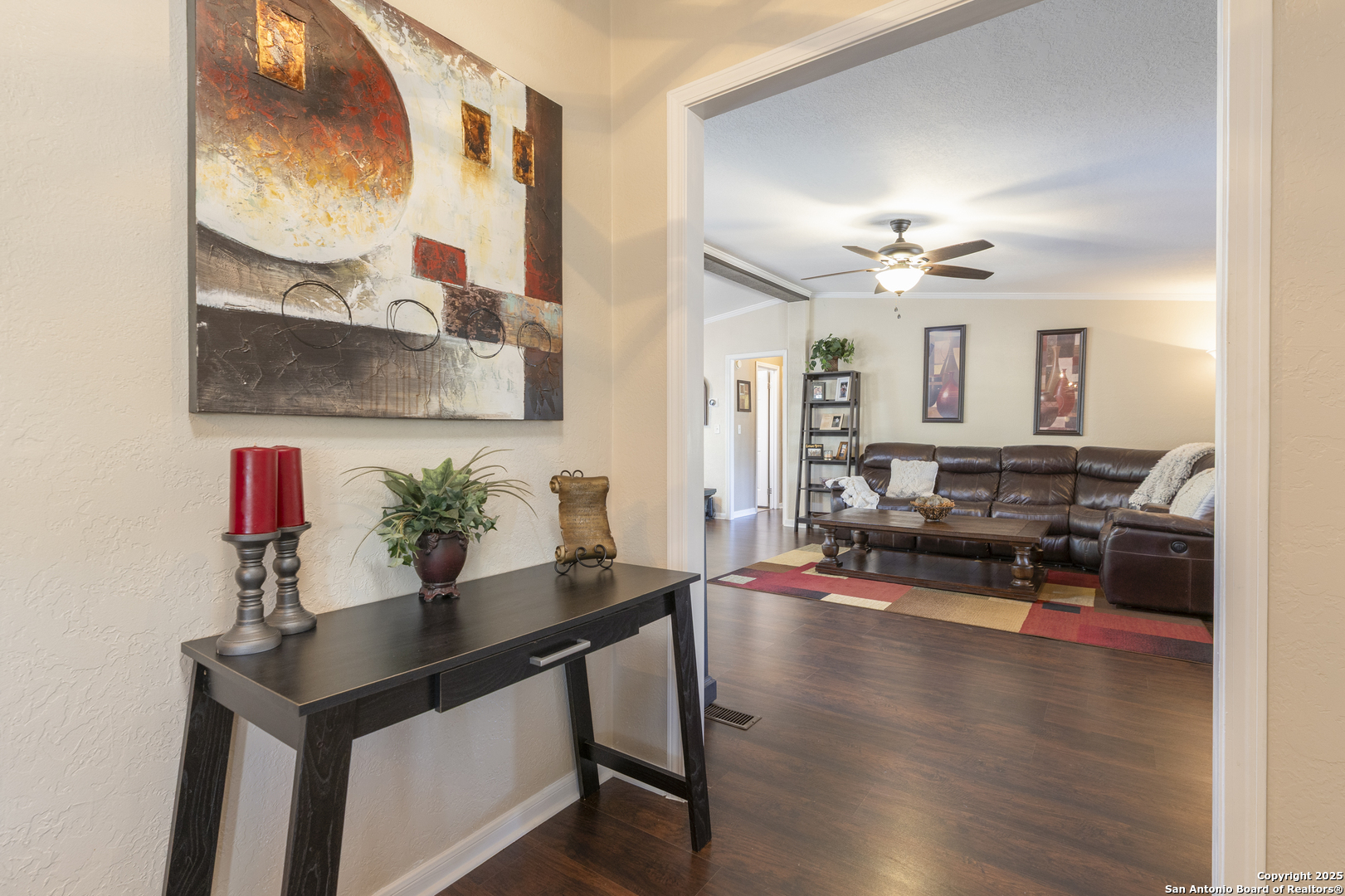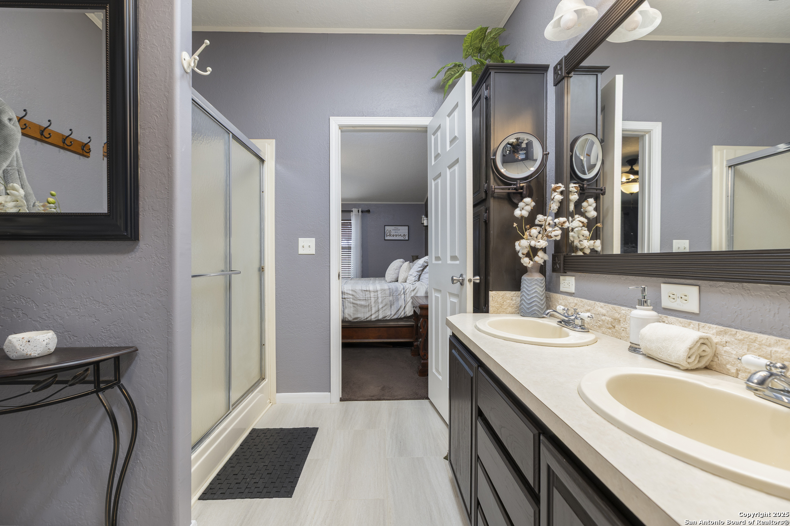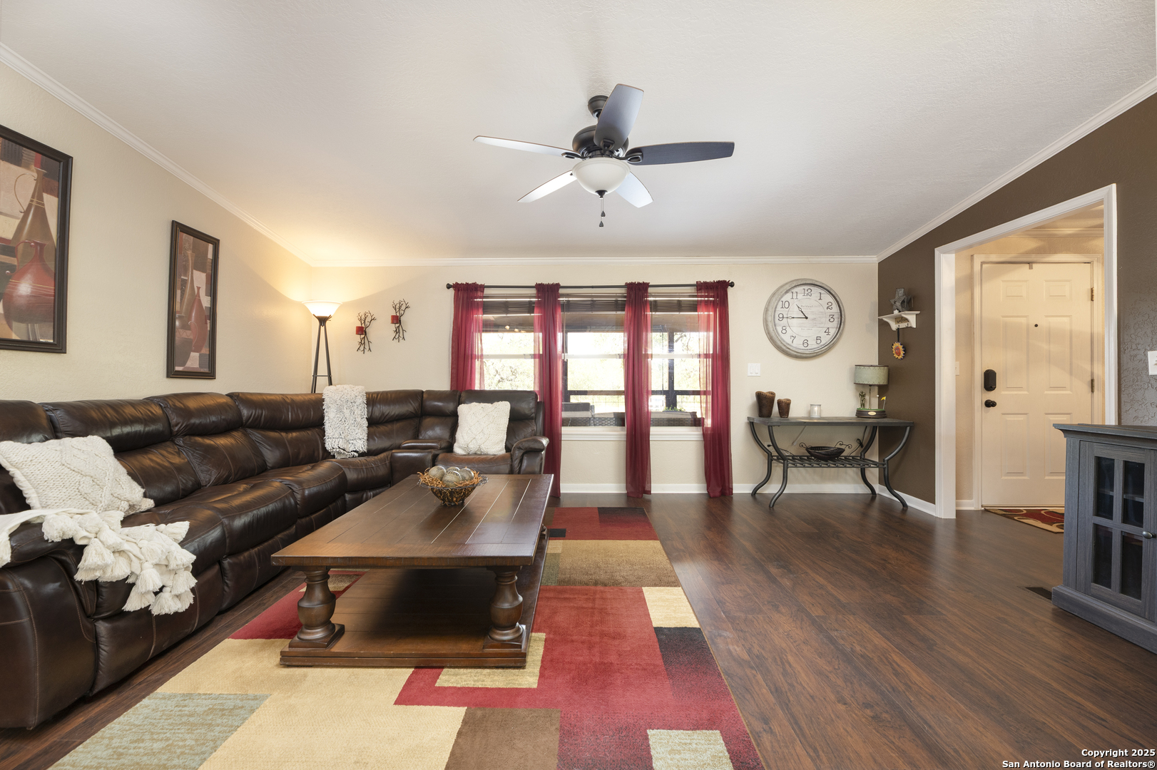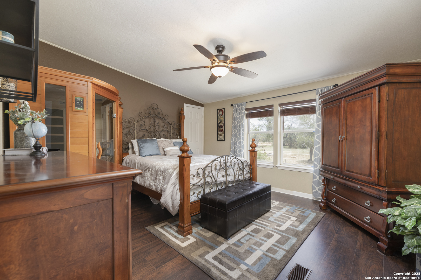 Stop scrolling- this 10-acre retreat has it all. Updated 3 bedroom, 2 bath home. Gated entry. Circle drive. Sprawling oak trees and wide-open skies. From the moment you arrive, it feels less like a house and more like a lifestyle. Inside, the home is warm and inviting with modern finishes. Open living and dining. Large kitchen. A second living room or office. Comfortable bedrooms with plenty of storage. The enclosed front porch, wrapped in wood, adds charm and extra living/entertaining space. Out back, an oversized deck overlooks a fire pit with stone seating, koi pond and target practice ranges, and around the corner is your fenced garden with raised beds. Outbuildings include a powered workshop/barn with covered parking, storage shed with loft, bird coop, and two climate-controlled buildings for hobbies, guests, or a home business. There's also a full slab ready for your second home, garage, or entertaining area. The setting here is unforgettable- towering oaks shade a pergola and swing, giving the land a private park feel. Just off 281-S near 1604, commuting is easy. Even better, the tax rate is only 1.49%. This is true country living, close to the city, ready for you to make it your own.