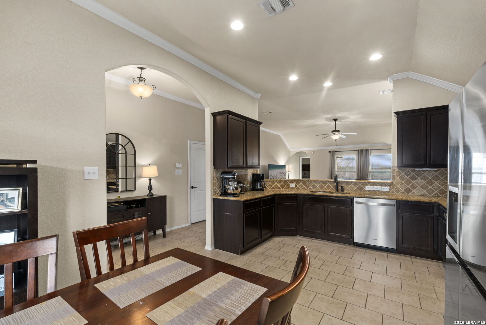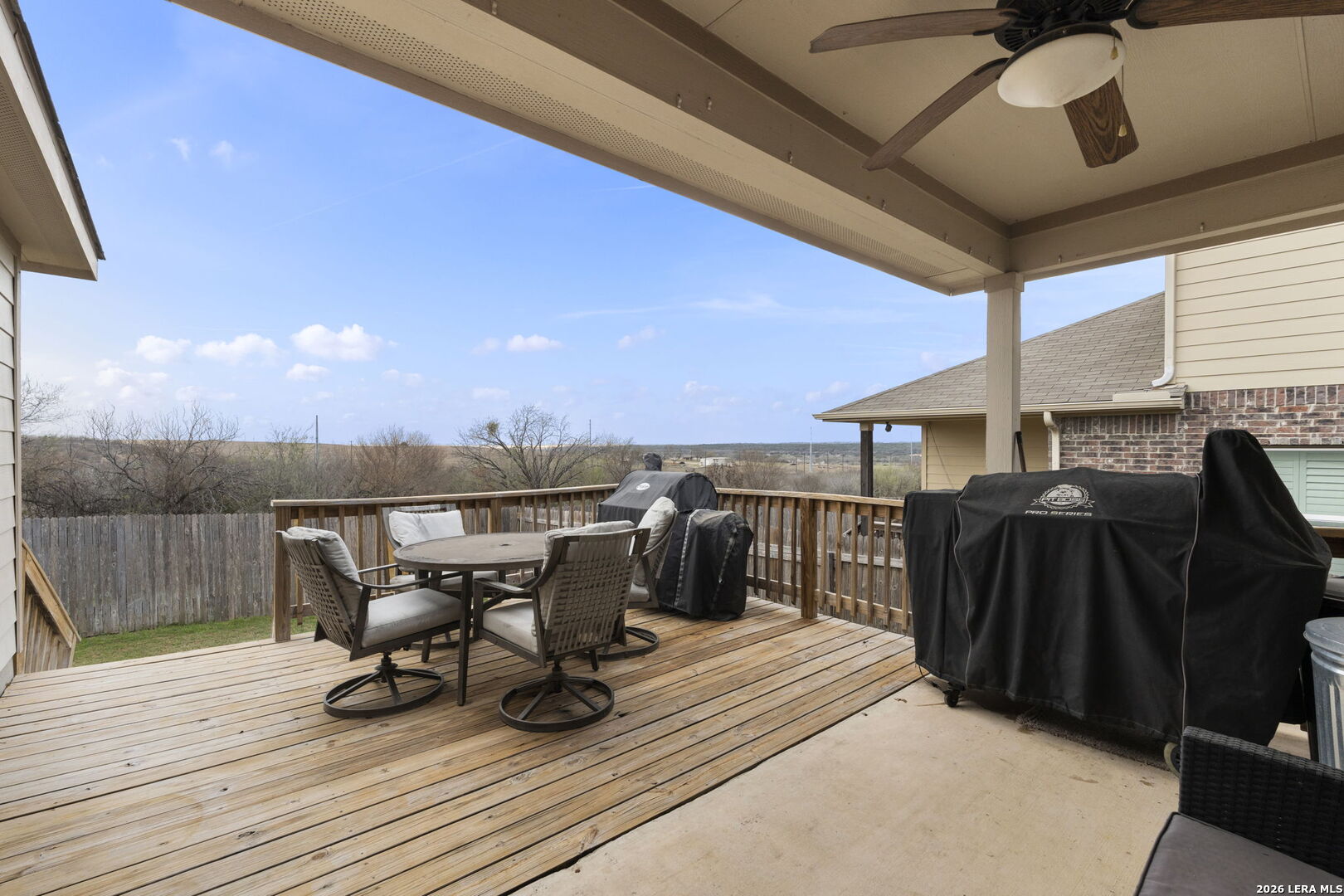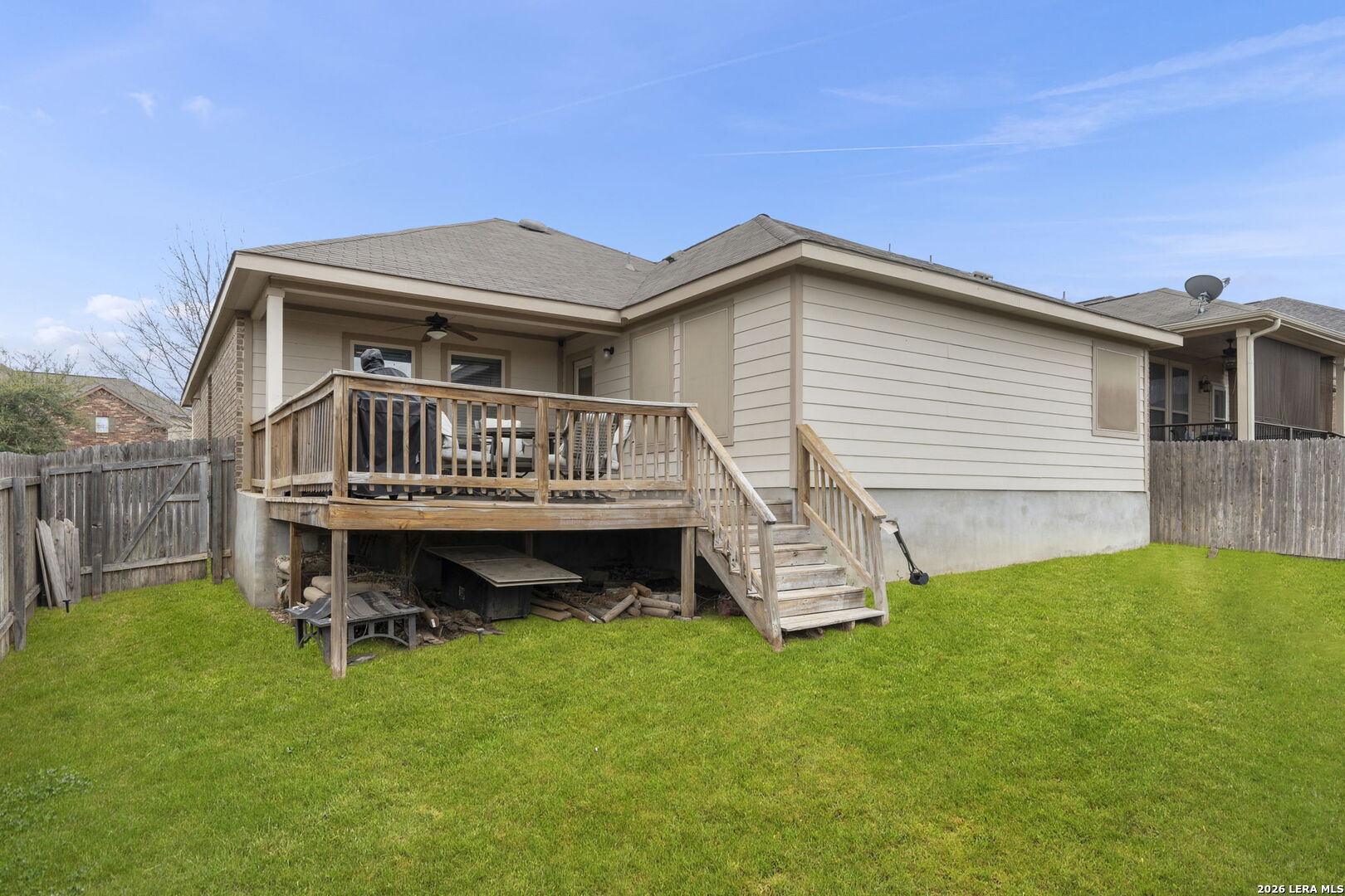 Welcome to this beautifully maintained 3-bedroom, 2-bathroom home located in the desirable Magnolia Springs subdivision. This inviting home features a spacious open-concept layout with abundant natural light, and a seamless flow between the living, dining, and kitchen areas-perfect for both everyday living and entertaining. The well-appointed kitchen offers rich cabinetry, granite countertops, stainless steel appliances, and ample counter space, all overlooking the large living room. The primary suite provides a relaxing retreat with vaulted ceilings and a spacious ensuite bathroom featuring a soaking tub, separate walk-in shower, and generous vanity space. Step outside and enjoy one of the home's standout features-an extended deck ideal for outdoor dining, relaxing, or entertaining guests. The backyard offers peaceful views with no neighbors directly behind you, providing added privacy and a serene setting. Additional highlights include a bright dining area, spacious secondary bedrooms, and a functional layout designed for comfort and convenience. Located in the sought-after Magnolia Springs community, this home offers a perfect balance of neighborhood living while still enjoying quiet backyard privacy. This property is a wonderful opportunity to enjoy comfortable living, great outdoor space, and a desirable location all in one.