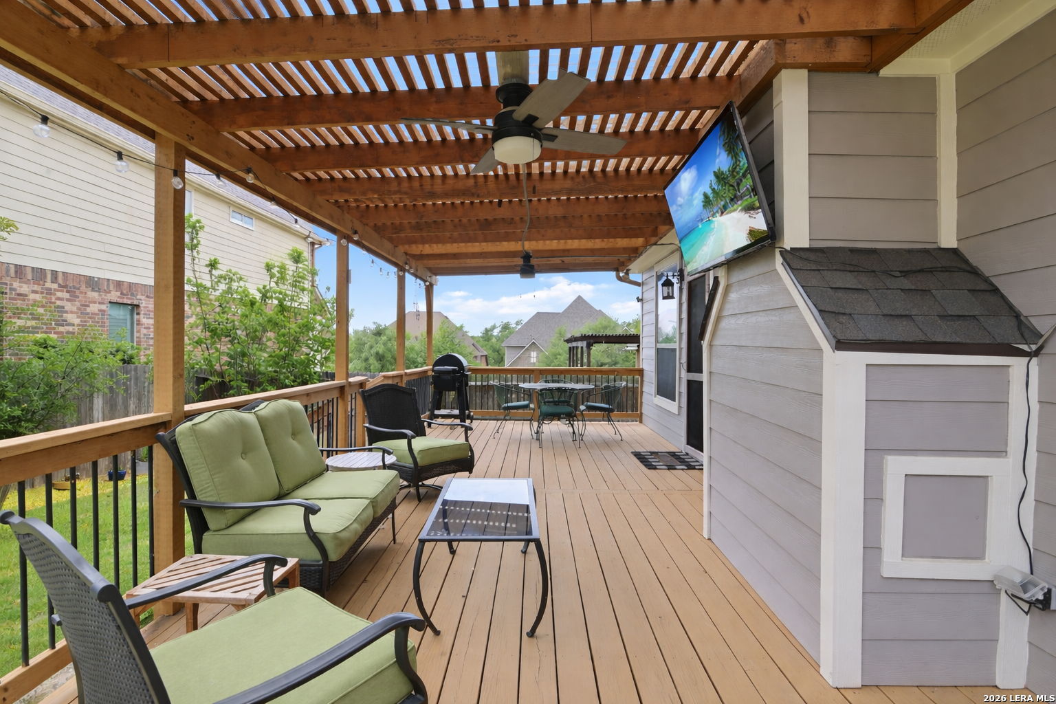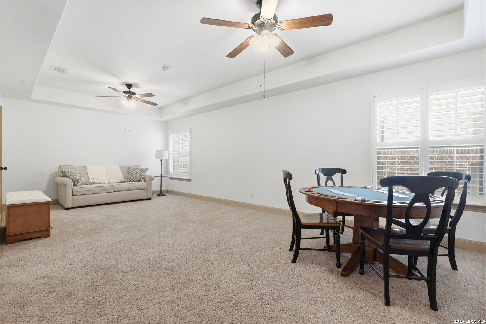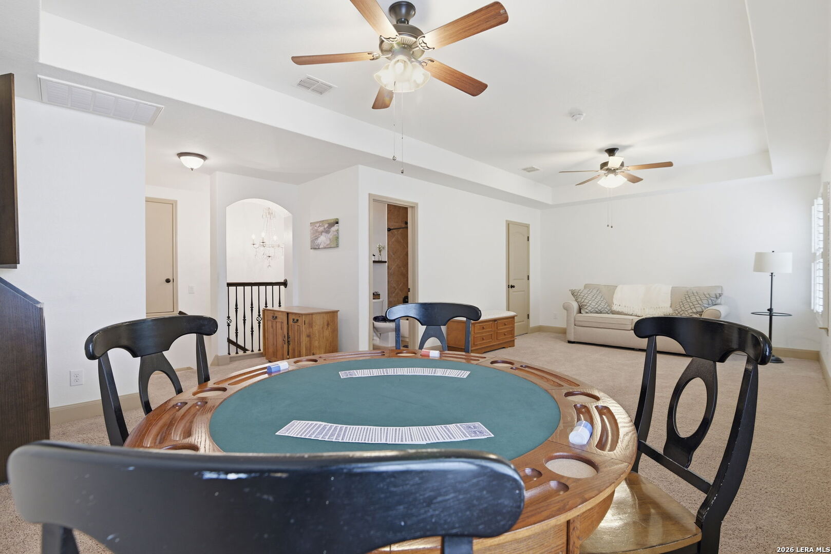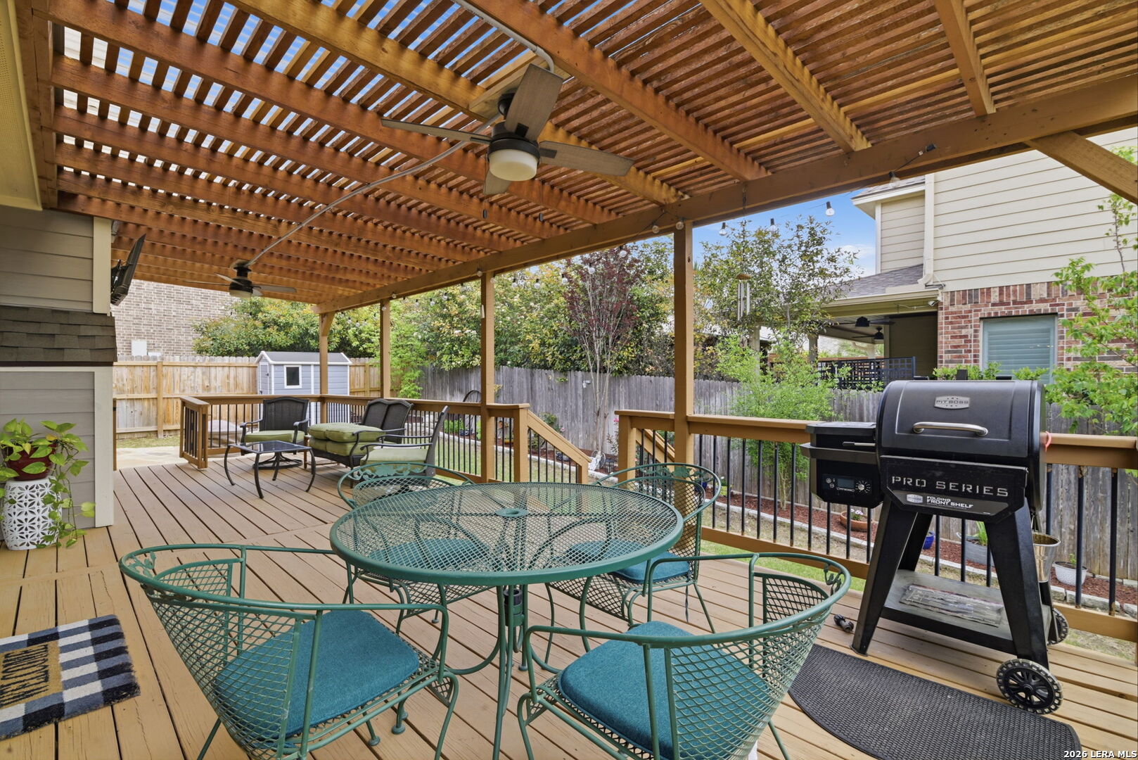 Sought after 1.5 story inside the gated Heights at Stone Oak * Meticulously cared for * 3 Bedrooms, 2.5 baths and study downstairs with Gameroom and bathroom up * Recent laminate flooring in primary bedroom, California closet in primary, plantation shutters added to windows that didn't have them, laundry room cabinets, outside flagstone patio, pergola roof cover, outside fan and recent roof * Owners willing to leave refrigerator, barstools at kitchen island and outside TV * Conveniently located near shopping * Showings after 1pm, Monday, Tuesday, Thursday and Friday require 24hr notice, 2 hr notice on Wednesday, Saturday and Sunday. No showings April 17, 18 and 19 *