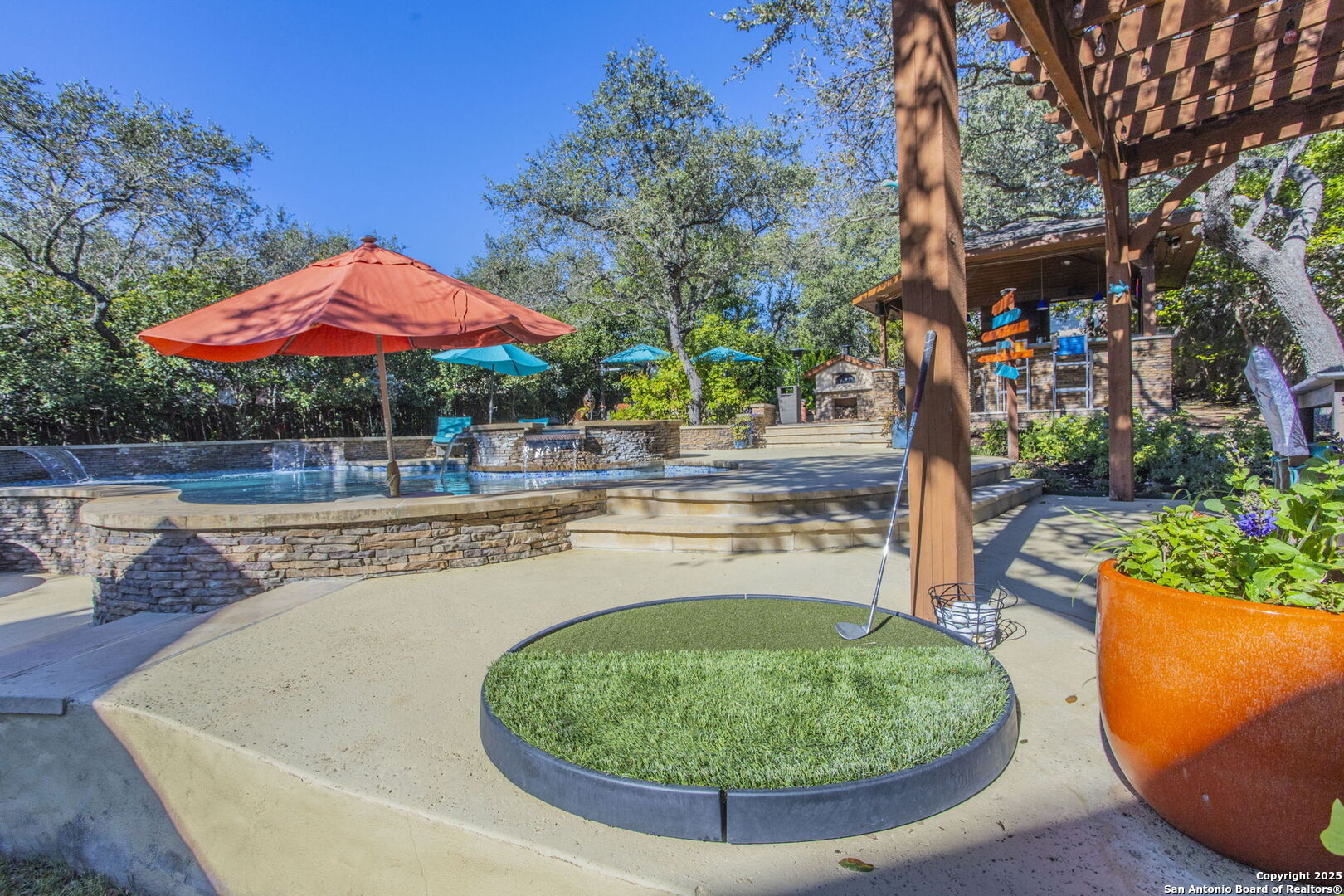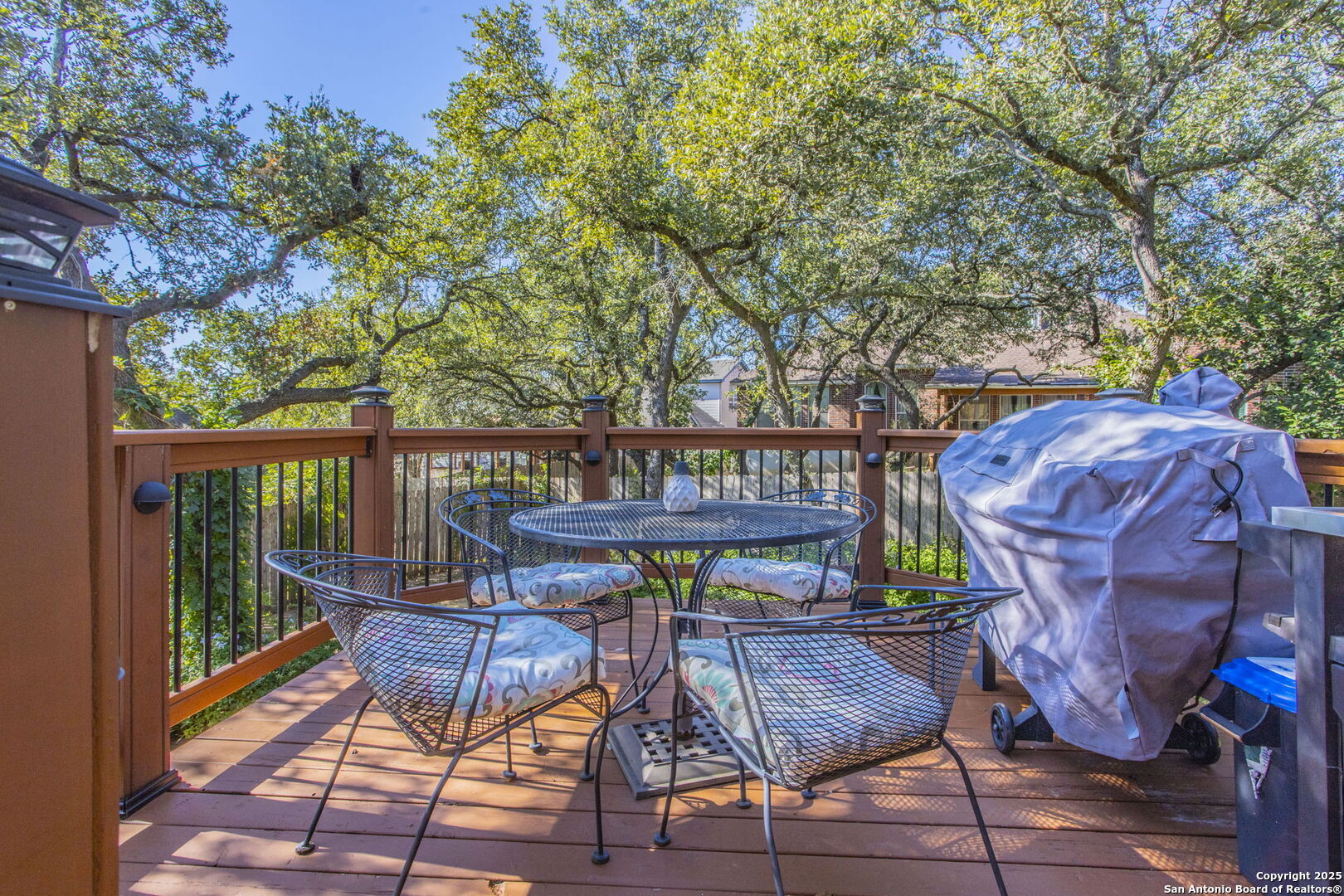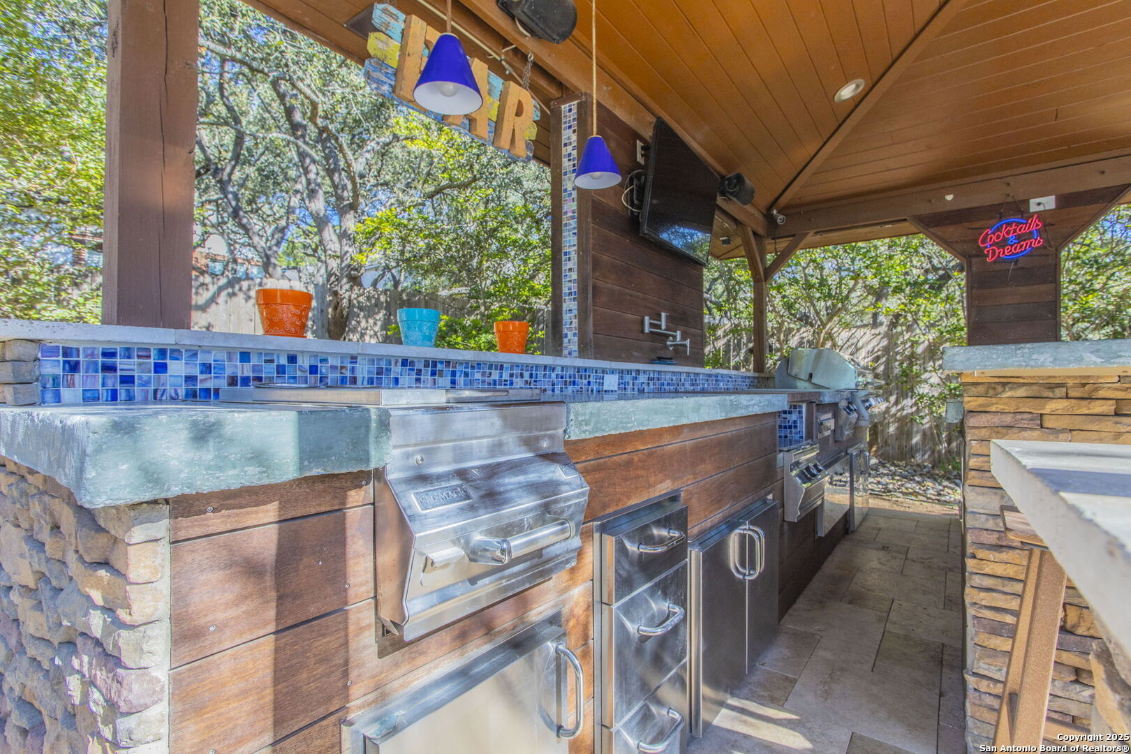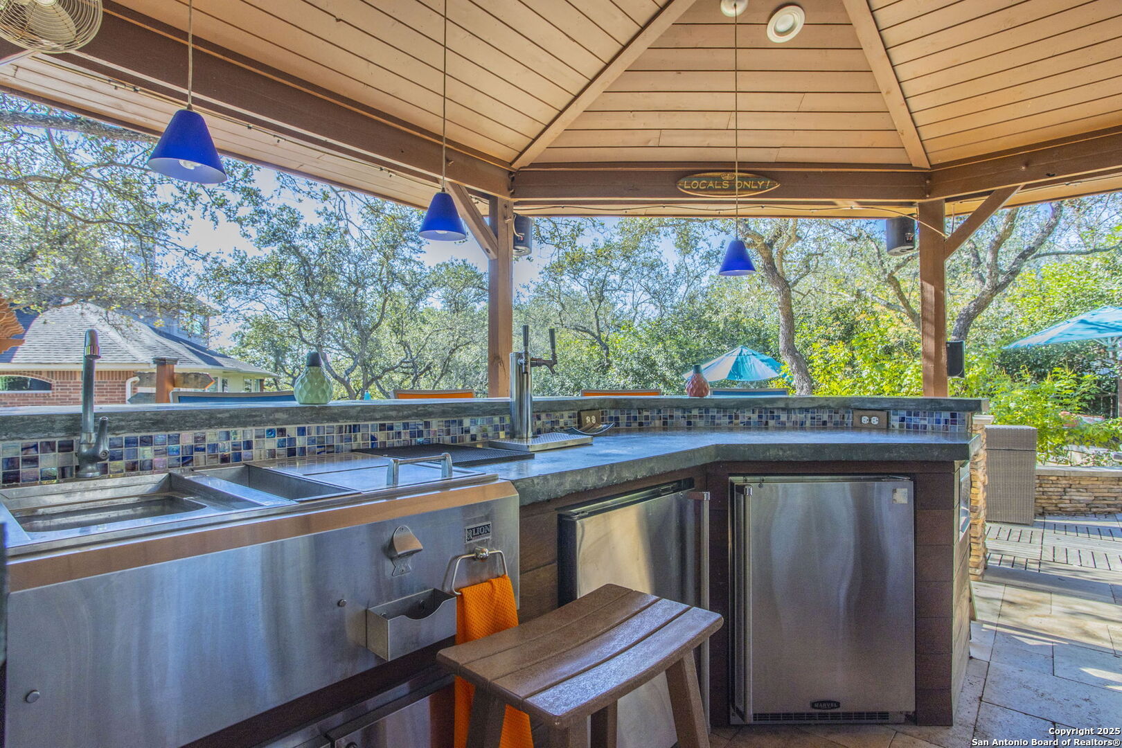 A lovely two-story home tucked away on a quiet cul-de-sac offers the perfect blend of comfort and natural beauty. It features 4 spacious bedrooms, 3.5 bathrooms, a dedicated office, and a large upstairs game room. The property offers a welcoming kitchen complete with a breakfast area, generous cabinet storage, and ample countertop space connected to a formal dining room. Additional highlights include tall ceilings, a double-sided fireplace, and a charming built-in home for your four-legged family members. Enjoy a covered patio with two ceiling fans and an attached wood deck that also provides for under-deck storage. The scenic backyard is an oasis for family and friends, with a pool, outdoor kitchen with wood-burning pizza oven, and multiple entertaining areas on a 0.4 acre lot featuring mature oak trees. The outdoor kitchen is equipped with a built-in Lion gas grill, Marvel refrigerator and kegerator, FireMagic double-sided burners, and power burner. Located in the Mountain Lodge community, residents enjoy access to top-rated schools, two pools, a playground, basketball courts, and the added benefit of no city taxes!