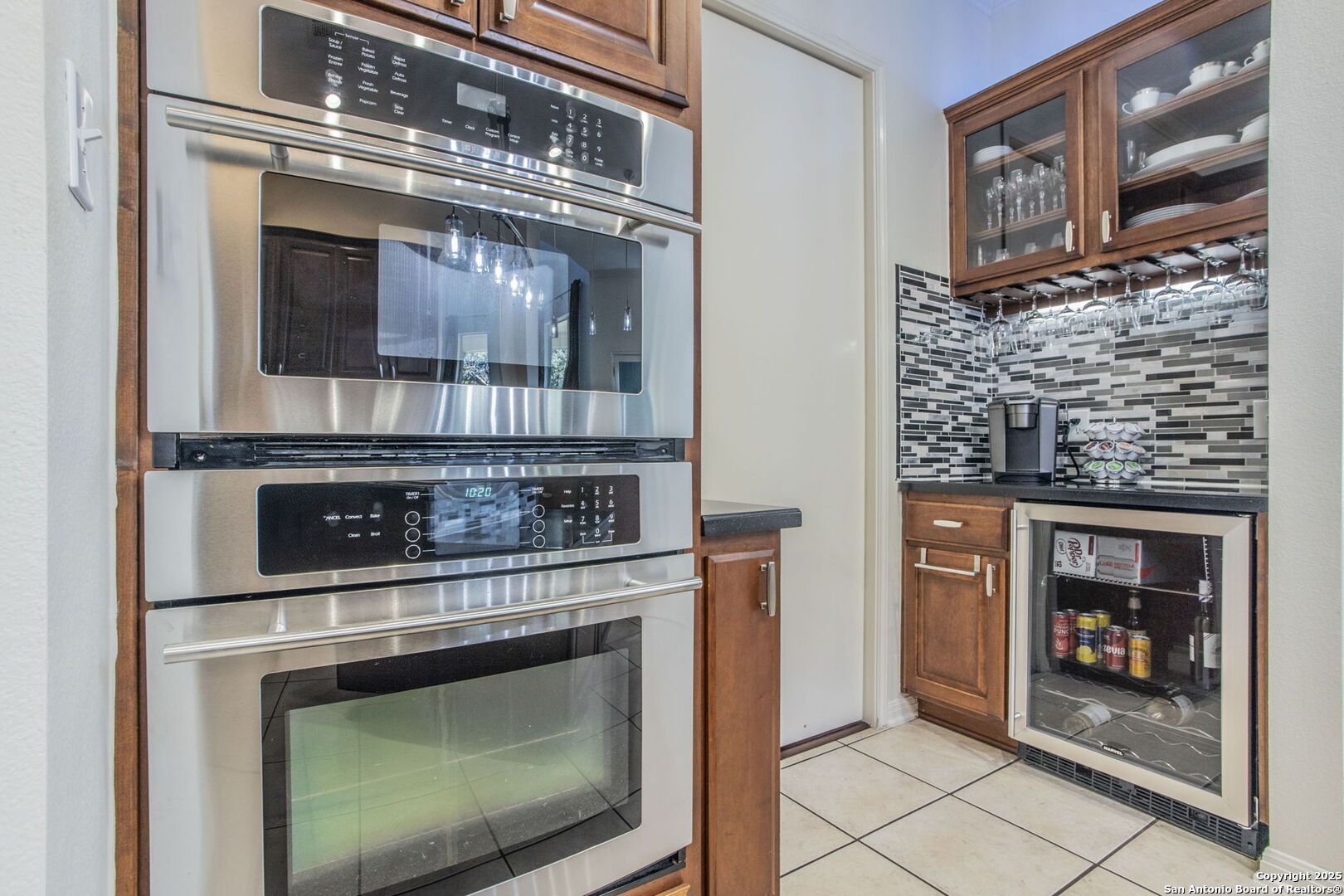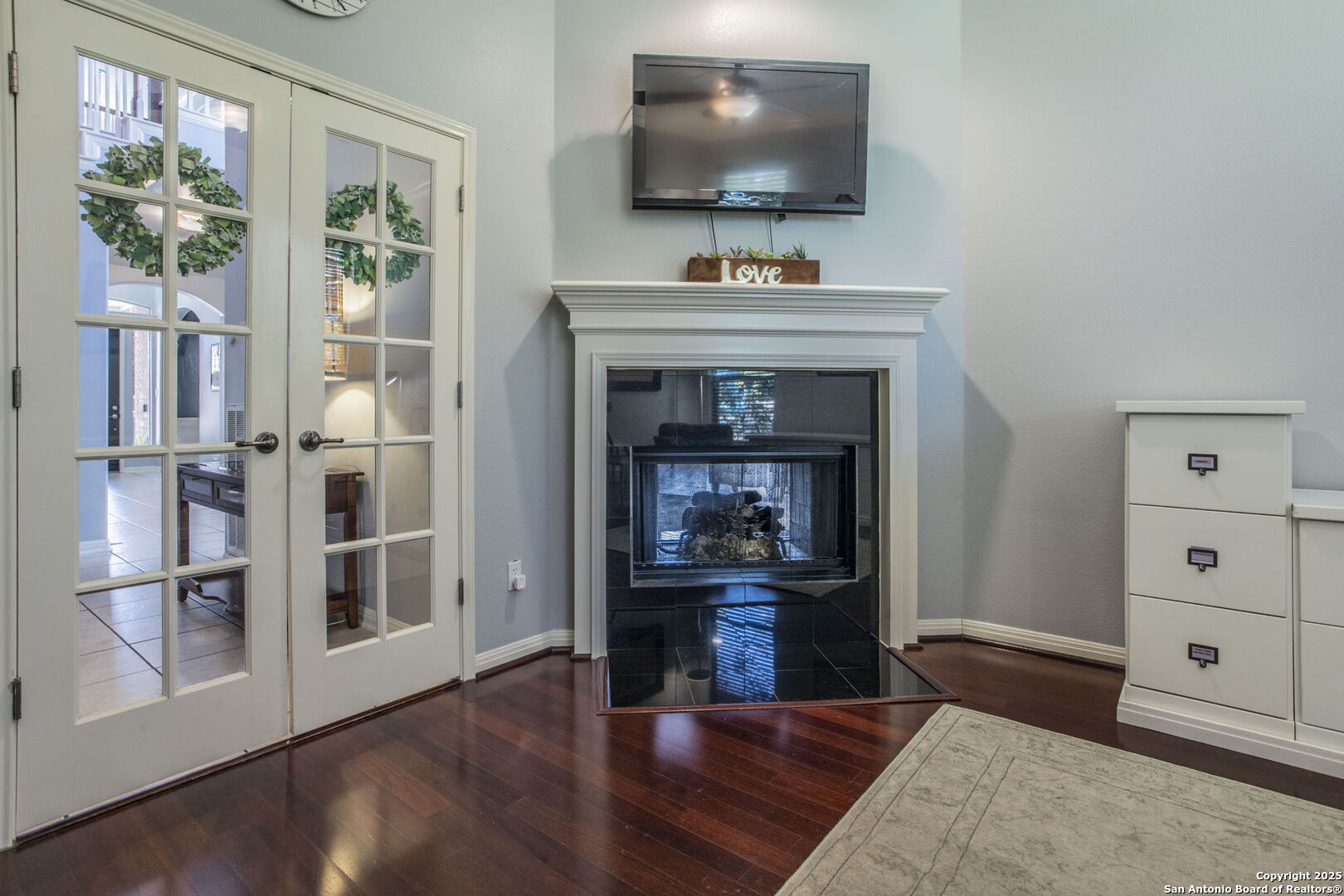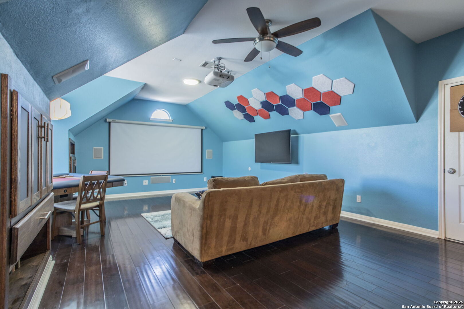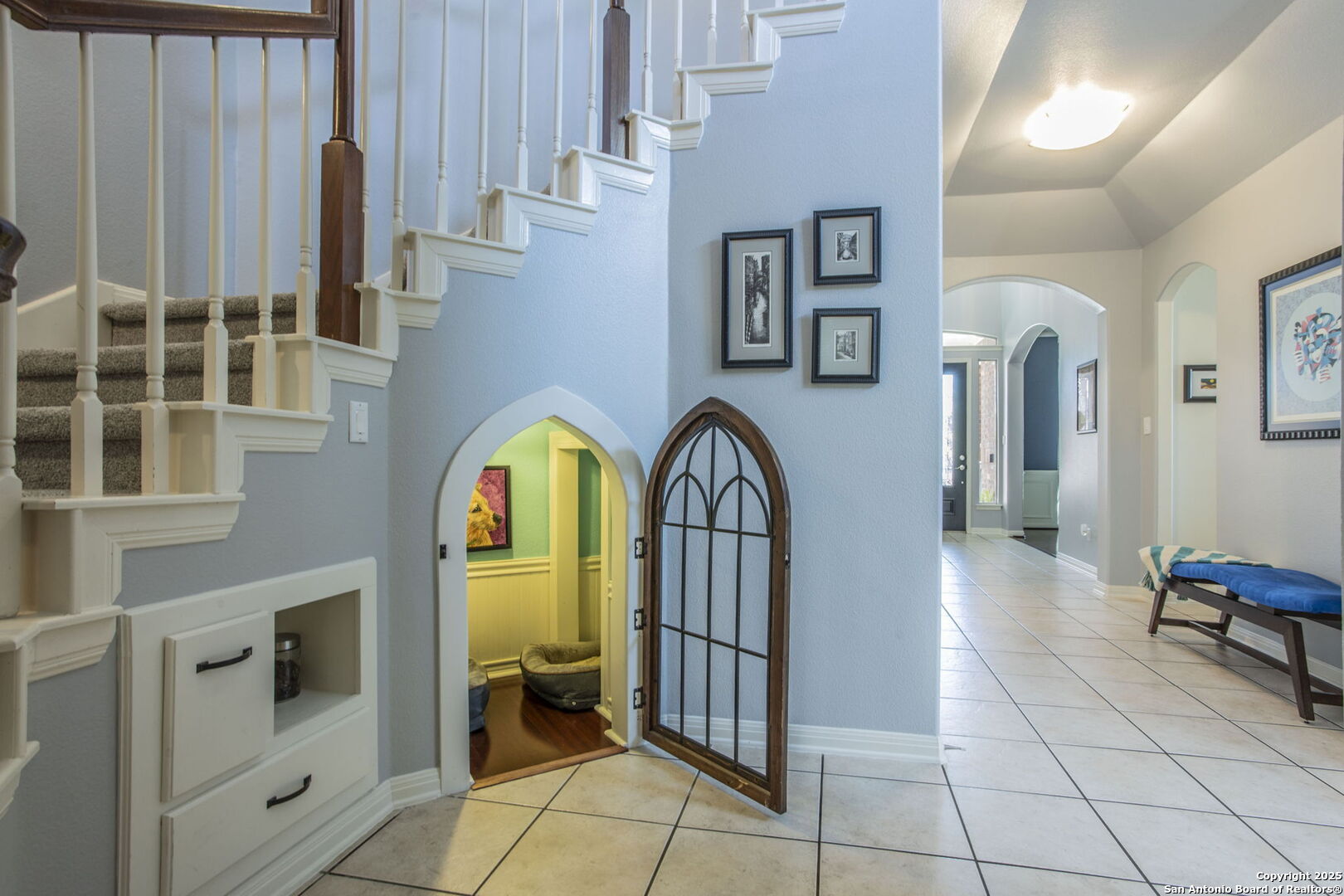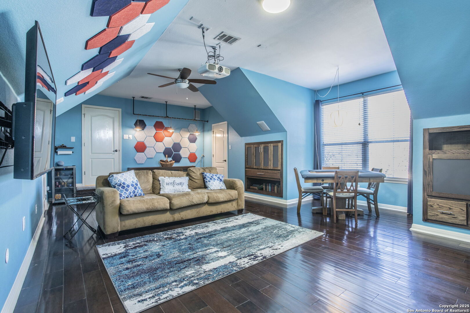 A lovely two-story home tucked away on a quiet cul-de-sac offers the perfect blend of comfort and natural beauty. It features 4 spacious bedrooms, 3.5 bathrooms, a dedicated office, and a large upstairs game room. The property offers a welcoming kitchen complete with a breakfast area, generous cabinet storage, and ample countertop space connected to a formal dining room. Additional highlights include tall ceilings, a double-sided fireplace, and a charming built-in home for your four-legged family members. Enjoy a covered patio with two ceiling fans and an attached wood deck that also provides for under-deck storage. The scenic backyard is an oasis for family and friends, with a pool, outdoor kitchen with wood-burning pizza oven, and multiple entertaining areas on a 0.4 acre lot featuring mature oak trees. The outdoor kitchen is equipped with a built-in Lion gas grill, Marvel refrigerator and kegerator, FireMagic double-sided burners, and power burner. Located in the Mountain Lodge community, residents enjoy access to top-rated schools, two pools, a playground, basketball courts, and the added benefit of no city taxes!
