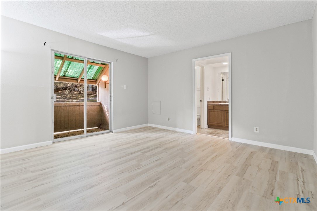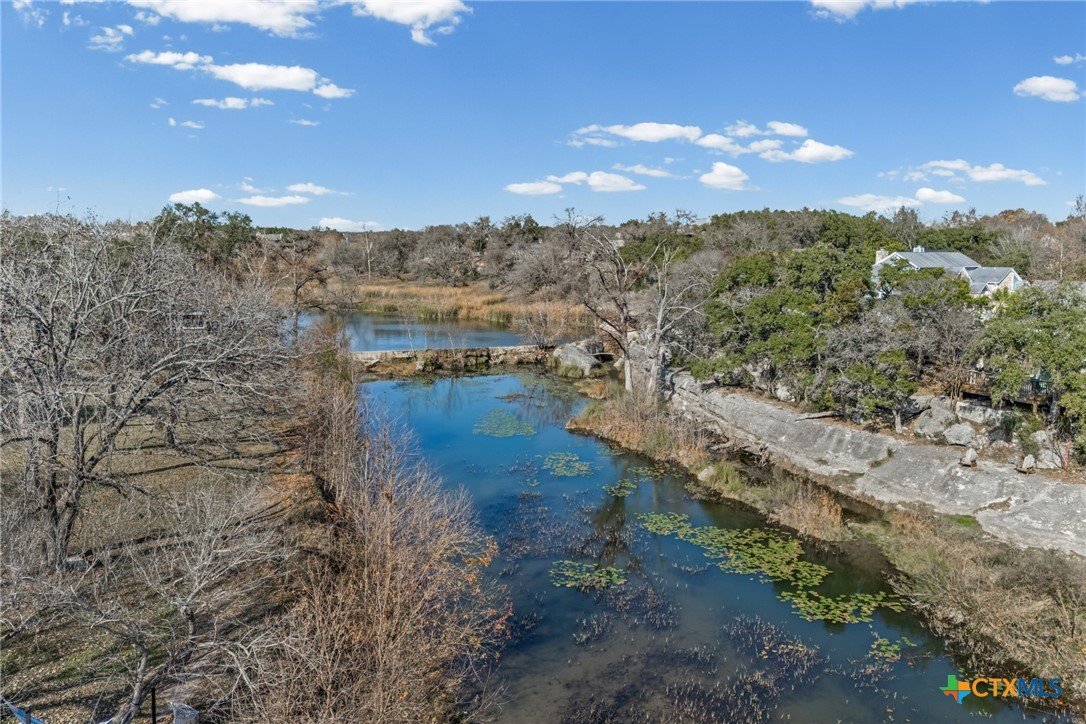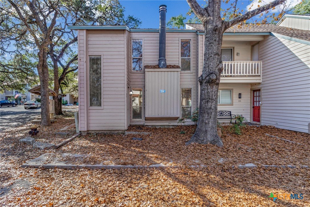 Corner unit with a rare layout and even rarer outdoor space. The entire home has been updated. Tile flooring runs throughout downstairs, including the kitchen and downstairs bedroom, while the upstairs features LVP flooring, with carpet only on the stairs. Every bedroom functions like a primary suite with its own full bathroom and walk-in closet, making this an ideal setup for roommates or a strong rental property. The downstairs bedroom opens directly to the backyard, and this is one of the only units in the entire complex with a fully fenced yard and a private shed. Upstairs, there’s a balcony overlooking the common area, along with a wood-burning fireplace in the living room that adds character and warmth. The location ties it all together! The golf course is just a few minutes away. Downtown Wimberley is about five minutes away for coffee, food, and local events. San Marcos is roughly a 20-minute drive with Texas State University and San Marcos Premium Outlets, while Austin is about 45 minutes north and San Antonio is just about an hour south. Additionally, you have private access to Cypress Creek and The Watering Hole, which is just steps away for swimming, fishing, kayaking, and relaxing by the water. You’ve got a property that checks both lifestyle and rental boxes!