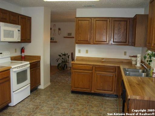 Beautiful home with 3 bedroom, 2.5 bath, game room and 2 car garage! Cozy brick fireplace in the living room! Enjoy cooking in the large kitchen, with built-in microwave! Ceramic tile and laminate wood floors throughout the first floor! Spacious primary suite has separate whirlpool garden tub and shower! Spend relaxing evening on the back patio, surrounded by mature trees! Great location near Randolph AFB and Fort Sam!