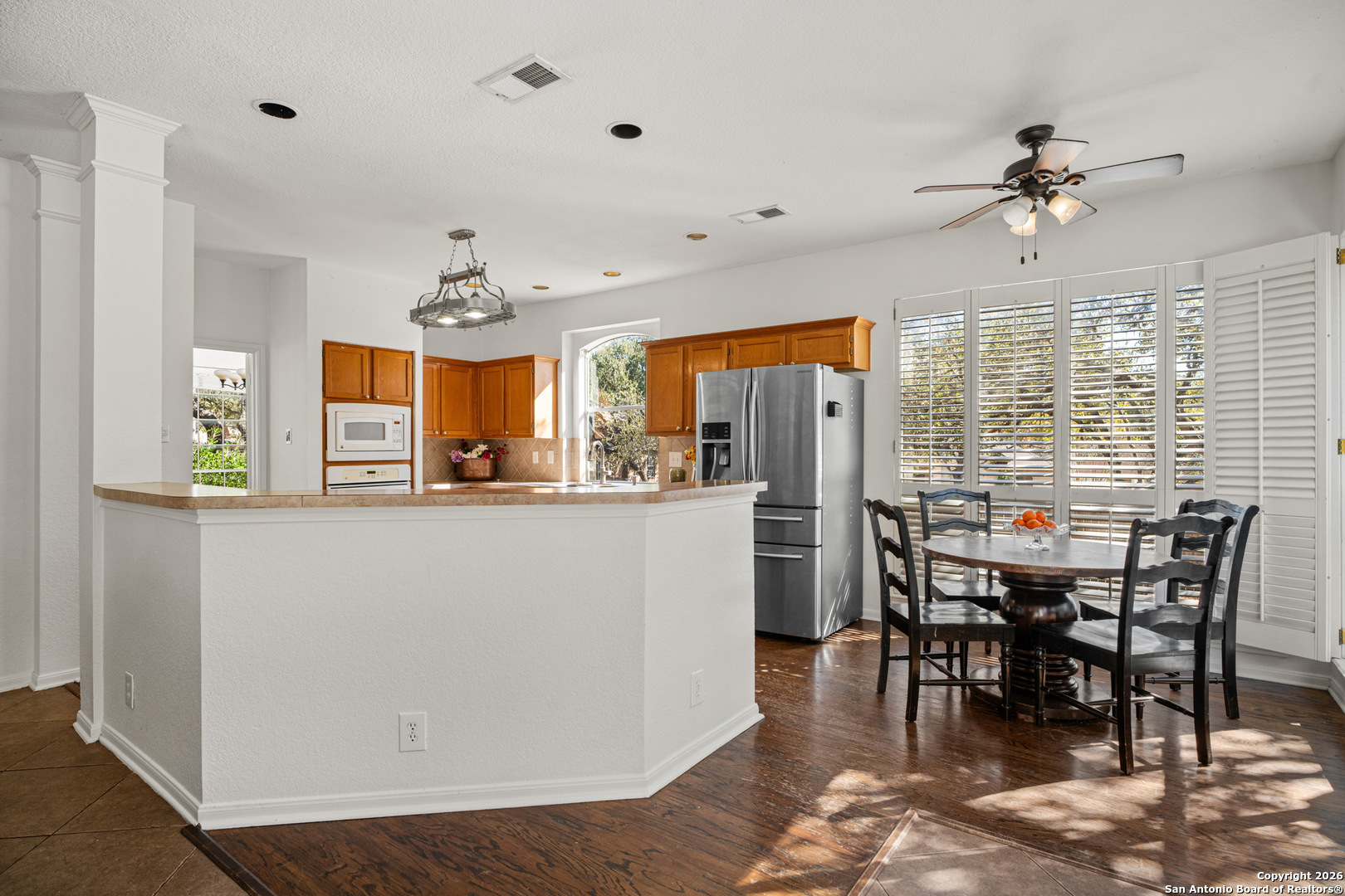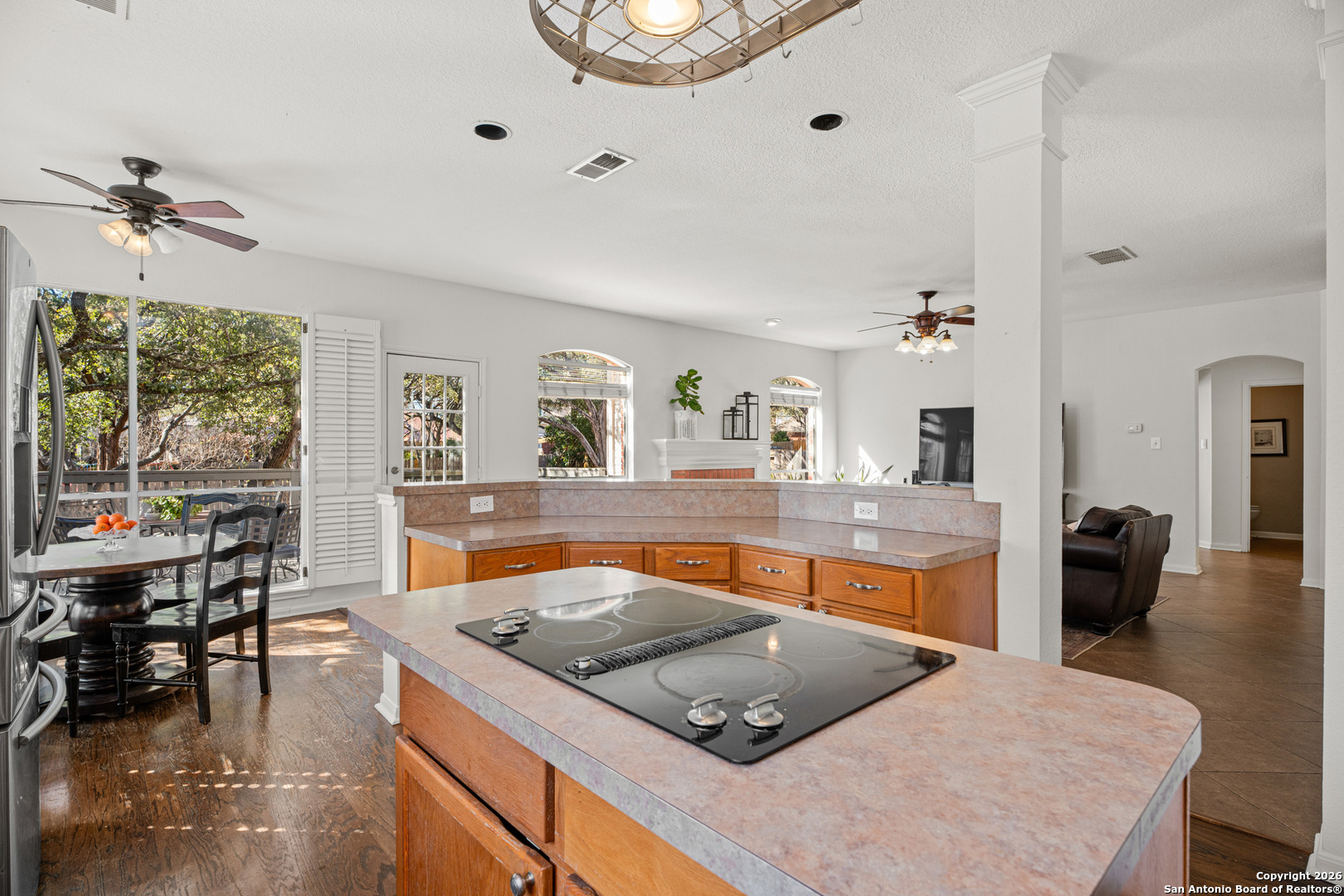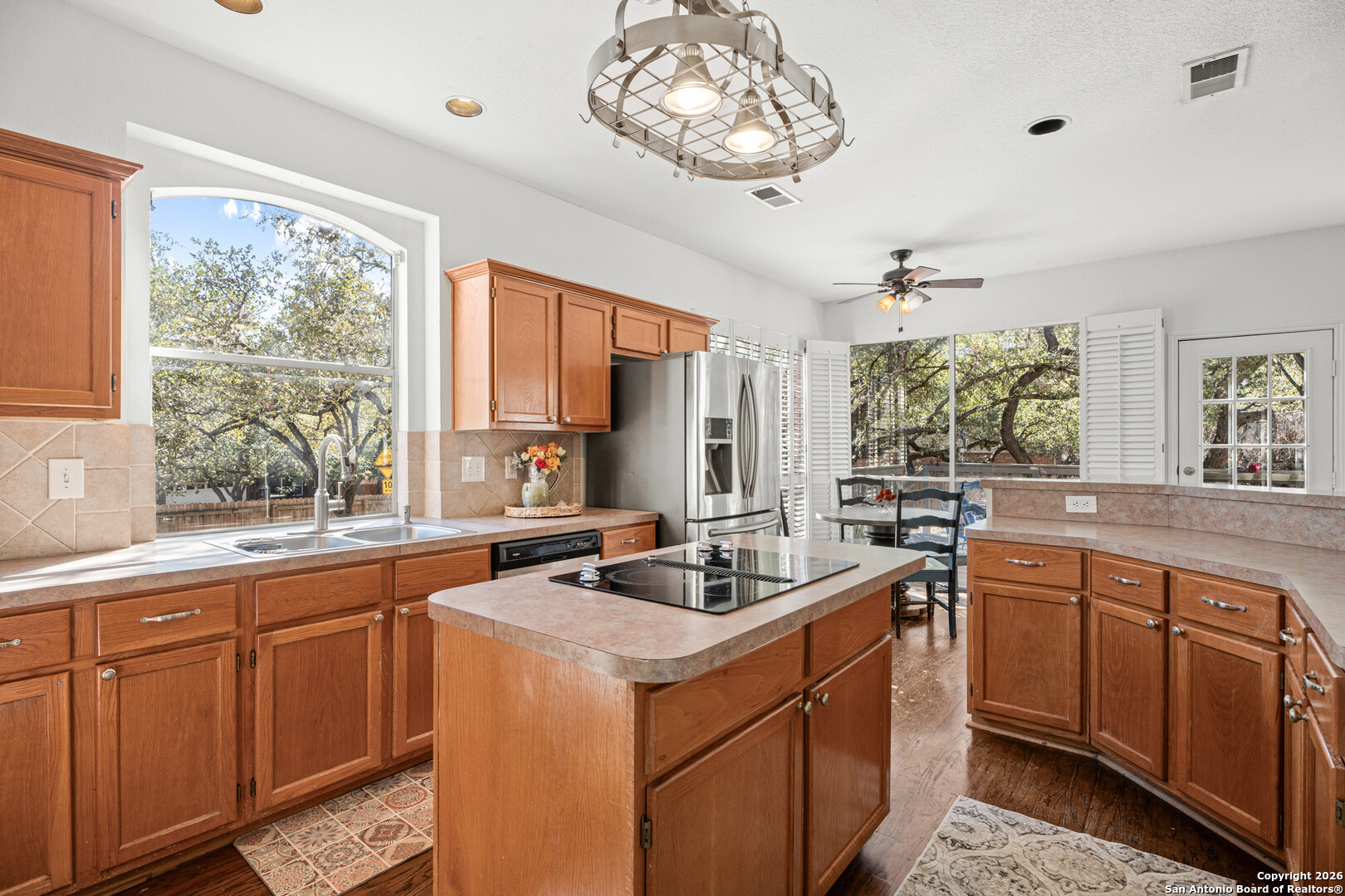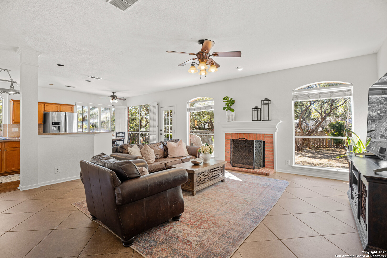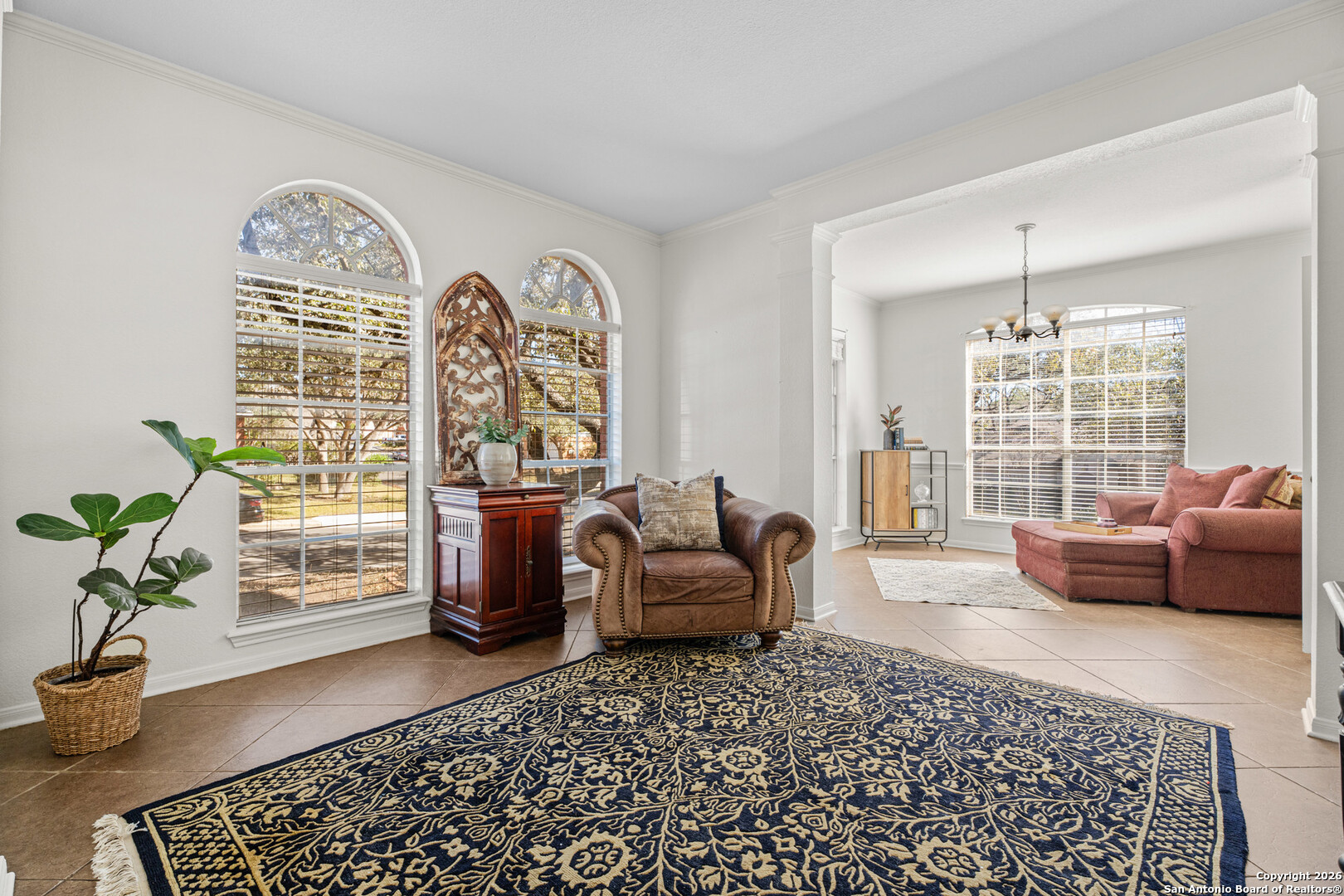 Set on a generous corner lot in one of North Central San Antonio's most established neighborhoods, this home offers space, privacy, and flexibility without trying too hard. The layout is intuitive and livable, with multiple living areas that flow naturally for everyday life and hosting alike. High ceilings and large windows bring in natural light, while the kitchen anchors the home with room to gather, work, and move easily between spaces. The primary suite is upstairs and thoughtfully separated, creating a true retreat. Secondary bedrooms and bonus spaces allow for a home office, guest room, or game room depending on your needs. Outside, the oversized yard with mature trees feels private and calm, a rare find this close to city conveniences. Located near major corridors, dining, shopping, and top Northside amenities, this home is ideal for buyers who value location, square footage, and long term livability over trends. Solid, spacious, and well positioned, this is a smart move in a neighborhood that continues to hold its value.
