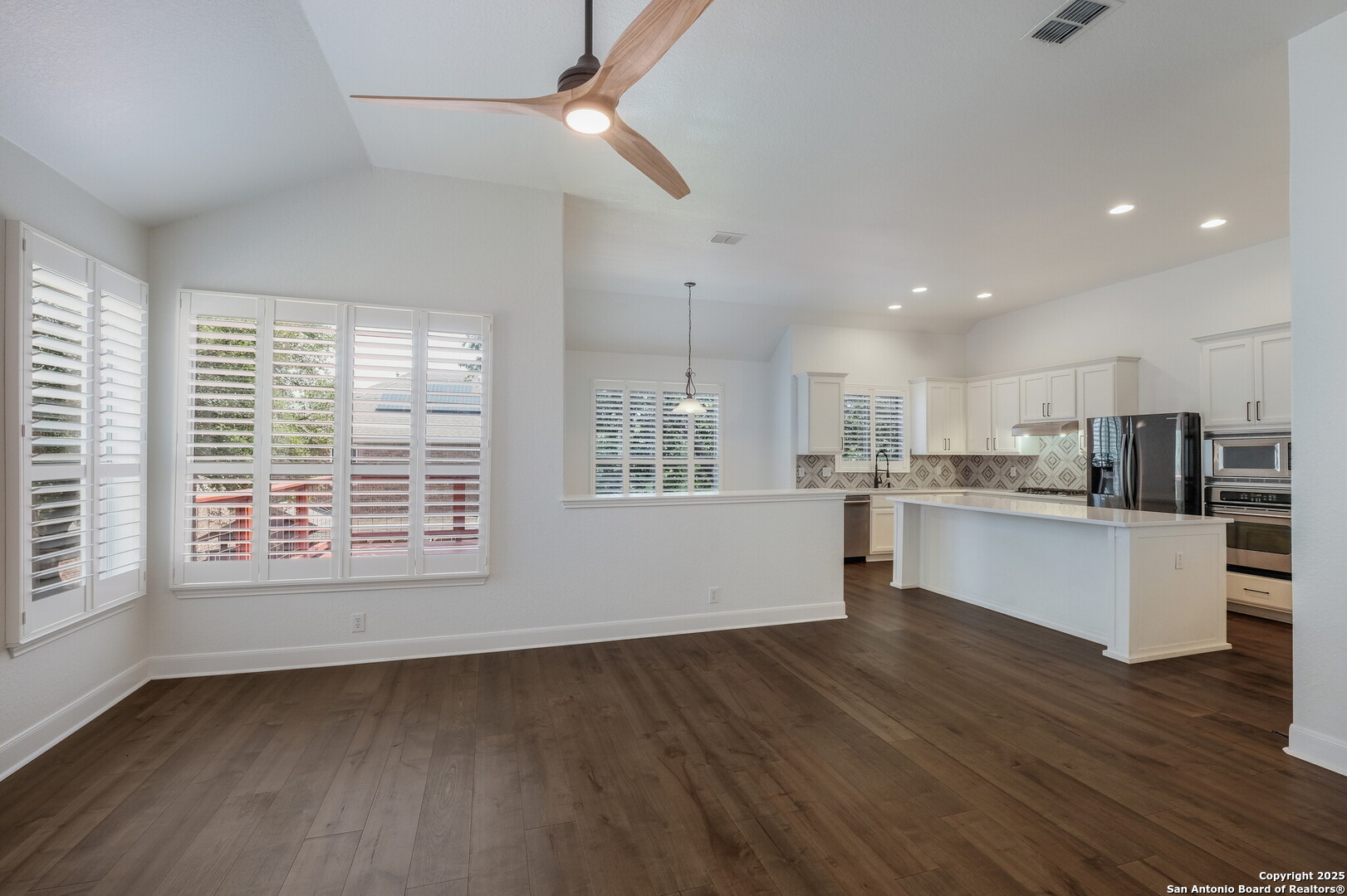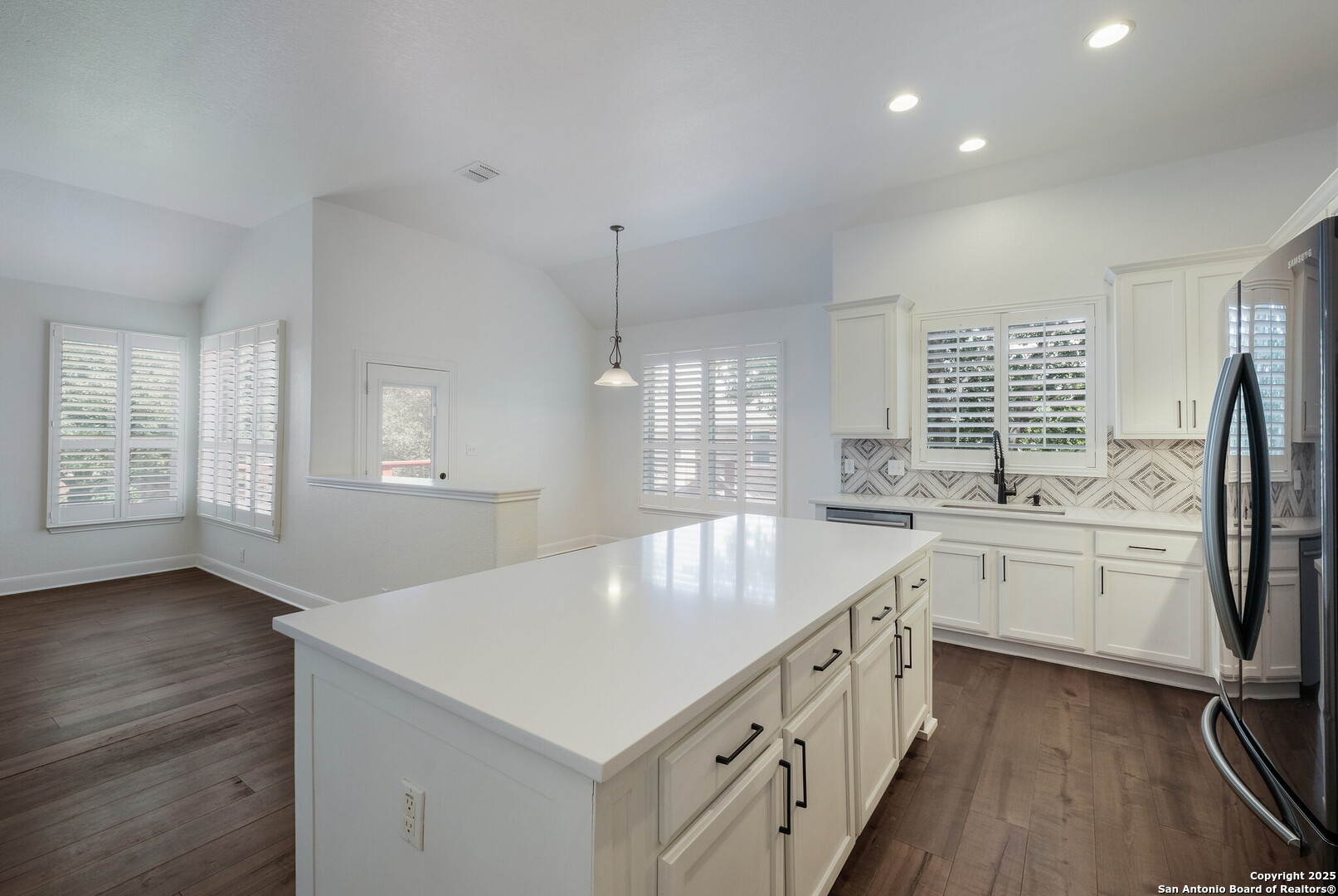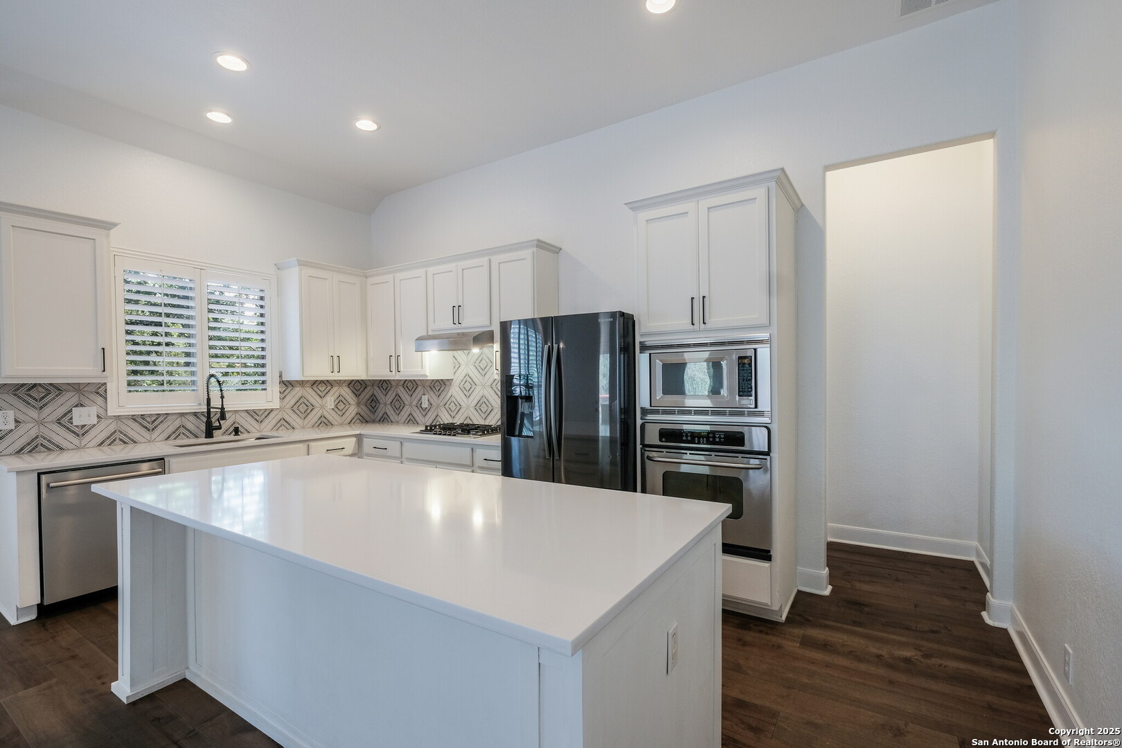 Don't miss this Cibolo Canyons stunner! Resort community living in the exemplary North East Independent School District, zoned to Johnson Highschool. The recently updated kitchen is a chef's dream with quartz countertops, stainless steel appliances, gas cooking and a farmhouse sink. The large kitchen island and wide-open floor plan is perfect for entertaining! Recent updates include solid wood flooring throughout (no carpet) and plantation shutters. The dedicated office is perfect to work/study from home. HVAC was replaced in August 2023. The roof was replaced in 2019.