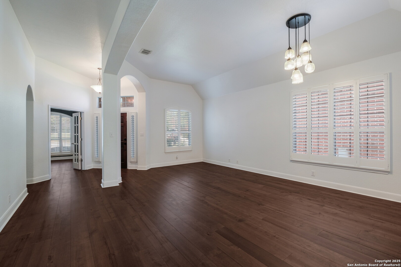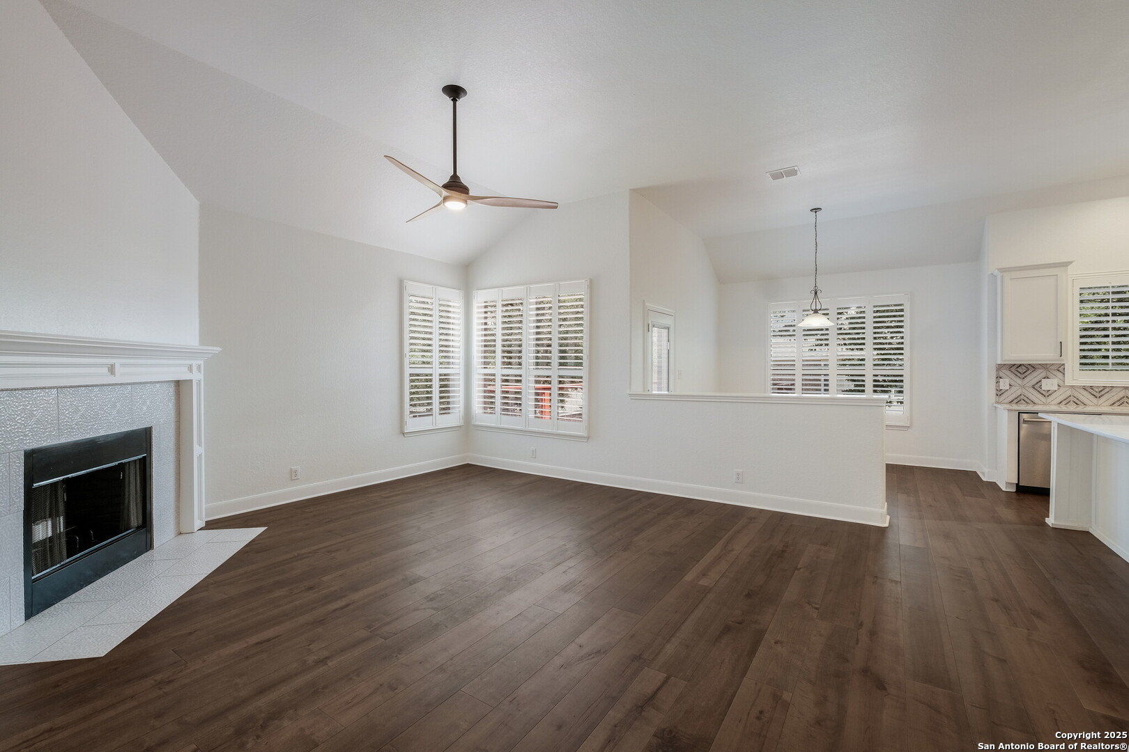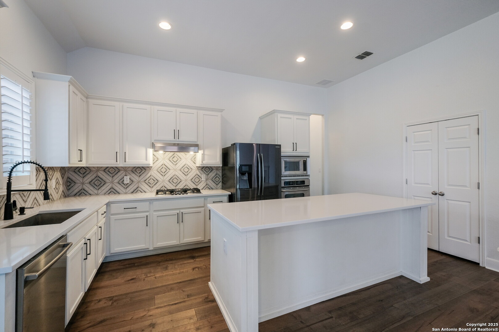 Don't miss this Cibolo Canyons stunner! Resort community living in the exemplary North East Independent School District, zoned to Johnson Highschool. The recently updated kitchen is a chef's dream with quartz countertops, stainless steel appliances, gas cooking and a farmhouse sink. The large kitchen island and wide-open floor plan is perfect for entertaining! Recent updates include solid wood flooring throughout (no carpet) and plantation shutters. The dedicated office is perfect to work/study from home. HVAC was replaced in August 2023. The roof was replaced in 2019.
