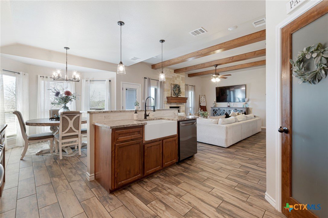 Welcome to 2405 Settlement Rd in Copperas Cove, TX — where custom details, space to breathe, and Lampasas ISD combine into one exceptional property. This beautifully designed 4-bedroom, 2-bath home sits on nearly half an acre, offering privacy, functionality, and room to truly enjoy your surroundings — with no backyard neighbors and peaceful views to match. Step inside to a warm and inviting living space featuring striking wooden beams and a stunning floor-to-ceiling stone fireplace that anchors the room with timeless character. Custom feature walls throughout the home add personality and elevated design touches you won’t find in a standard build. The open, flowing floor plan connects the living, dining, and kitchen areas seamlessly — ideal for both everyday living and entertaining. The kitchen is complete with granite countertops, ample cabinetry, and generous prep space, creating a perfect balance of beauty and practicality. The spacious primary suite offers comfort and privacy, while secondary bedrooms provide flexibility for family, guests, or a home office. Both bathrooms are well-appointed with quality finishes and thoughtful layout. Outside, the oversized lot gives you the freedom to enjoy outdoor living the way it’s meant to be. The covered patio is perfect for hosting gatherings, grilling weekends, or simply relaxing in the evenings. An upgraded garage adds extra functionality for storage, hobbies, or workspace needs. Homes with this combination of custom style, lot size, privacy, and Lampasas ISD zoning don’t come around often. If you’re looking for space, character, and a move-in ready home with standout features — this one checks the boxes.