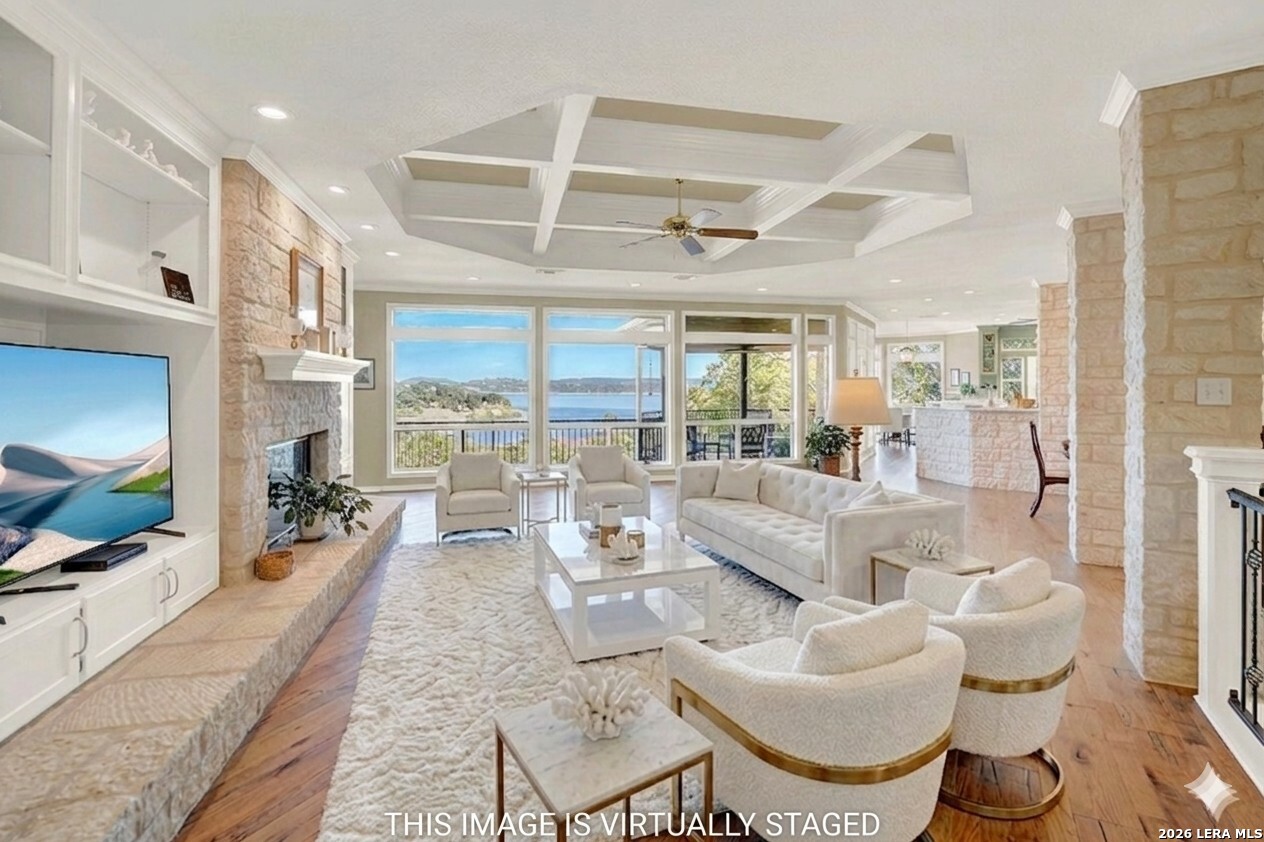 Welcome to your dream lakefront retreat on 1.1 acres in the coveted Turkey Cove of Canyon Lake, Texas, a destination renowned for fishing, water sports, front-row seats to 4th of July fireworks, and breathtaking views. This luxurious home is across from Boat Ramp #2 and offers a seamless blend of comfort and natural beauty. As you step inside, you are greeted by expansive windows framing panoramic lake views, filling the open-concept living space with natural light. The beautifully appointed kitchen flows effortlessly into the dining and family room, where a cozy fireplace and glass doors lead to an expansive deck, perfect for entertaining or simply soaking in tranquility. The primary suite, recently remodeled, is a private oasis with a spa-like en-suite bathroom featuring a deep soaking tub overlooking the lake, a walk-in shower, and dual vanities. The lower level offers a second living area and three additional bedrooms. One large bedroom can be used as a flex guest/craft room, and a spacious walk-in basement storage area can be used. Just 20 minutes from HEB, the Gruene Historic District, and New Braunfels, and 10 minutes to White Water Amphitheater, tubing the horseshoe on the Guadalupe River, River Road, and great restaurants. This property combines serene lakefront living with convenient access to nearby amenities. The POA features include a pool, tennis courts, a clubhouse, and more for a low annual fee. Whether you're looking for a full-time residence or a weekend getaway, this stunning home offers the perfect blend of luxury, comfort, and the unparalleled beauty of Canyon Lake. Don't miss this rare opportunity. These properties do not come on the market every day-schedule your showing today!