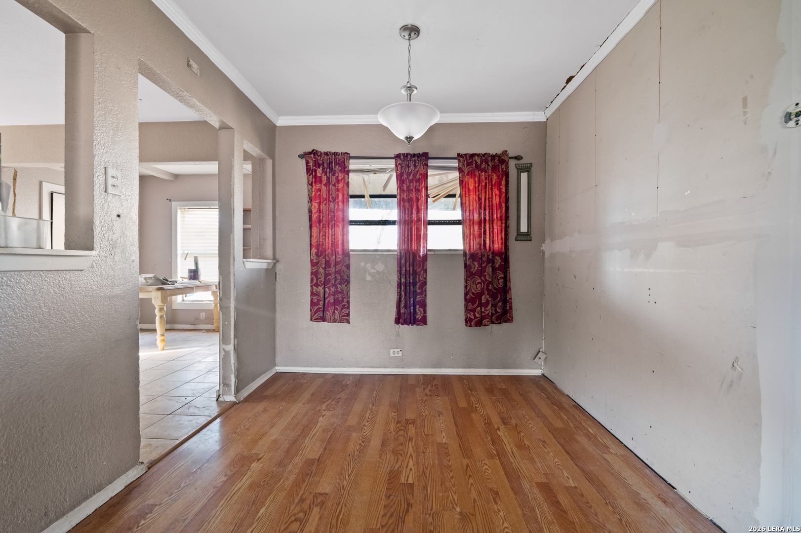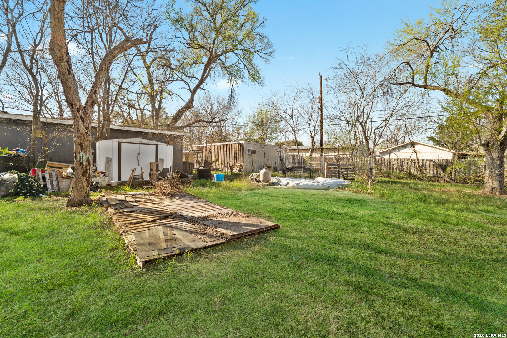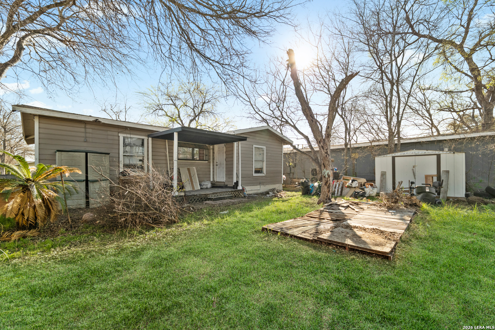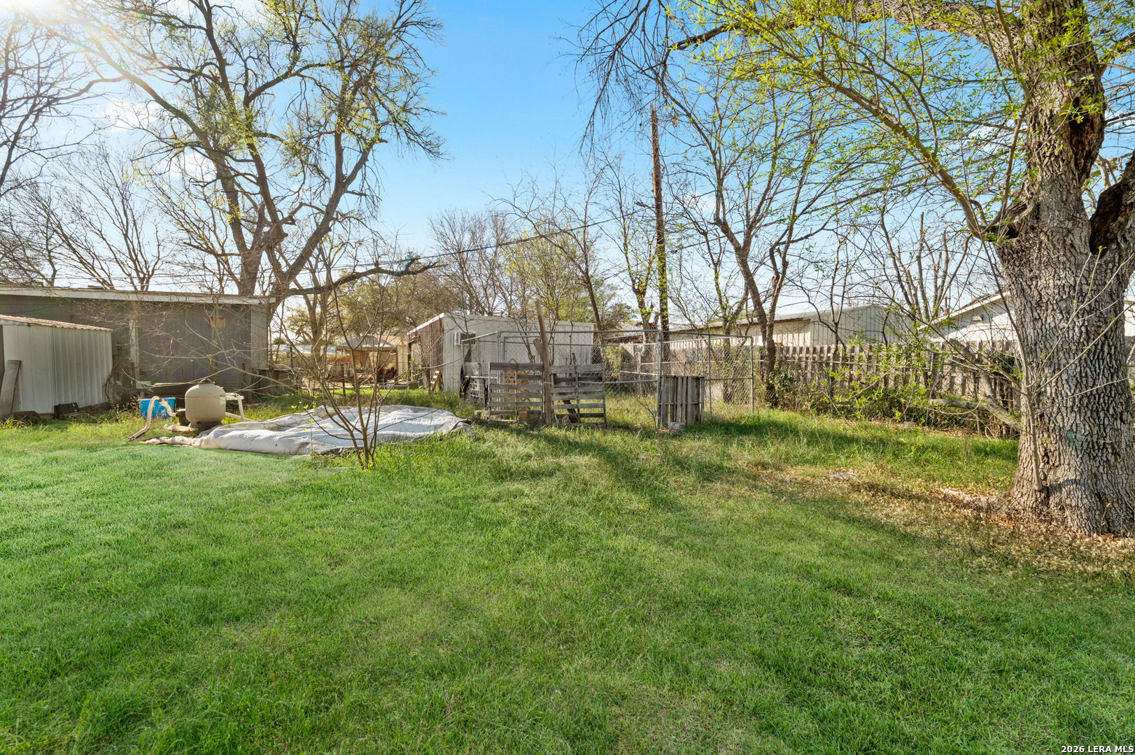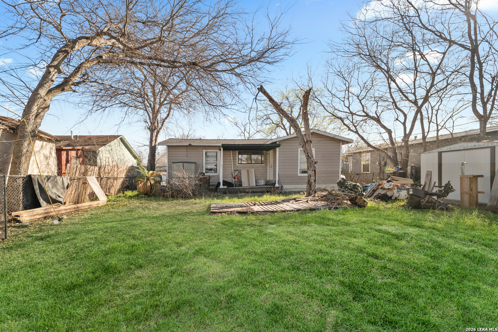 This charming and move-in ready single-family home featuring three bedrooms and one full bathroom, freshly designed with an open living room that flows into a separate dining area and convenient breakfast space in the kitchen. The spacious master bedroom and generous secondary rooms offer comfortable living, while central heat and air provide year-round comfort. Set on a large lot with a huge backyard shaded by mature trees and complemented by a covered patio, this home invites outdoor relaxation and entertaining. Located in the desirable Highland Hills area of San Antonio with easy access to Hwy 37 and Interstate 35, this property delivers both comfort and convenience in a well-established neighborhood.