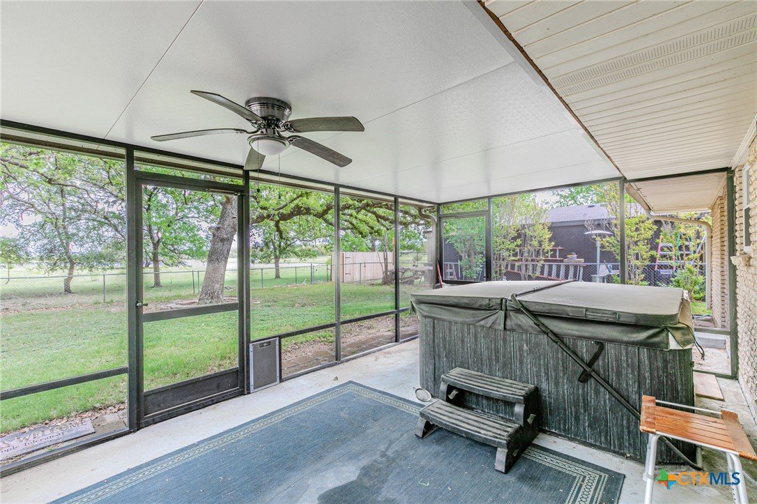 Welcome to this charming, recently updated 3-bedroom, 2-bathroom single-story home offering 1,944 square feet of comfortable living with modern upgrades throughout. Tucked away in a quiet area of Gatesville, this property offers the perfect blend of privacy and scenic backyard views—ideal for relaxing evenings or entertaining guests. The home has seen numerous improvements, including energy-efficient windows with a transferable warranty, vinyl wood flooring, garage door and opener, and a hot water heater. A newer HVAC system, along with updated ductwork and added attic insulation, ensures year-round efficiency and comfort. Inside, the guest bathroom has been thoughtfully remodeled and features a heated jetted tub, while the primary bath includes fresh paint and updated lighting. The kitchen is equipped with newer appliances—including the refrigerator, stove, microwave, and dishwasher—along with an upgraded faucet and garbage disposal. Additional updates include select fresh interior paint, updated ceiling fans, new electrical covers, and a laundry room with a utility sink. Outdoor living is where this property truly shines. Enjoy a screened-in patio with a relaxing hot tub, a saltwater above-ground pool with deck, and a fire pit area—all overlooking a spacious, open backyard. Exterior enhancements include new fence gates, added pavers, and gravel landscaping. A workshop with electricity provides excellent space for projects or storage, and electric has already been run to both the hot tub and deck. There’s also an RV hookup with electric in place. Move-in ready and packed with upgrades, this Gatesville gem offers comfort, functionality, and space to enjoy—schedule your private showing today!