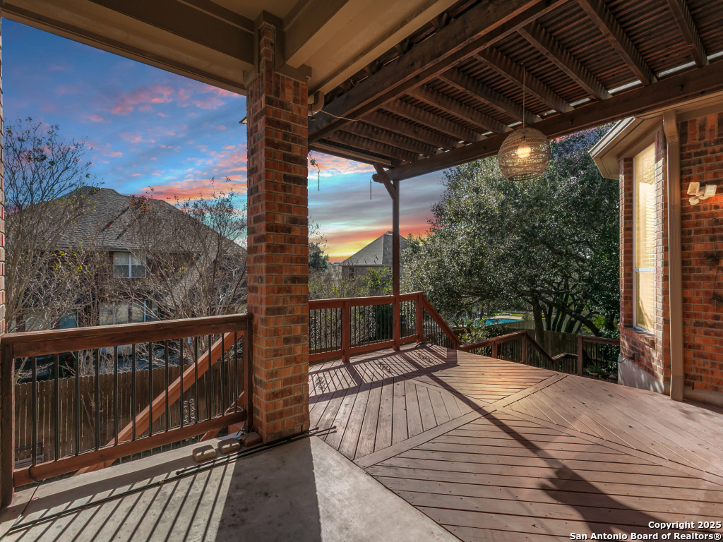 Open House, Sat & Sun, January 3 & 4, 2:00 - 4:00 pm. Refined Hill Country living awaits in this elegant two-story residence tucked away on a private cul-de-sac lot. Offering over 4,100 square feet, this five-bedroom, four-and-a-half-bath home features soaring ceilings, an open-concept design, and an expansive island kitchen ideal for entertaining. The main-level primary suite is a serene retreat with a spa-inspired bath and custom walk-in closet, while a private downstairs guest suite adds exceptional flexibility. Upstairs, enjoy a Texas-sized game room and dedicated theatre room. Mature trees, a beautifully landscaped yard, three-car garage, and access to community pool and clubhouse complete this exceptional home in the highly sought-after North East ISD.* Solar Panels * Roof 2024 *New HVAC Units 2025 *Water Heaters 2017/2022 *First floor guest suite with private entry *Beautifully landscaped front yard *Custom Primary Suite Closet *Under deck Storage *Hardy Oak ES, Lopez MS, and Reagan HS