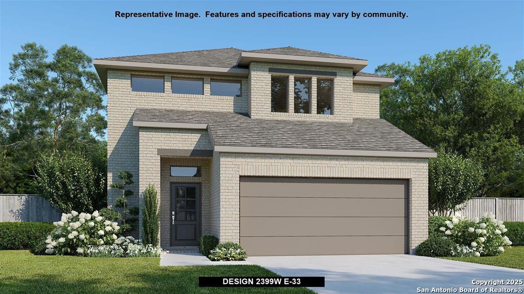 Front porch with two-story entry. Large family room with wall of windows. Home office with French door entry just off the family room. Island kitchen with built-in seating space and a corner walk-in pantry opens to the dining area. Secluded primary suite. Primary bath offers dual vanities, walk-in closet and a large glass enclosed shower. Second level offers a large game room with a wall of windows, secondary bedrooms with walk-in closets, two full bathrooms and a linen closet. Covered backyard patio and multi-zone sprinkler system. Utility room just off two-car garage.