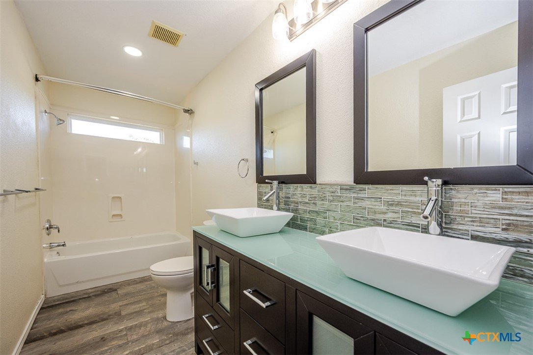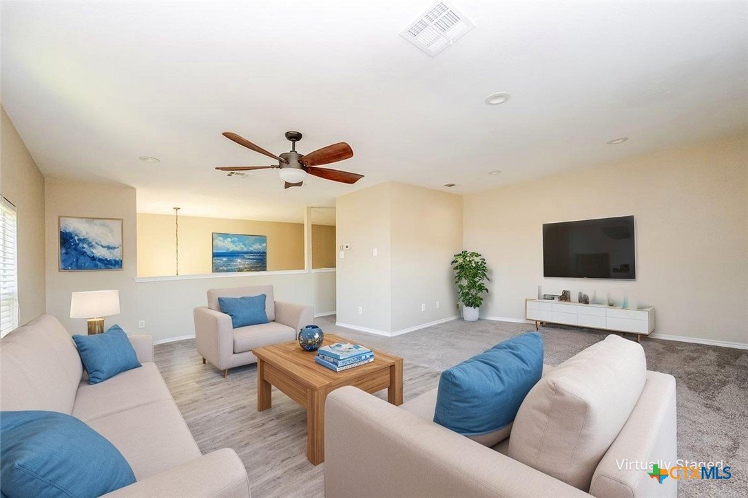 Set on a generous corner lot, this home immediately stands out for the space it offers—both inside and out. The extra breathing room creates a yard that truly feels usable, perfect for gatherings, play, or simply enjoying evenings around the built-in firepit under the stars. The location is hard to beat. The elementary and middle schools are just three blocks away, while Harker Heights High School and the YMCA are an easy walk. The YMCA adds even more value with its indoor swimming pool, dog parks, and walking trails. Shopping, dining, everyday services, and city parks are all just minutes from your door, making daily life convenient without sacrificing a sense of neighborhood. Inside, the floor plan was designed for both comfort and flexibility. The great room centers around a corner fireplace, creating a natural gathering space. A dedicated formal dining room is ready for holiday meals and celebrations, while the island kitchen serves as the heart of the home with granite countertops, an abundance of cabinets, and a built-in command center that keeps schedules, homework, and daily life organized. Upstairs, a huge loft offers endless possibilities—game room, media space, or second living area—while the secondary bedrooms are impressively sized. The owner’s suite is a private retreat, complete with a jetted tub and separate shower. Thoughtful upgrades add peace of mind and modern appeal: the roof was replaced in 2014, luxury vinyl plank flooring enhances the living spaces, all windows were replaced in 2020, recessed lighting brightens the home throughout, and the privacy fence was replaced in 2025. The owner’s suite bathroom was also upgraded in 2025 with custom cabinetry, new mirrors, and a beautifully updated tile surround for both the tub and shower. This is a home that offers space to grow, a location that simplifies life, and upgrades that show pride of ownership—ready to support busy days, relaxed evenings, and everything in between.