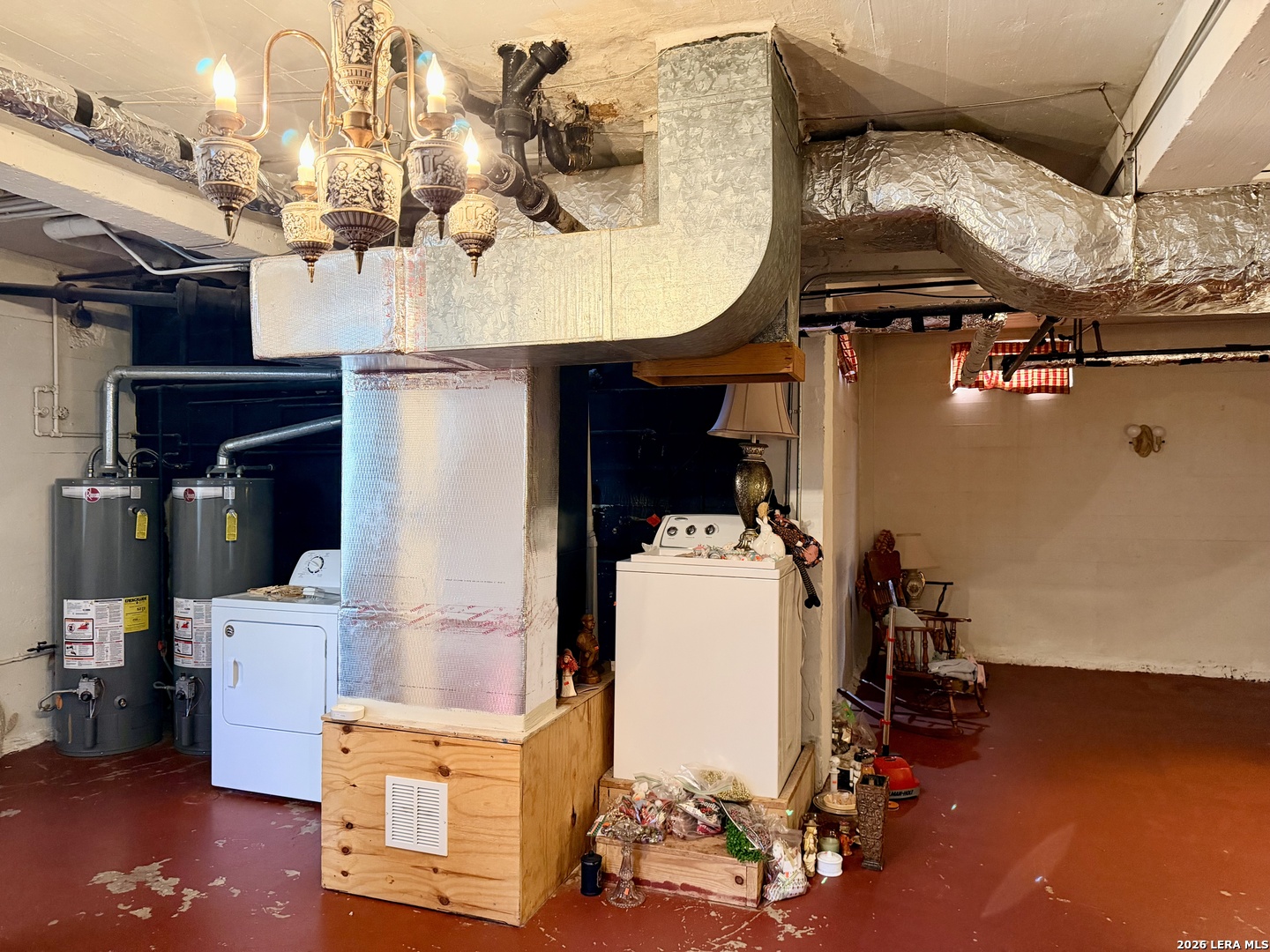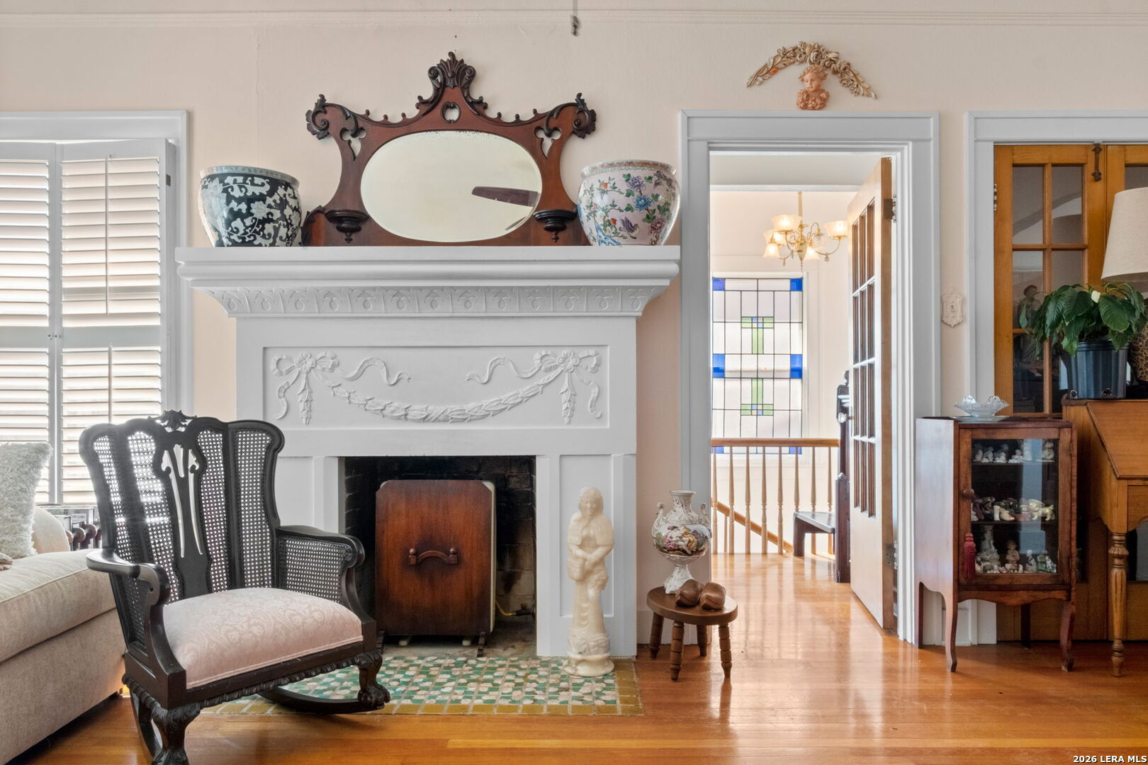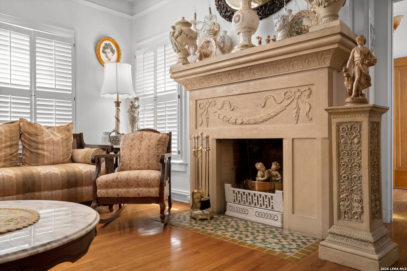 Welcome to 243 E Lullwood Ave! Located just down the street from Trinity University in historic Monte Vista, this 2438sf neoclassical-inspired up/down duplex has been cared for as a single-family home for the past fifty years. Built in 1925 by architect Gilberto S. Santa Cruz, this beautifully maintained home's main and upper levels mirror one another, each offering a spacious living room, dining room, kitchen, outdoor patio, large bedroom, full bath, and numerous walk-in closets and storage areas. Architectural delights include a grand arched entryway, elegant arabesque columns, lifetime slate roof, original wood floors, stunning vintage light fixtures, exquisite tilework, and exceptional craftsmanship throughout. The property also features a rare 1158sf basement the previous homeowners used as a family room, oversized carport, and a grandfathered curb-cut to Hildebrand for rear access and covered parking. Ideal for multi-generational living or as a prime rental investment, this home was built to last with true craftsmanship on offer at literally every turn. Please verify schools and all details herein. This home was appraised for $582,990 on 8.23.24, as attached in the upper right "Additional Information" dropdown, alongside home history featured in the book, "Monte Vista" by Donald E Everett. Come take a look!