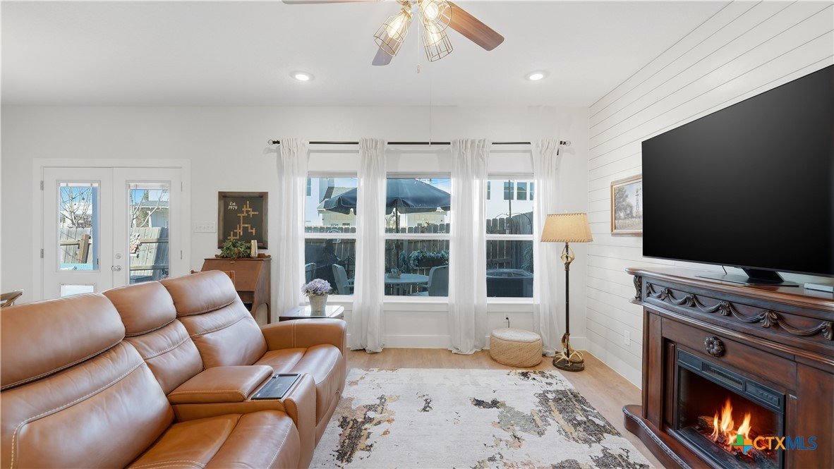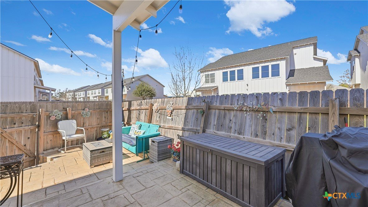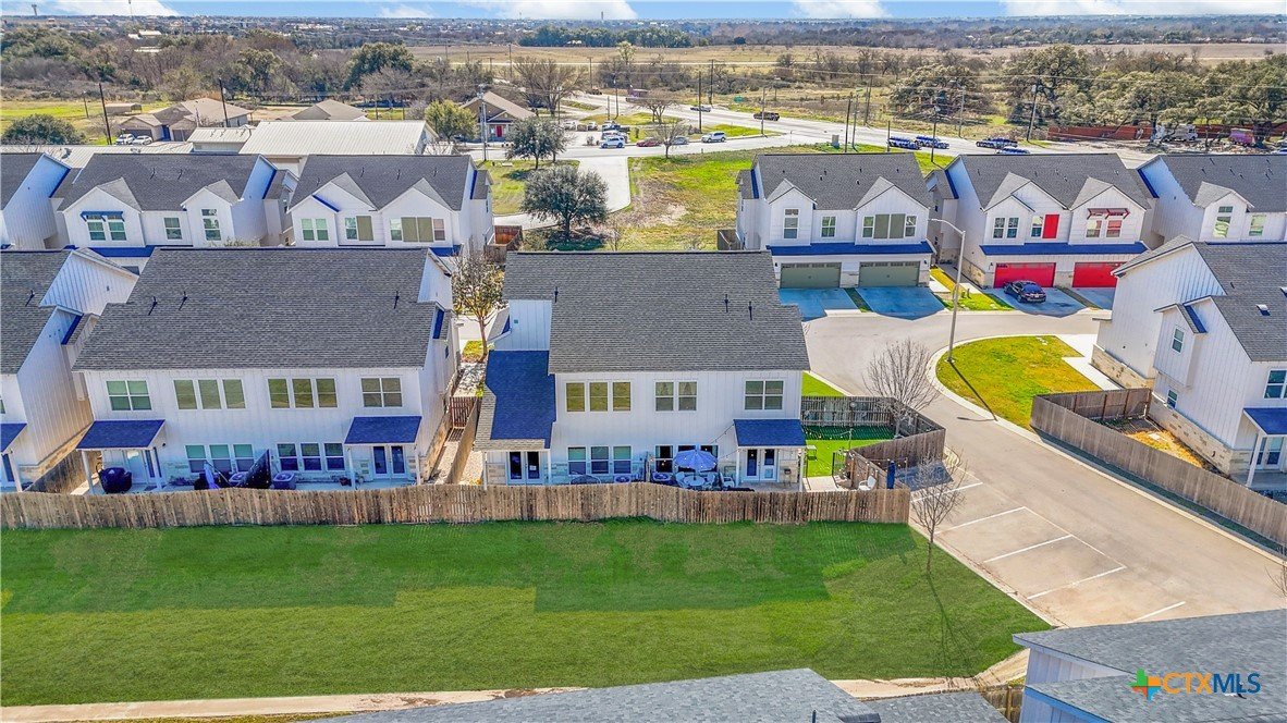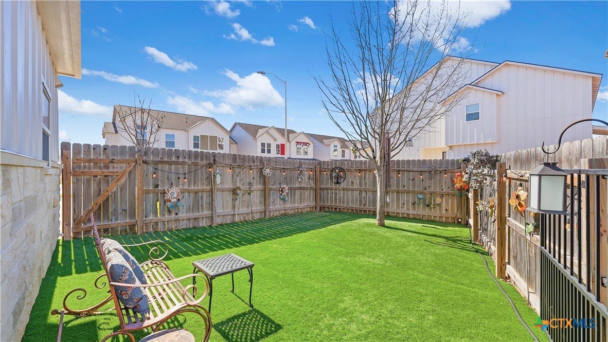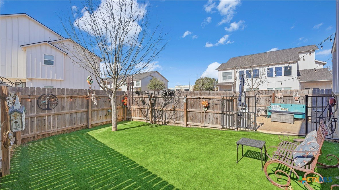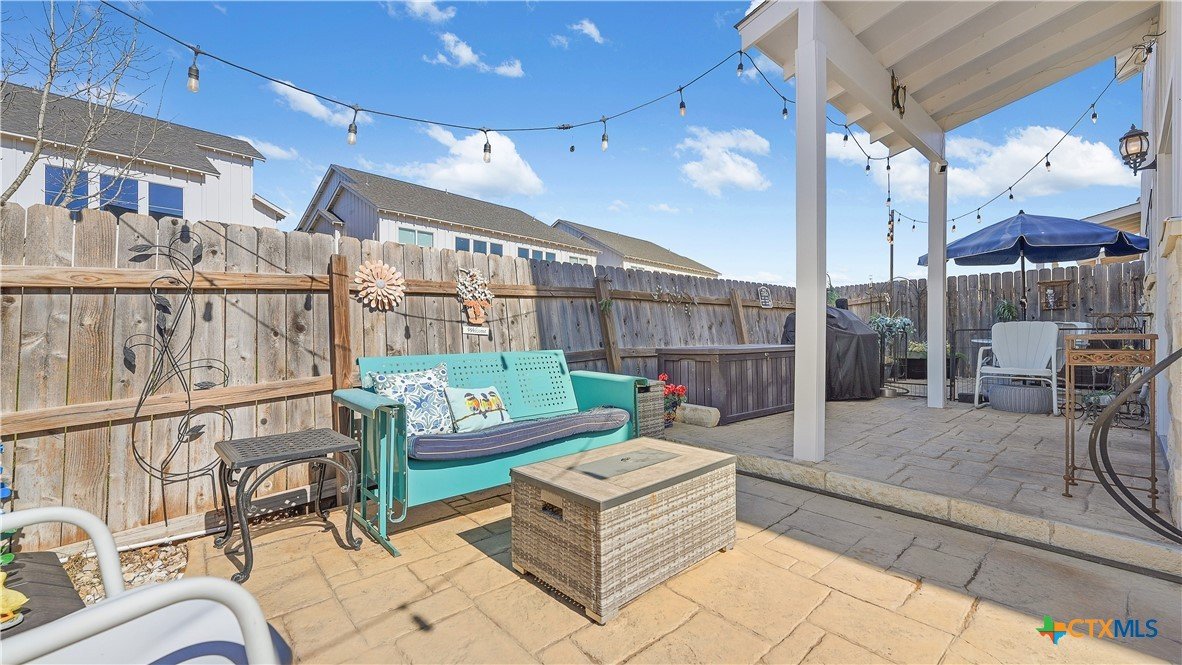 Welcome to Sapphire Place, where thoughtful upgrades, low-maintenance convenience, and the vibrant New Braunfels lifestyle come together in one beautifully maintained corner townhome. Perfectly positioned for an easy, lock-and-leave lifestyle, this home offers spacious open-concept living designed for both everyday comfort and relaxed entertaining. Nine-foot ceilings and abundant natural light enhance the airy feel of the main living areas, complemented by updated finishes, custom design touches, and seamless flow between the kitchen, dining, and living spaces. The kitchen serves as the heart of the home, featuring granite countertops, 42-inch cabinetry, a walk-in pantry, updated beadboard detailing at the island and backsplash, upgraded lighting enhances both style and functionality. A custom shiplap living room accent wall adds warmth and character, creating an inviting space to unwind. This home features luxury vinyl plank flooring, designer interior paint throughout, custom French door access, and upgraded cabinet hardware, creating a fresh, move-in-ready feel while enhancing both functionality and natural light. Additional improvements including a water softener, floored attic space for added storage, and HVAC ultraviolet air purification enhance comfort and efficiency. Step outside to a private backyard retreat designed for enjoyment without the maintenance. The extended stamped concrete patio, artificial turf lawn, wrapped porch posts, black metal fencing, and installed sprinkler and drip irrigation system create a functional and inviting outdoor space ideal for relaxing evenings or hosting friends. Custom exterior steps located just beyond the back patio leading to the gate provide direct access to additional guest parking, making entertaining easy and convenient. Located in the heart of New Braunfels, residents enjoy quick access to shopping, dining, the historic Gruene District, and commuter routes to San Antonio or Austin are all just minutes away.