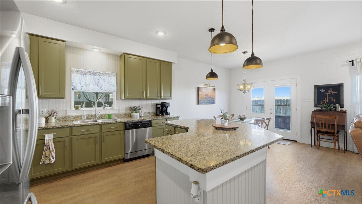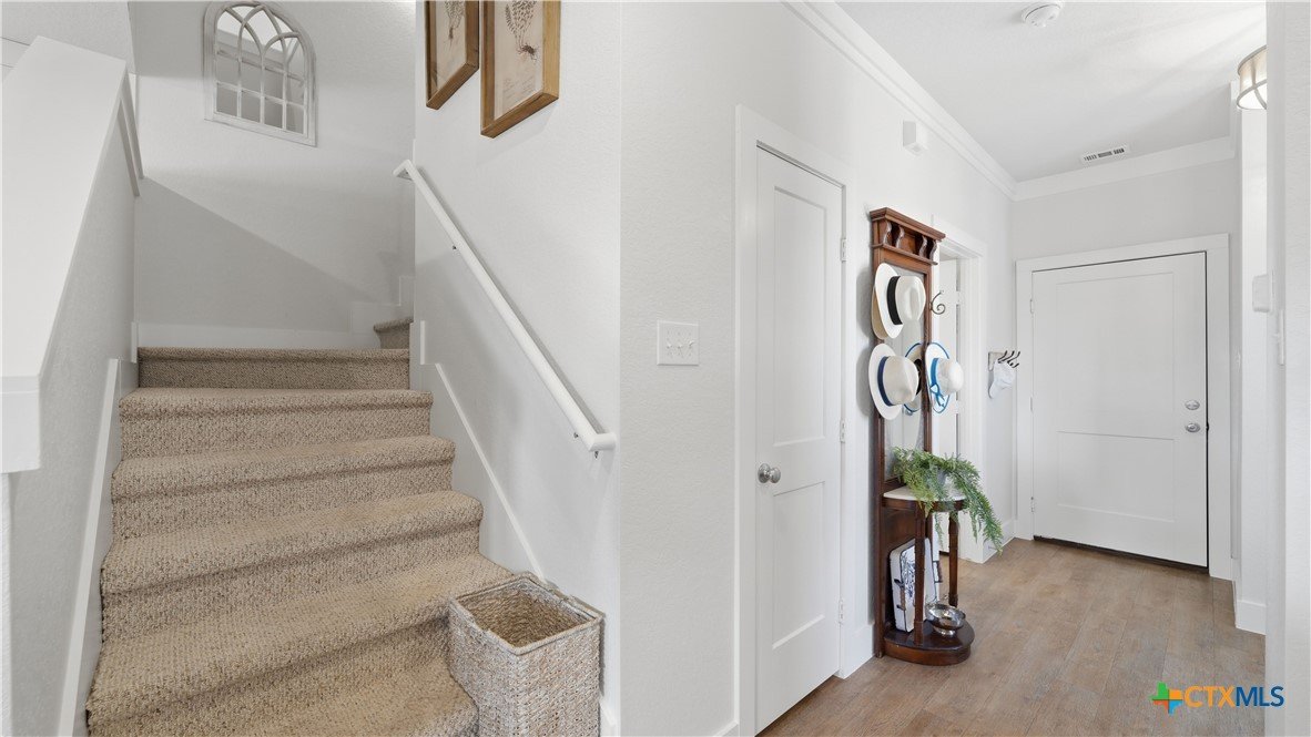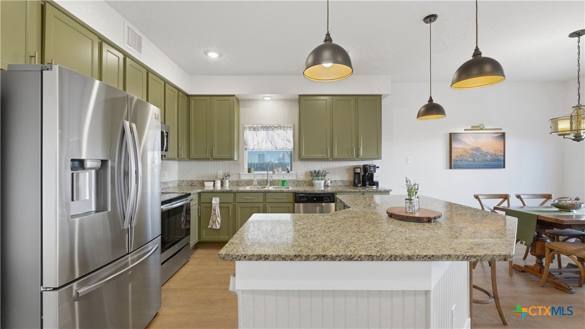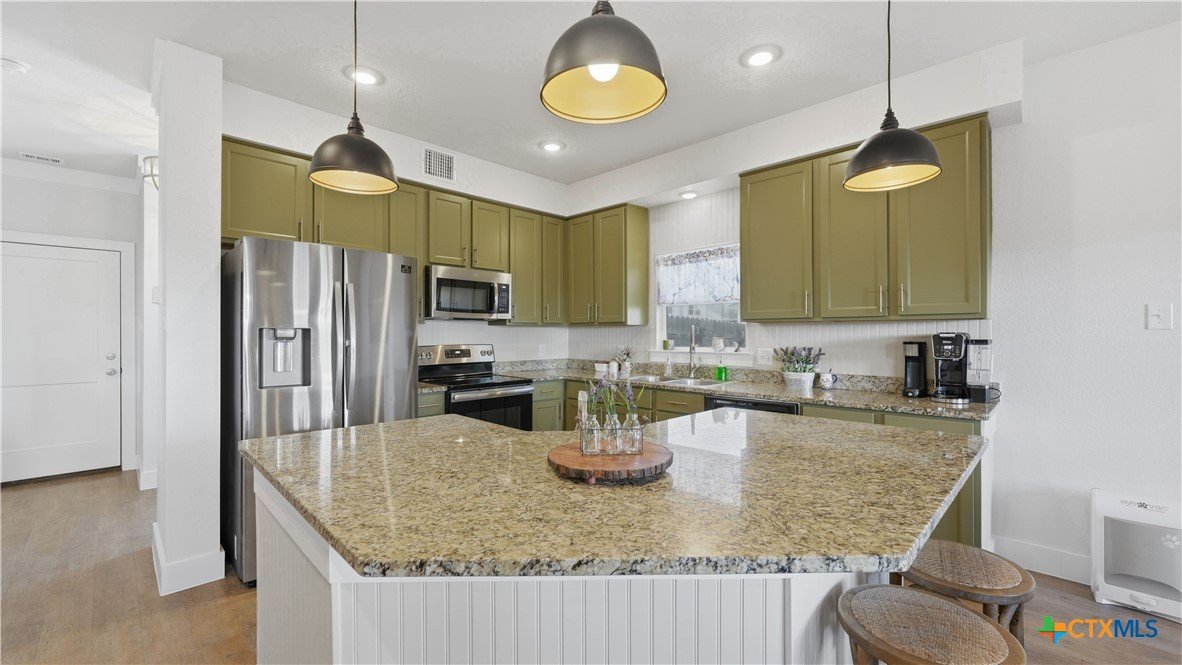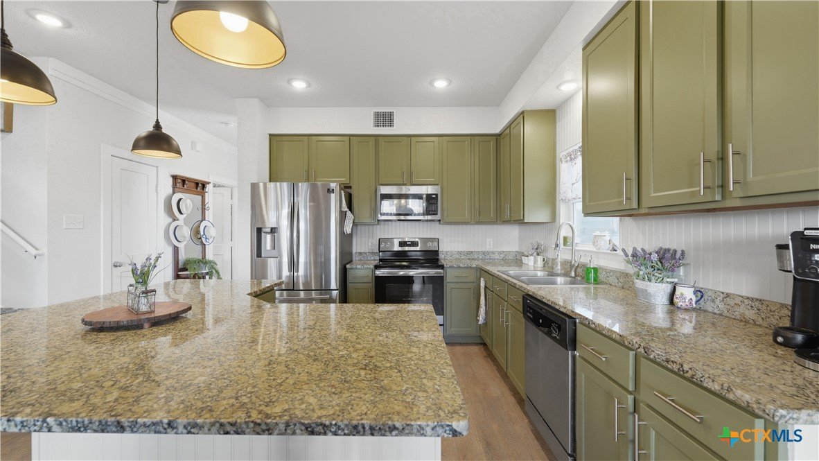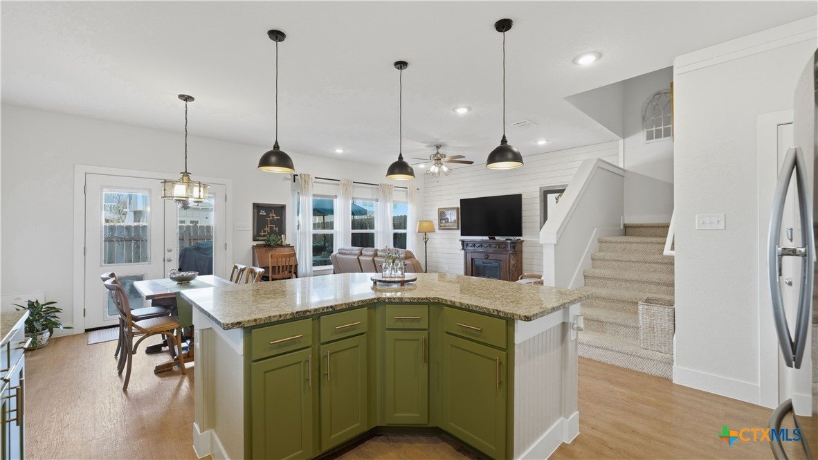 Welcome to Sapphire Place, where thoughtful upgrades, low-maintenance convenience, and the vibrant New Braunfels lifestyle come together in one beautifully maintained corner townhome. Perfectly positioned for an easy, lock-and-leave lifestyle, this home offers spacious open-concept living designed for both everyday comfort and relaxed entertaining. Nine-foot ceilings and abundant natural light enhance the airy feel of the main living areas, complemented by updated finishes, custom design touches, and seamless flow between the kitchen, dining, and living spaces. The kitchen serves as the heart of the home, featuring granite countertops, 42-inch cabinetry, a walk-in pantry, updated beadboard detailing at the island and backsplash, upgraded lighting enhances both style and functionality. A custom shiplap living room accent wall adds warmth and character, creating an inviting space to unwind. This home features luxury vinyl plank flooring, designer interior paint throughout, custom French door access, and upgraded cabinet hardware, creating a fresh, move-in-ready feel while enhancing both functionality and natural light. Additional improvements including a water softener, floored attic space for added storage, and HVAC ultraviolet air purification enhance comfort and efficiency. Step outside to a private backyard retreat designed for enjoyment without the maintenance. The extended stamped concrete patio, artificial turf lawn, wrapped porch posts, black metal fencing, and installed sprinkler and drip irrigation system create a functional and inviting outdoor space ideal for relaxing evenings or hosting friends. Custom exterior steps located just beyond the back patio leading to the gate provide direct access to additional guest parking, making entertaining easy and convenient. Located in the heart of New Braunfels, residents enjoy quick access to shopping, dining, the historic Gruene District, and commuter routes to San Antonio or Austin are all just minutes away.