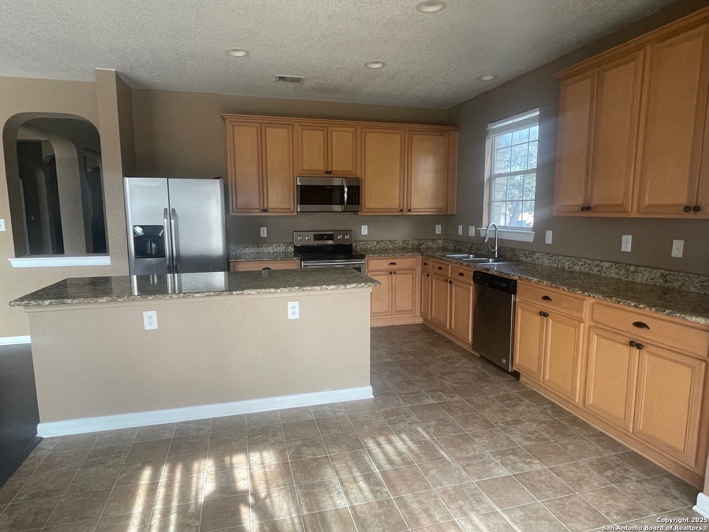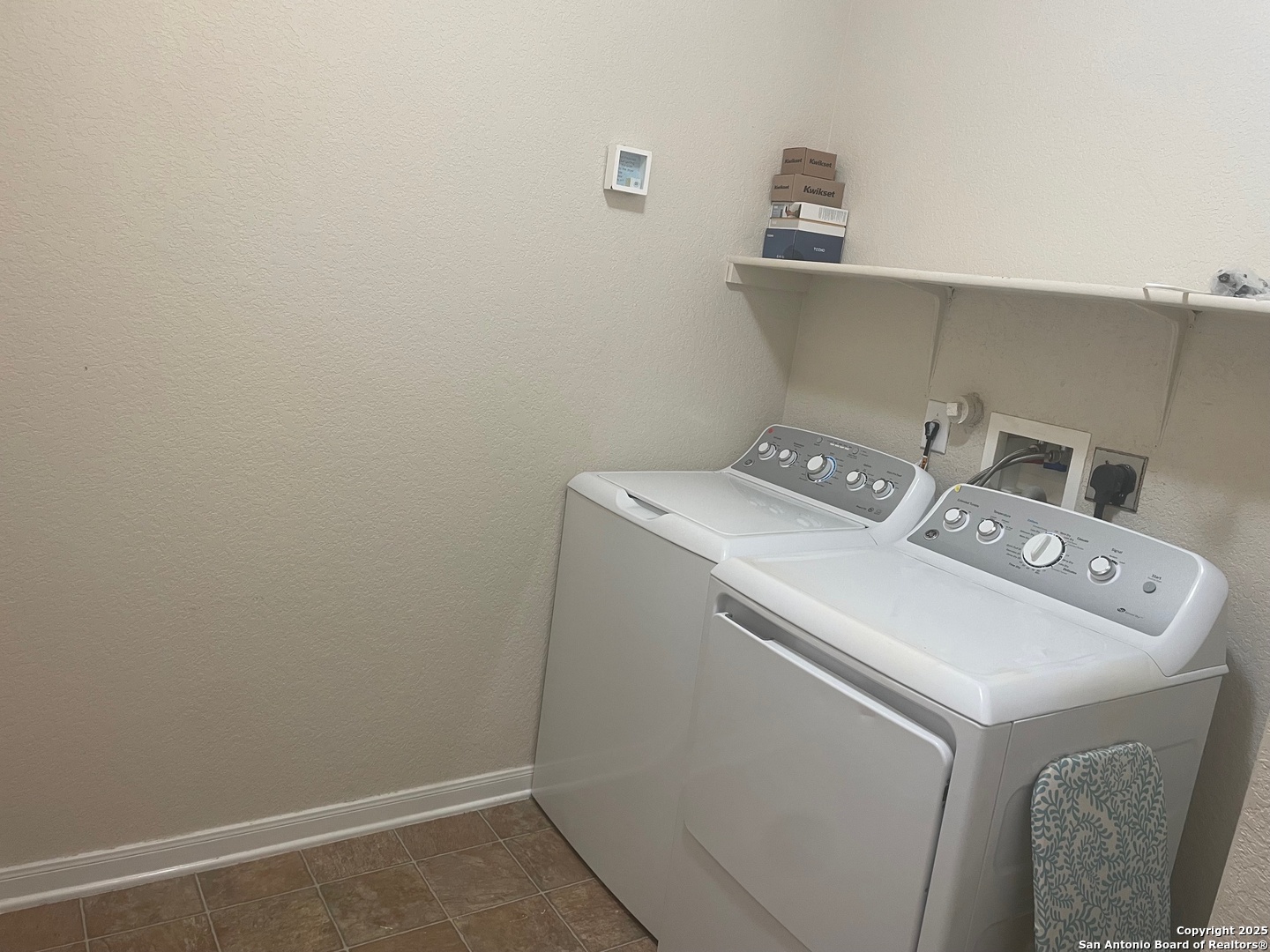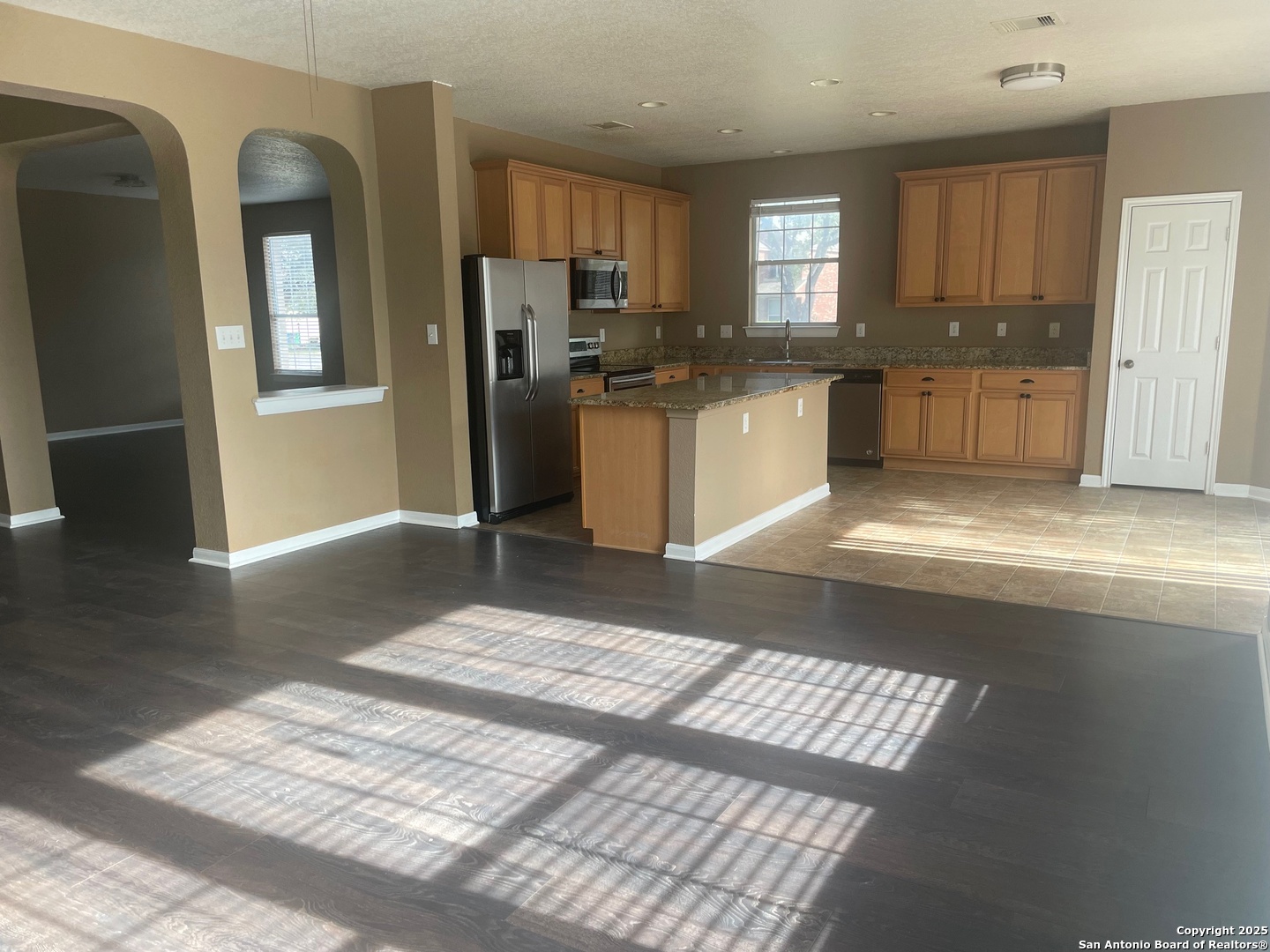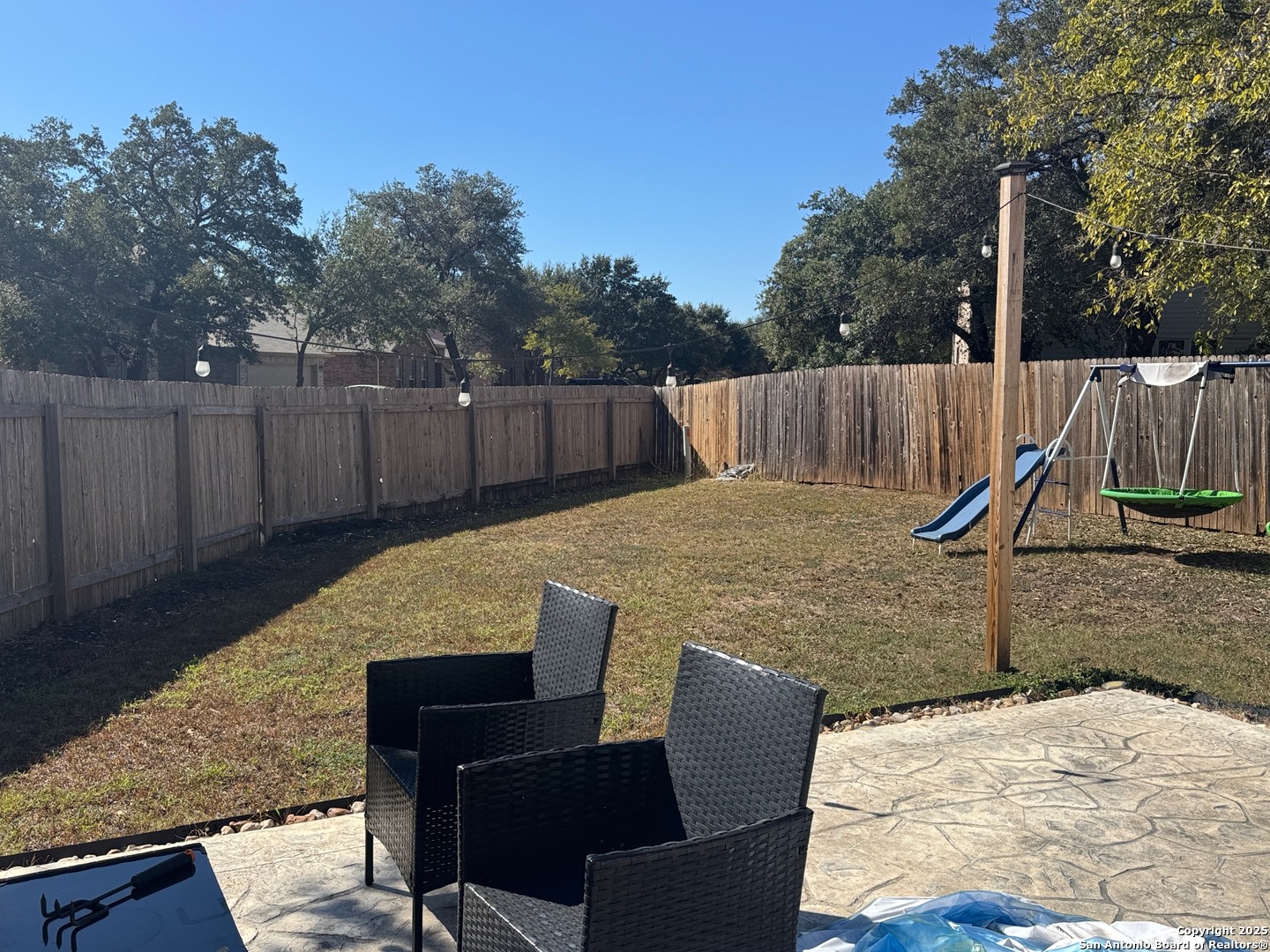 Beautifully updated single-story home on a quiet corner cul-de-sac lot in desirable Stage Run. This home features wood-look flooring throughout and fresh, neutral paint, giving it a clean and modern feel. The kitchen offers granite countertops, 42" cabinets, and comes equipped with a refrigerator. A washer and dryer are also included. The spacious primary suite features dual walk-in closets, providing excellent storage. Enjoy a large backyard with a flagstone patio and privacy fence-perfect for relaxing or entertaining. Neighborhood amenities include a fenced dog park, community pool, playground, and clubhouse. Located minutes from I-10, The Rim, La Cantera, and top-rated schools-this home delivers convenience and comfort in a fantastic location.
