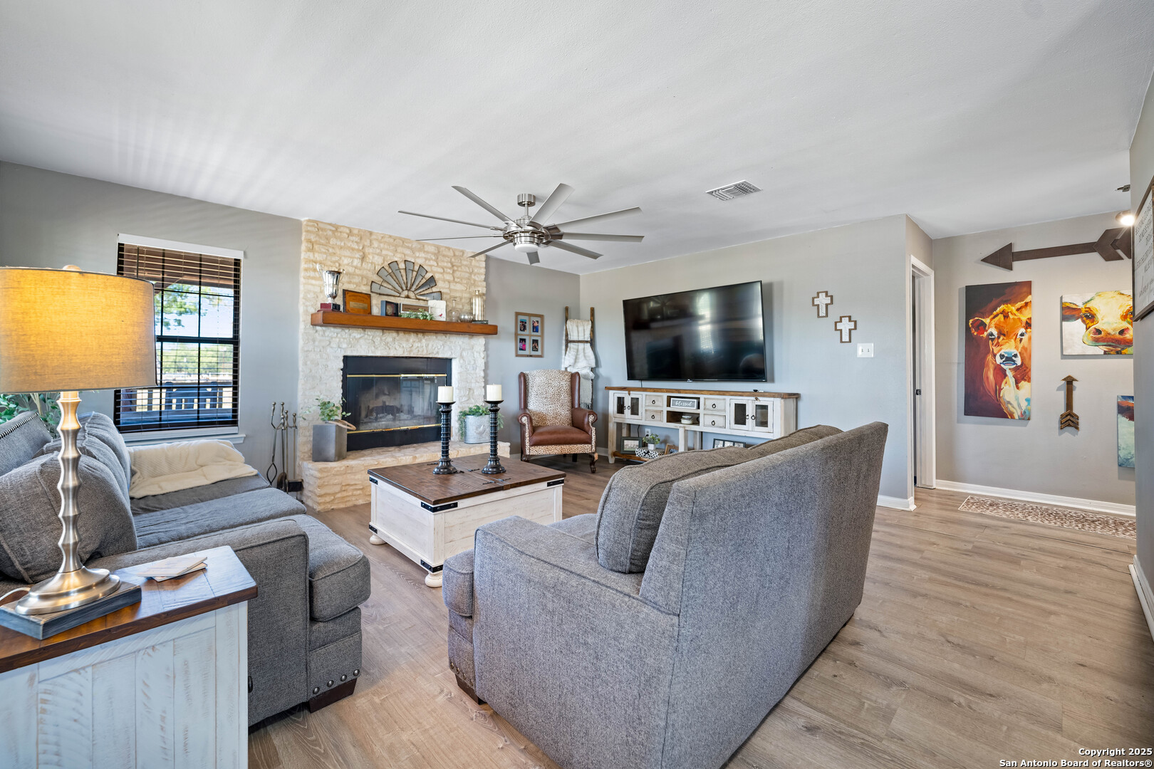 Enjoy peaceful country living on 12.5 ag-exempt acres in La Vernia ISD! This well-maintained property features a 1,727 sq.ft. two-story home with 3 bedrooms, 2 bathrooms, and a wrap-around covered porch, along with a 1,200 sq.ft. detached garage and workshop. Recent upgrades include a new AC unit (2022) and a new septic system (2025). The acreage is cross fenced with a front pasture and approximately 8 acres in back, ideal for livestock, horses, or recreational use. A 1,200 sq.ft. barn with cattle pens, squ