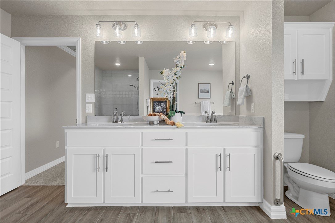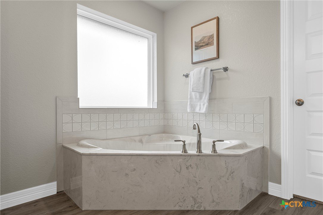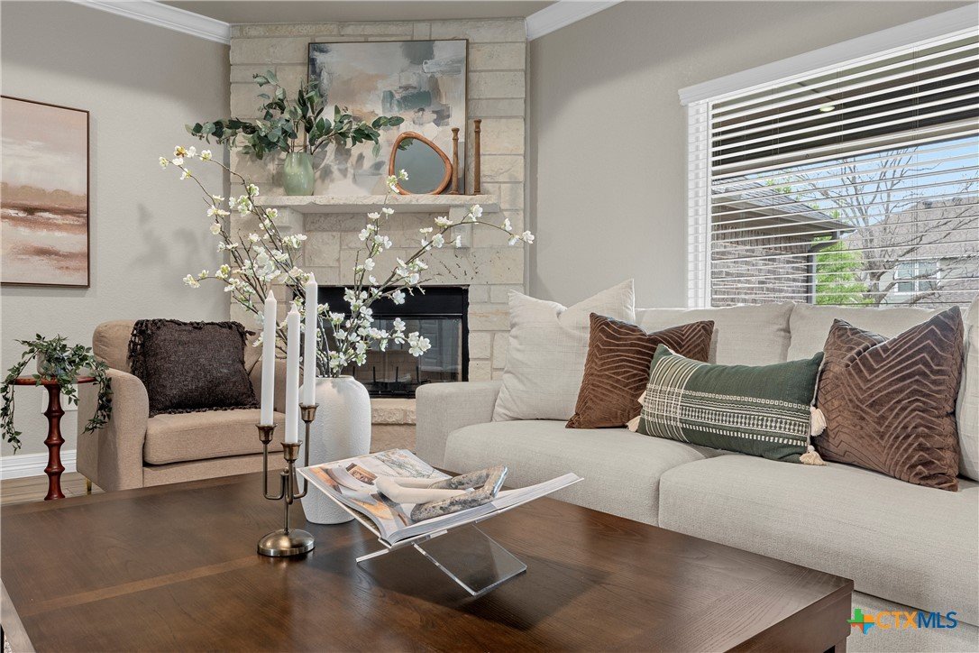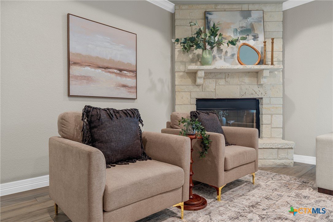 Warriors Legacy, Nolanville! Welcome to this beautifully maintained single-owner home located in the desirable Warriors Legacy neighborhood of Nolanville. Thoughtfully designed and meticulously cared for, this property offers both comfort and functionality with numerous upgrades throughout. Step inside to discover elegant tile flooring that flows seamlessly through the main living areas, providing durability and easy maintenance. The spacious kitchen is a standout feature, equipped with custom pull-out shelving in nearly all base cabinets—making organization effortless and ensuring everything in the lower cabinets is easily visible and accessible. The kitchen also features a stunning apron-front sink and an oversized walk-in pantry, offering exceptional storage and convenience for everyday living. The primary suite provides a relaxing retreat with a spa-inspired bathroom that includes a curb-less, flush walk-in shower designed to eliminate tripping hazards while also making cleaning simple and efficient. A luxurious garden tub adds the perfect place to unwind at the end of the day. The living room features a charming wood-burning fireplace that creates a warm and inviting atmosphere for gatherings or quiet evenings at home. Outside, the property continues to impress with beautifully manicured front and back yards, showcasing pride of ownership and providing attractive outdoor space for relaxation or entertaining. This well-maintained home offers the perfect combination of thoughtful upgrades, practical design, and welcoming charm in one of Nolanville’s most sought-after neighborhoods.