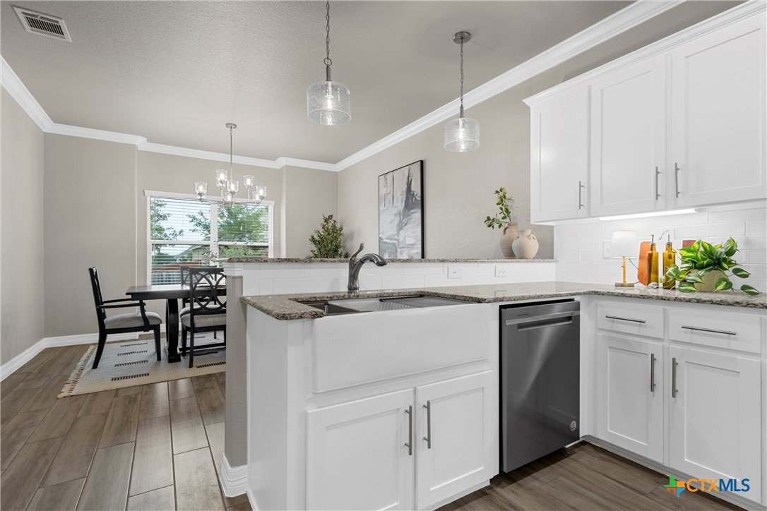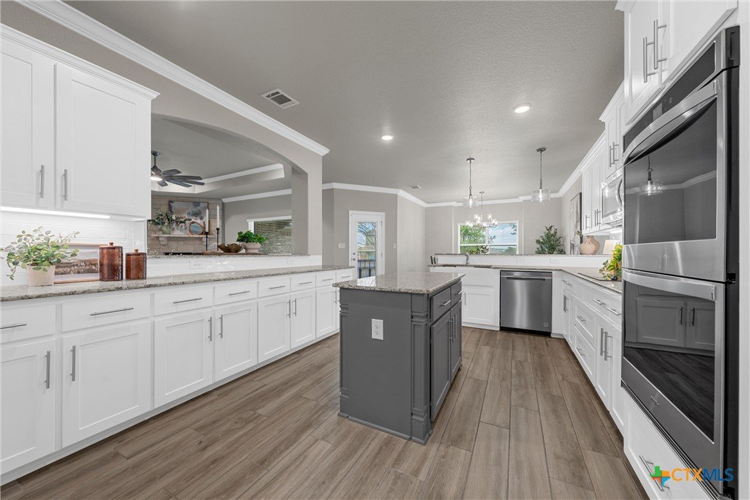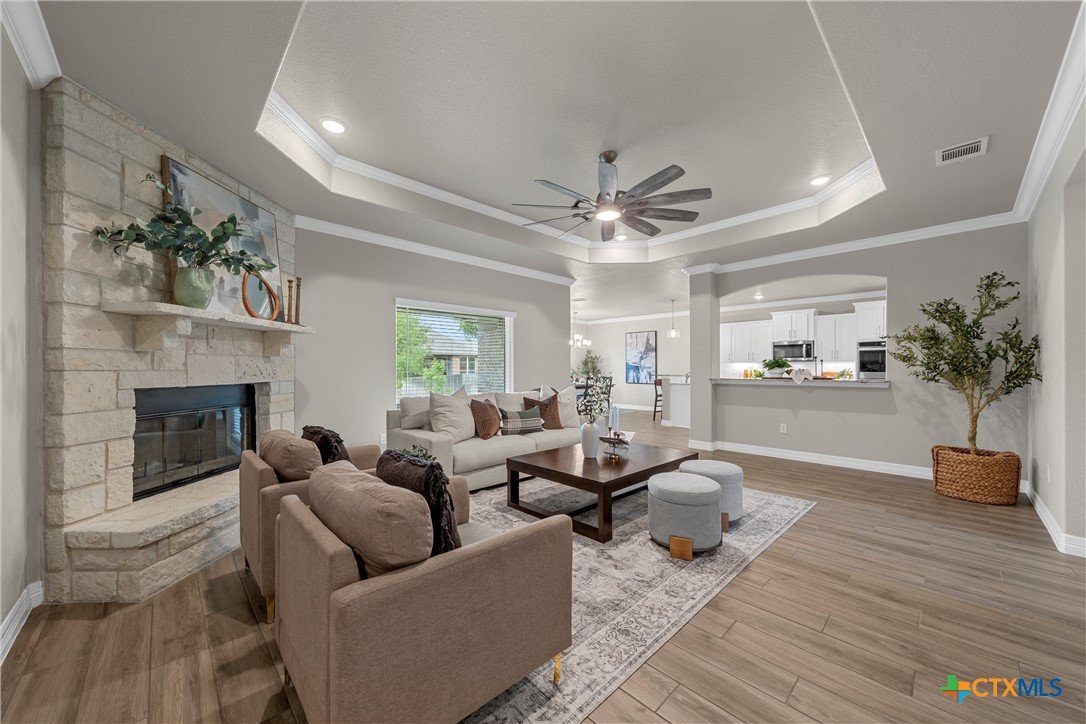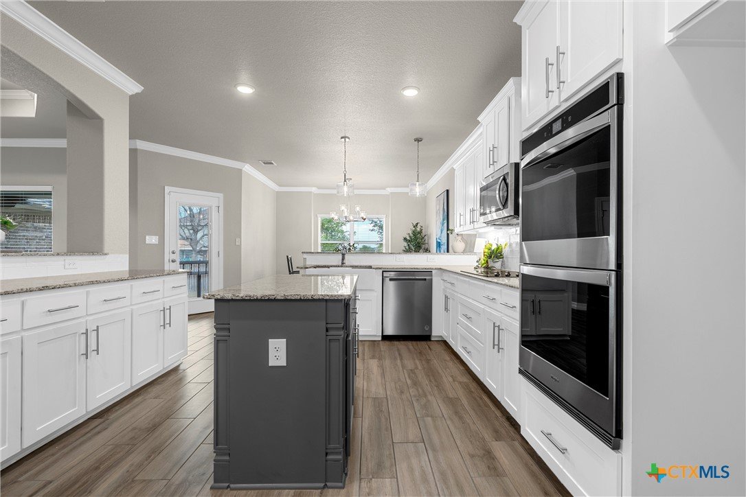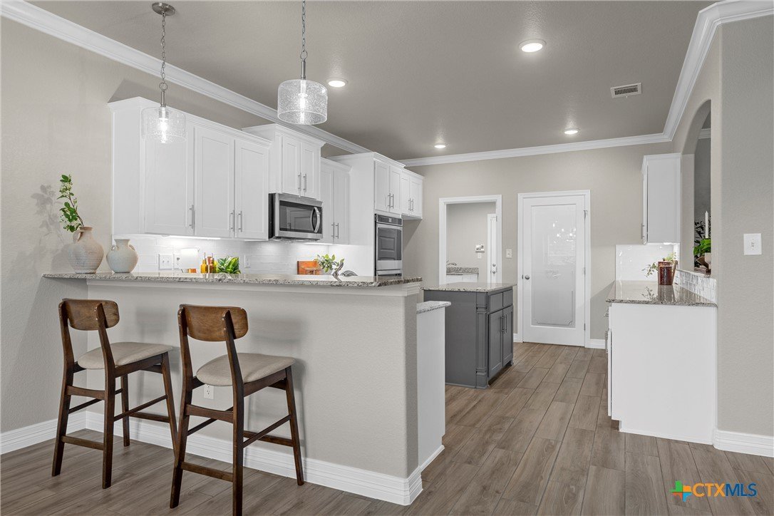 Warriors Legacy, Nolanville! Welcome to this beautifully maintained single-owner home located in the desirable Warriors Legacy neighborhood of Nolanville. Thoughtfully designed and meticulously cared for, this property offers both comfort and functionality with numerous upgrades throughout. Step inside to discover elegant tile flooring that flows seamlessly through the main living areas, providing durability and easy maintenance. The spacious kitchen is a standout feature, equipped with custom pull-out shelving in nearly all base cabinets—making organization effortless and ensuring everything in the lower cabinets is easily visible and accessible. The kitchen also features a stunning apron-front sink and an oversized walk-in pantry, offering exceptional storage and convenience for everyday living. The primary suite provides a relaxing retreat with a spa-inspired bathroom that includes a curb-less, flush walk-in shower designed to eliminate tripping hazards while also making cleaning simple and efficient. A luxurious garden tub adds the perfect place to unwind at the end of the day. The living room features a charming wood-burning fireplace that creates a warm and inviting atmosphere for gatherings or quiet evenings at home. Outside, the property continues to impress with beautifully manicured front and back yards, showcasing pride of ownership and providing attractive outdoor space for relaxation or entertaining. This well-maintained home offers the perfect combination of thoughtful upgrades, practical design, and welcoming charm in one of Nolanville’s most sought-after neighborhoods.