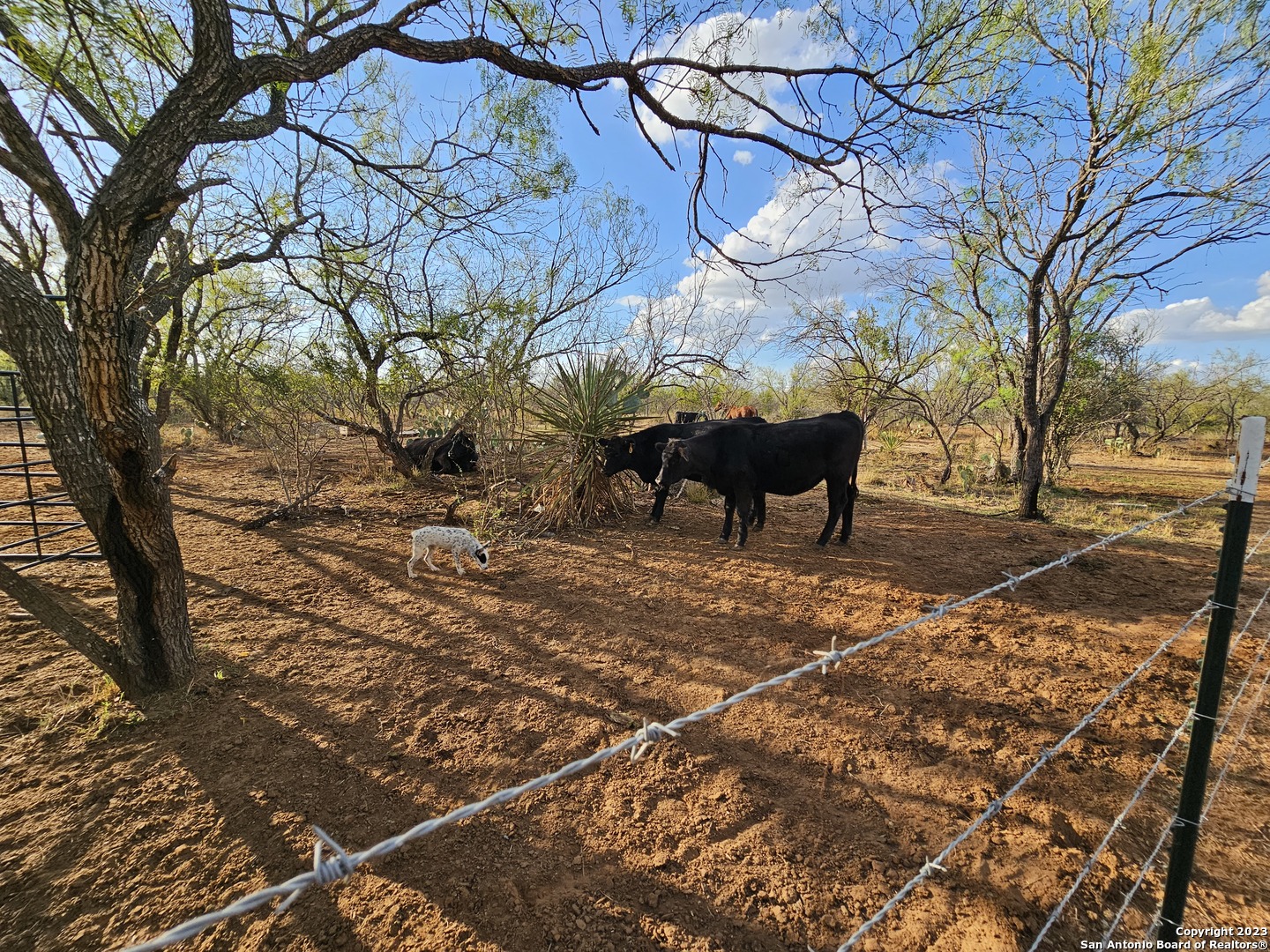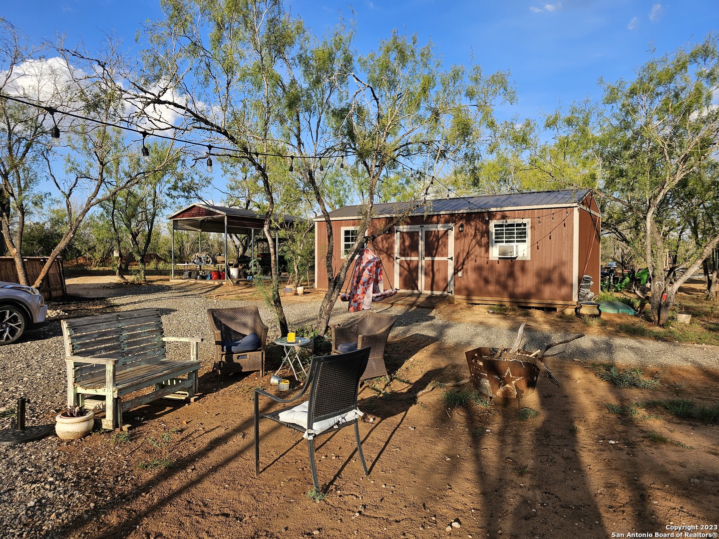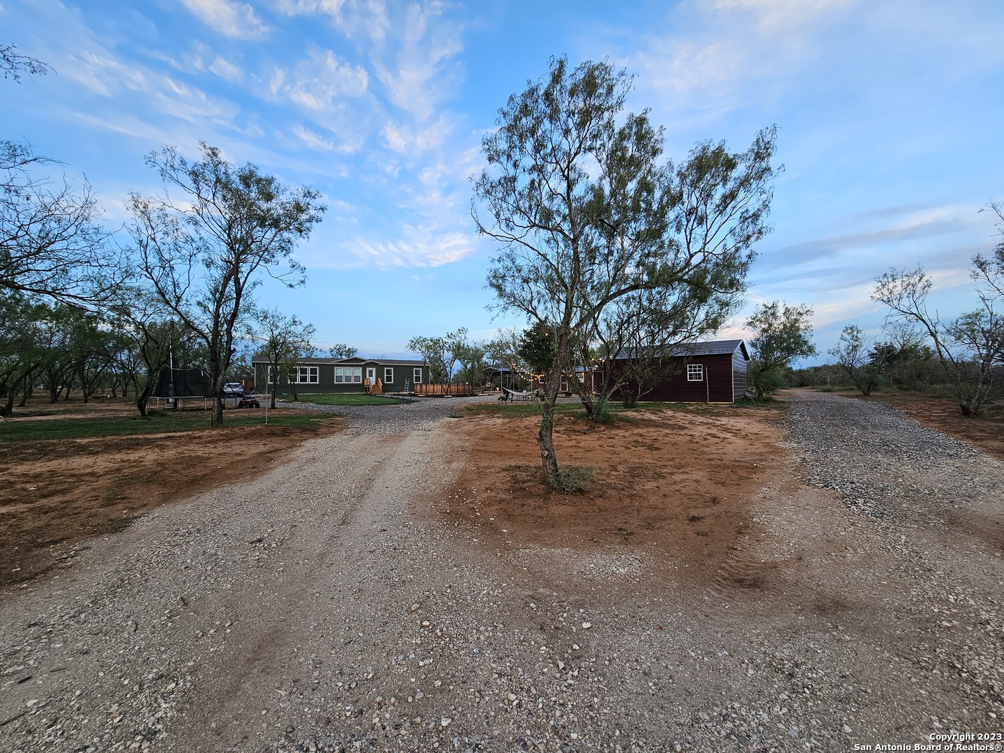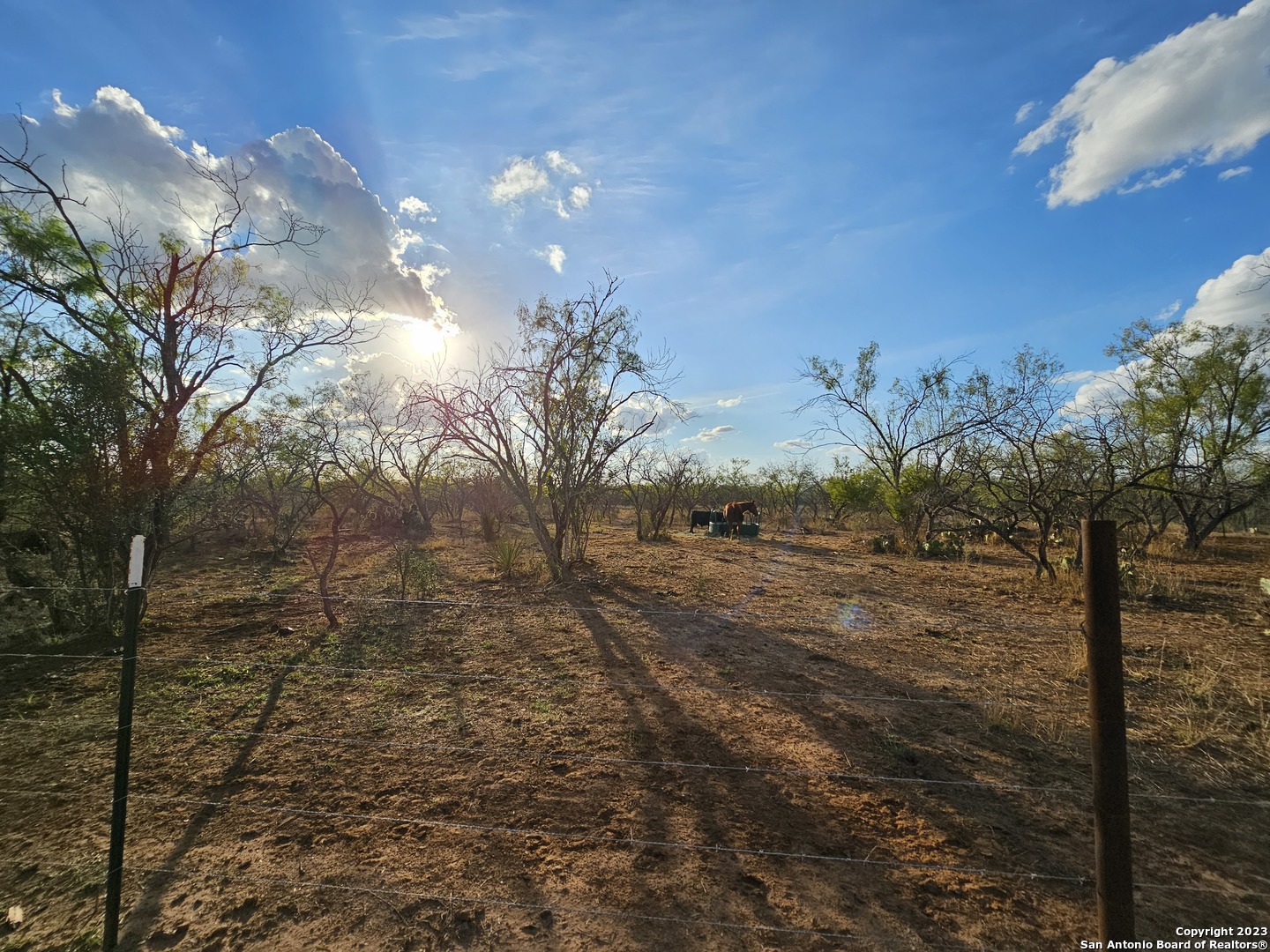 Welcome to The Haven, a beautifully crafted modular ranch home by Oak Creek Homes, nestled on 15 private, unrestricted acres of pure Texas tranquility. Located between Pleasanton and Floresville; this spacious, thoughtfully designed 3-bedroom, 2-bath home offers the best of both worlds- peaceful country living with easy access to everyday conveniences. Step inside to an open-concept layout featuring a large kitchen island, a custom brick backsplash, and electric fireplace that adds warmth and character to the living space. Cathedral ceilings in the living room and primary suite create an airy, expansive feel. Home includes a multi-purpose flex room and a generously sized utility room with abundant storage. Every detail of The Haven has been designed for convenience, style, and peaceful country living. Just steps away, you'll find an incredible 600 sq ft rustic man-cave. Perfect for entertaining or enjoying laid-back weekends with family. Comes fully equipped with a three-compartment sink, a mini-split system to handle Texas weather, and ample outlets throughout. Property offers added versatility with two fully equipped portable buildings! One is as a 300 sq ft functional storage space complete with washer and dryer connections, and its own dedicated water heater. The second is a well-insulated 240sq ft unit, sink connections included, formerly used for meat processing. A rare find with flexible utility and built-in infrastructure!" The property is fully fenced, Ag Exempt, and thoughtfully divided into two pastures. Outdoor enthusiasts will love the on-site hunting and recreation opportunities-right at home. Enjoy dove hunting from your front yard, explore the back acreage prepped for deer season, and take advantage of year-round hog hunting. A seasonal creek runs through the property. Create your own private pond oasis. Whether you're looking for a homestead, hunting, or simply soaking up the quiet, The Haven offers a lifestyle that's hard to beat.