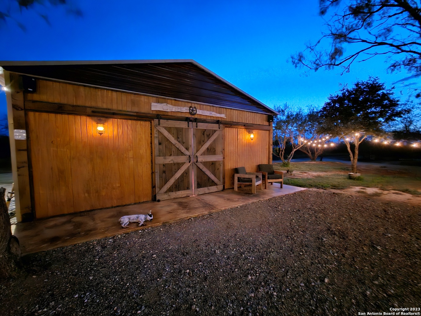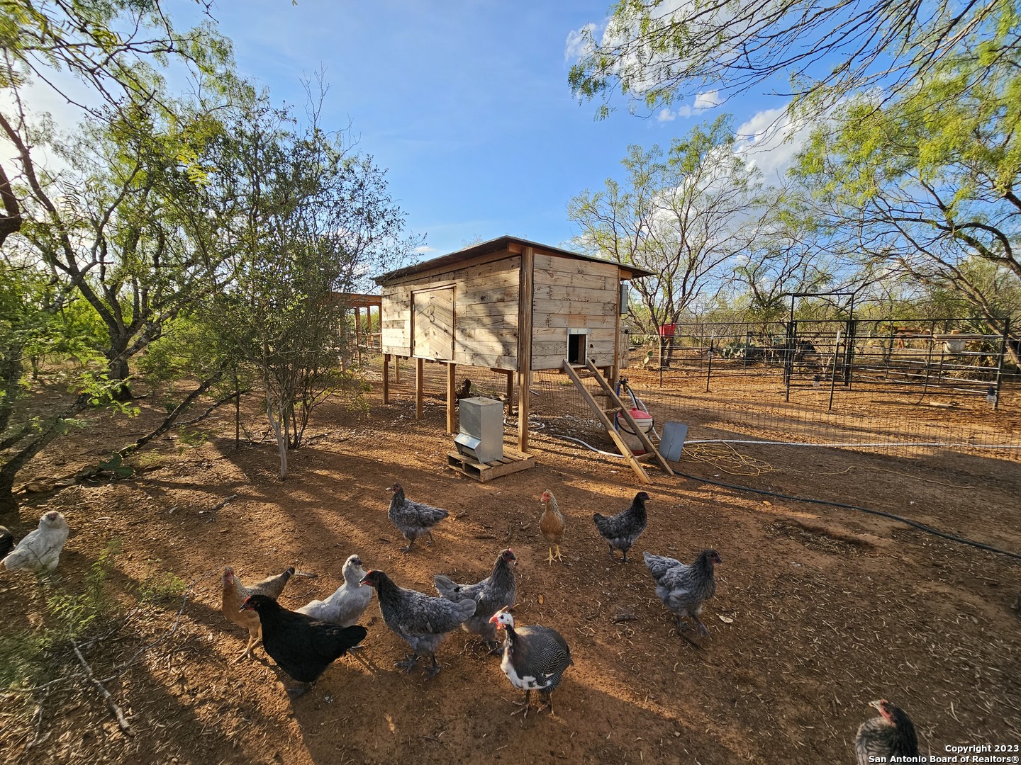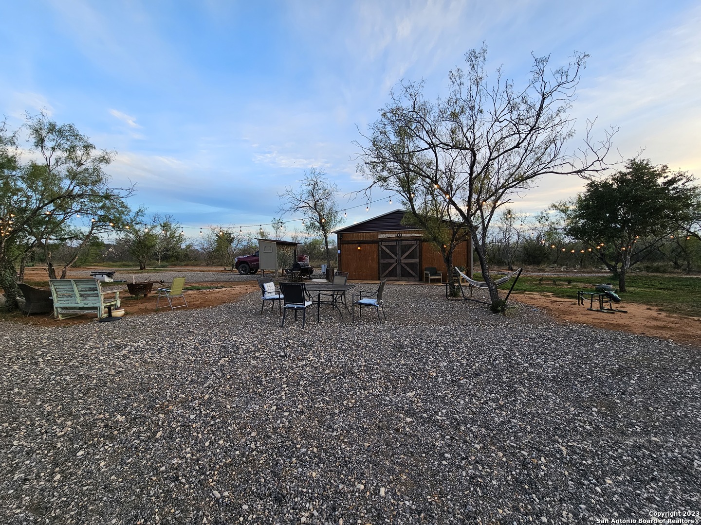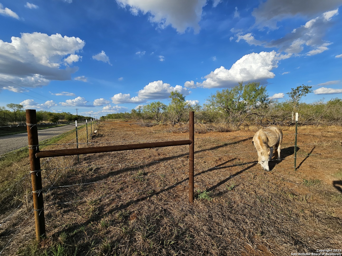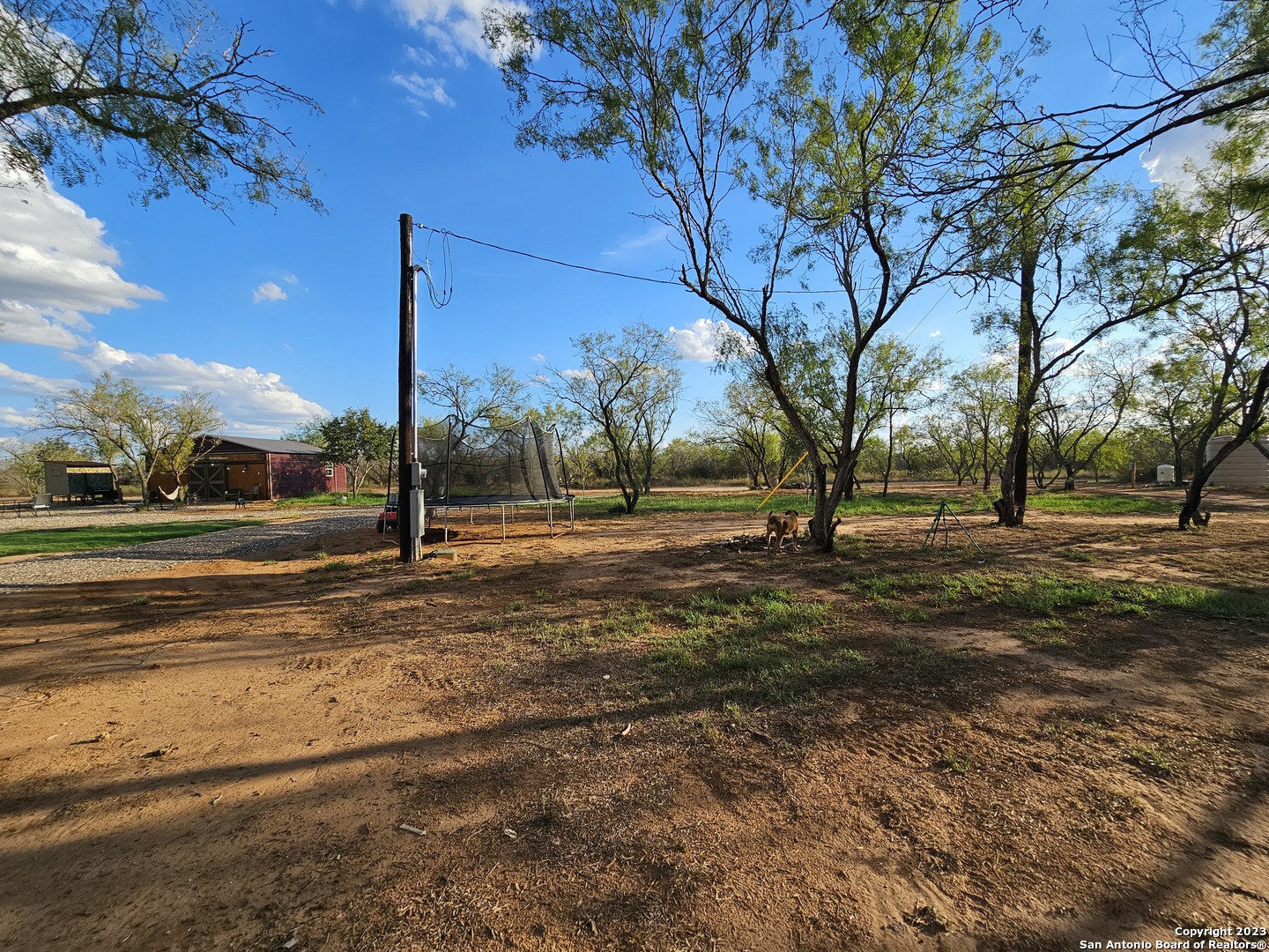 Welcome to The Haven, a beautifully crafted modular ranch home by Oak Creek Homes, nestled on 15 private, unrestricted acres of pure Texas tranquility. Located between Pleasanton and Floresville; this spacious, thoughtfully designed 3-bedroom, 2-bath home offers the best of both worlds- peaceful country living with easy access to everyday conveniences. Step inside to an open-concept layout featuring a large kitchen island, a custom brick backsplash, and electric fireplace that adds warmth and character to the living space. Cathedral ceilings in the living room and primary suite create an airy, expansive feel. Home includes a multi-purpose flex room and a generously sized utility room with abundant storage. Every detail of The Haven has been designed for convenience, style, and peaceful country living. Just steps away, you'll find an incredible 600 sq ft rustic man-cave. Perfect for entertaining or enjoying laid-back weekends with family. Comes fully equipped with a three-compartment sink, a mini-split system to handle Texas weather, and ample outlets throughout. Property offers added versatility with two fully equipped portable buildings! One is as a 300 sq ft functional storage space complete with washer and dryer connections, and its own dedicated water heater. The second is a well-insulated 240sq ft unit, sink connections included, formerly used for meat processing. A rare find with flexible utility and built-in infrastructure!" The property is fully fenced, Ag Exempt, and thoughtfully divided into two pastures. Outdoor enthusiasts will love the on-site hunting and recreation opportunities-right at home. Enjoy dove hunting from your front yard, explore the back acreage prepped for deer season, and take advantage of year-round hog hunting. A seasonal creek runs through the property. Create your own private pond oasis. Whether you're looking for a homestead, hunting, or simply soaking up the quiet, The Haven offers a lifestyle that's hard to beat.
