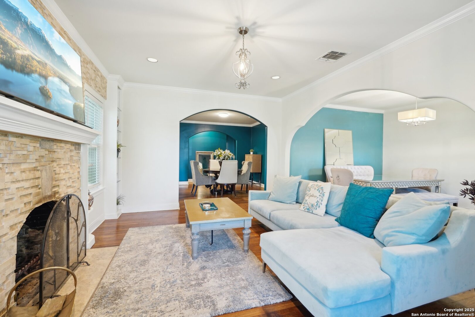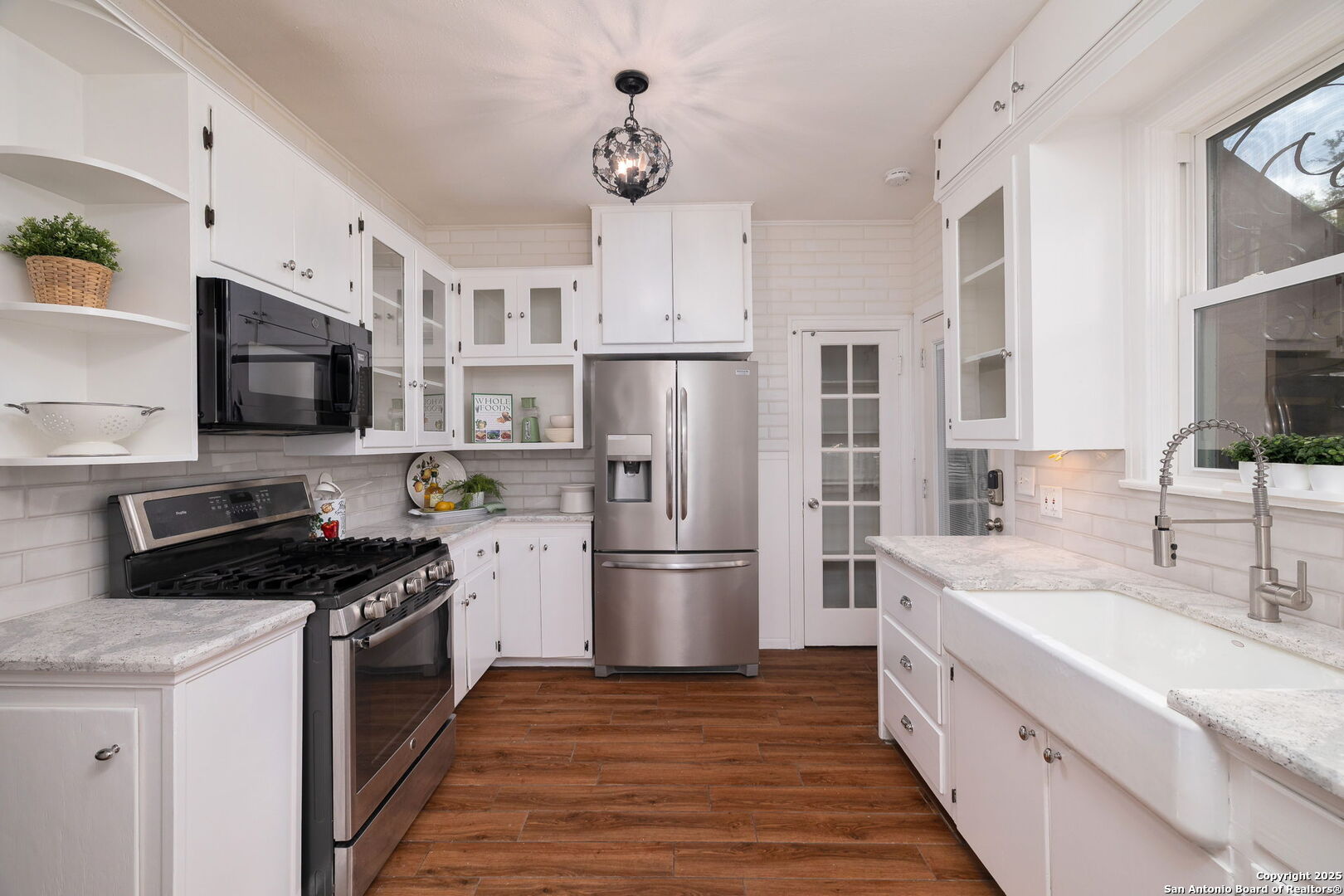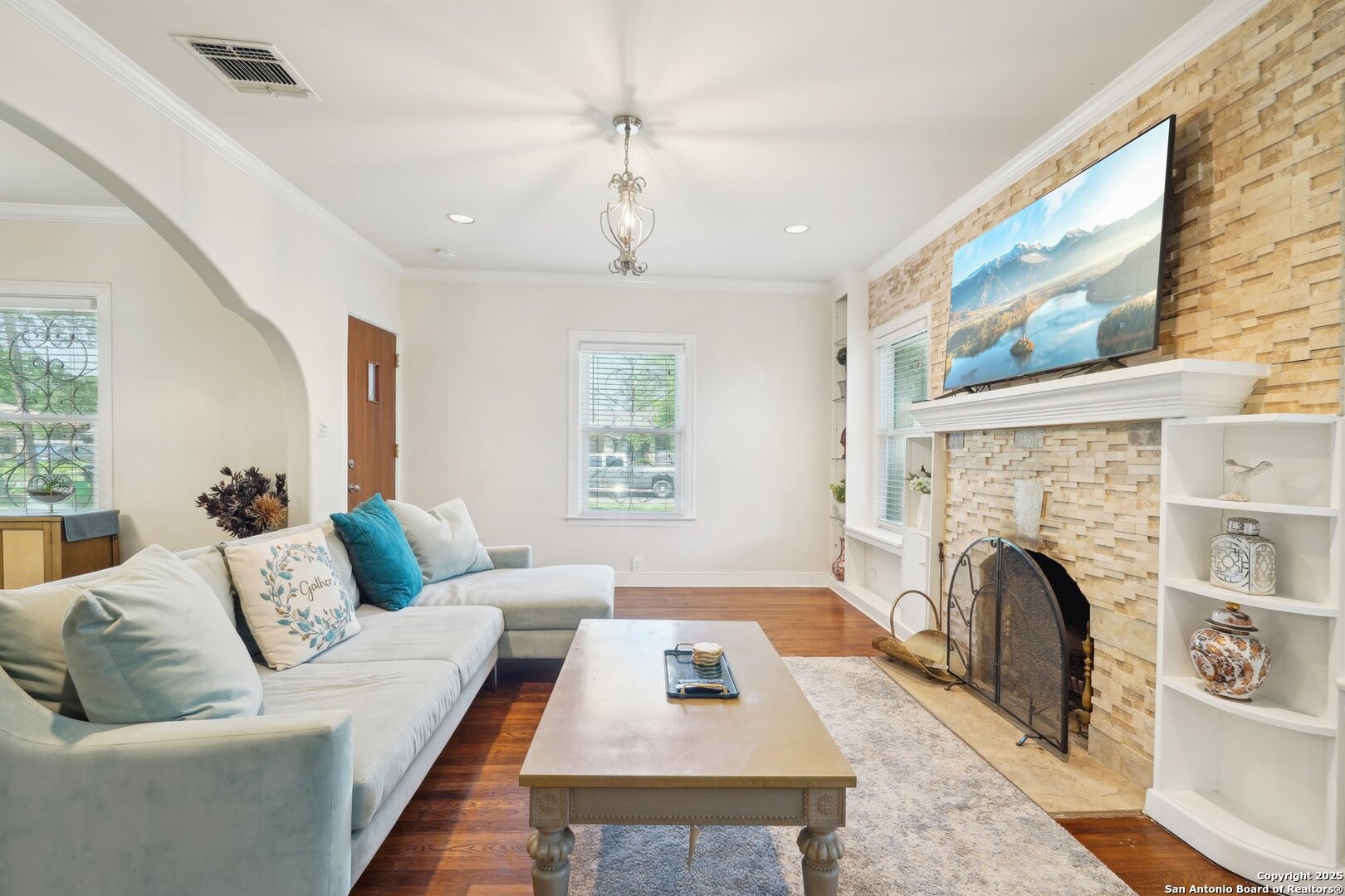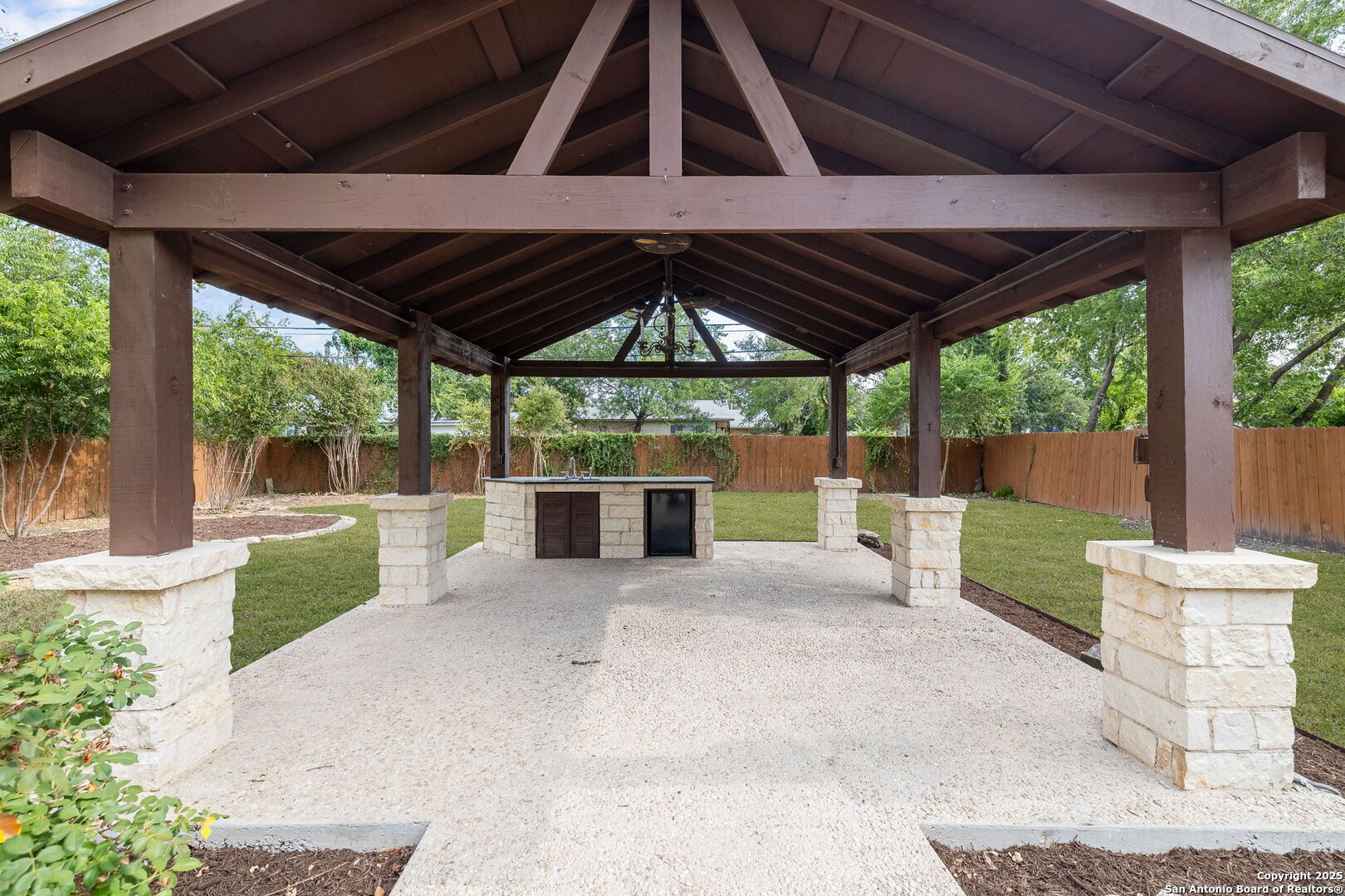 This beauty is back and better than ever! Taken off the market for a well deserved glow up, this charming 3 bedroom, 2 bath home in sought after Olmos Park Historic neighborhood is now move in ready & sparkling with upgrades such as fresh interior & exterior paint, freshly painted cabinets, stylish new backsplash in the kitchen and thoughtfully landscaped front & back yards. Step inside to find a flexible and spacious layout featuring two living areas, a cozy fireplace, & a flex room perfect for a home office, gym, or playroom. The home comes equipped with a refrigerator, washer & dryer. Enjoy modern & eco friendly conveniences like solar panels & an electric vehicle charger, making this home as efficient as it is charming. When it's time to entertain, head out back to your oversized .26 acre lot, where a custom built pergola, expansive patio equipped with an outdoor kitchen await you. Dont miss out on this total package home with its stylish, sustainable upgrades in a neighborhood full of character and history!