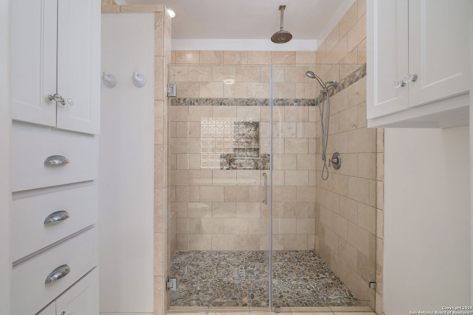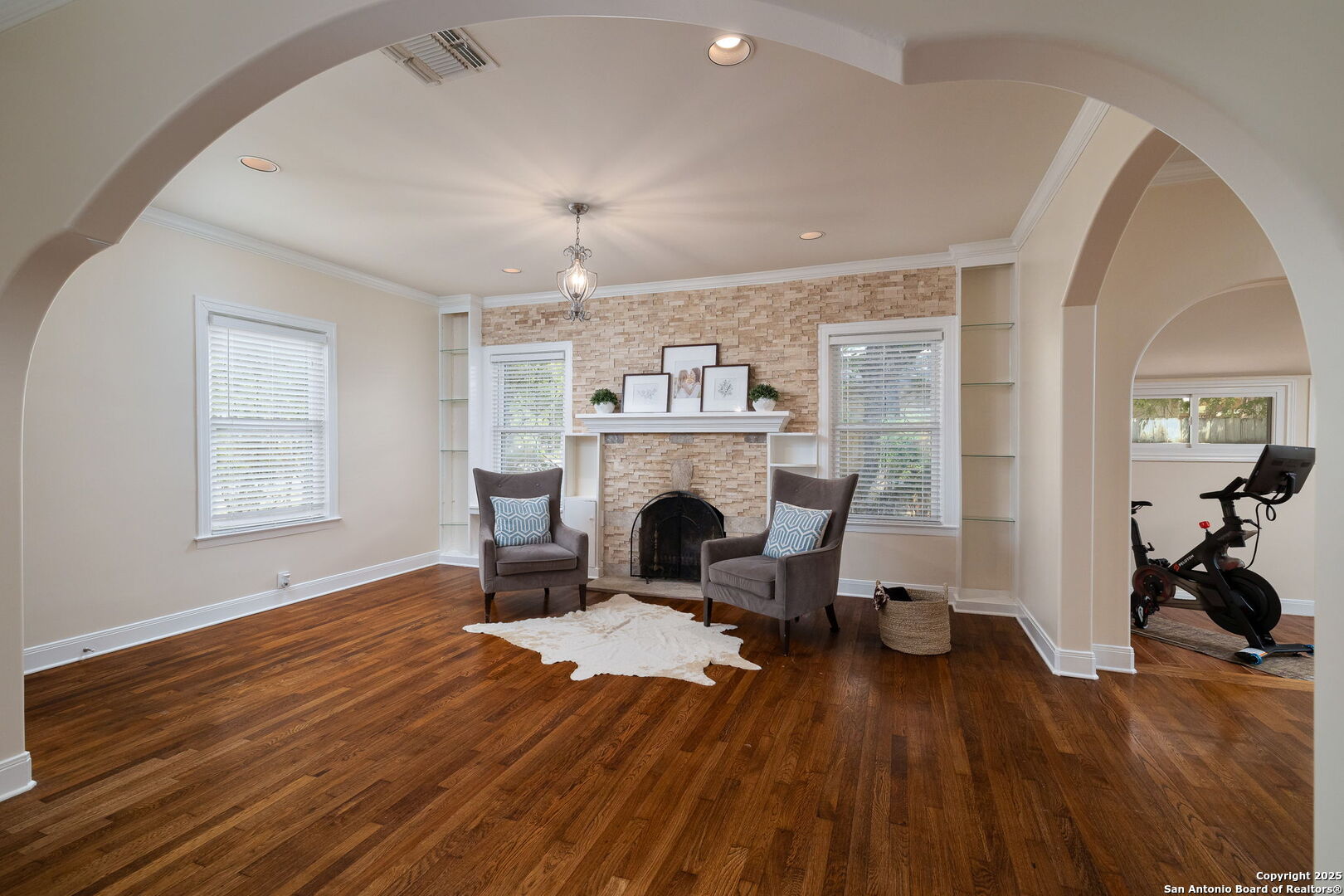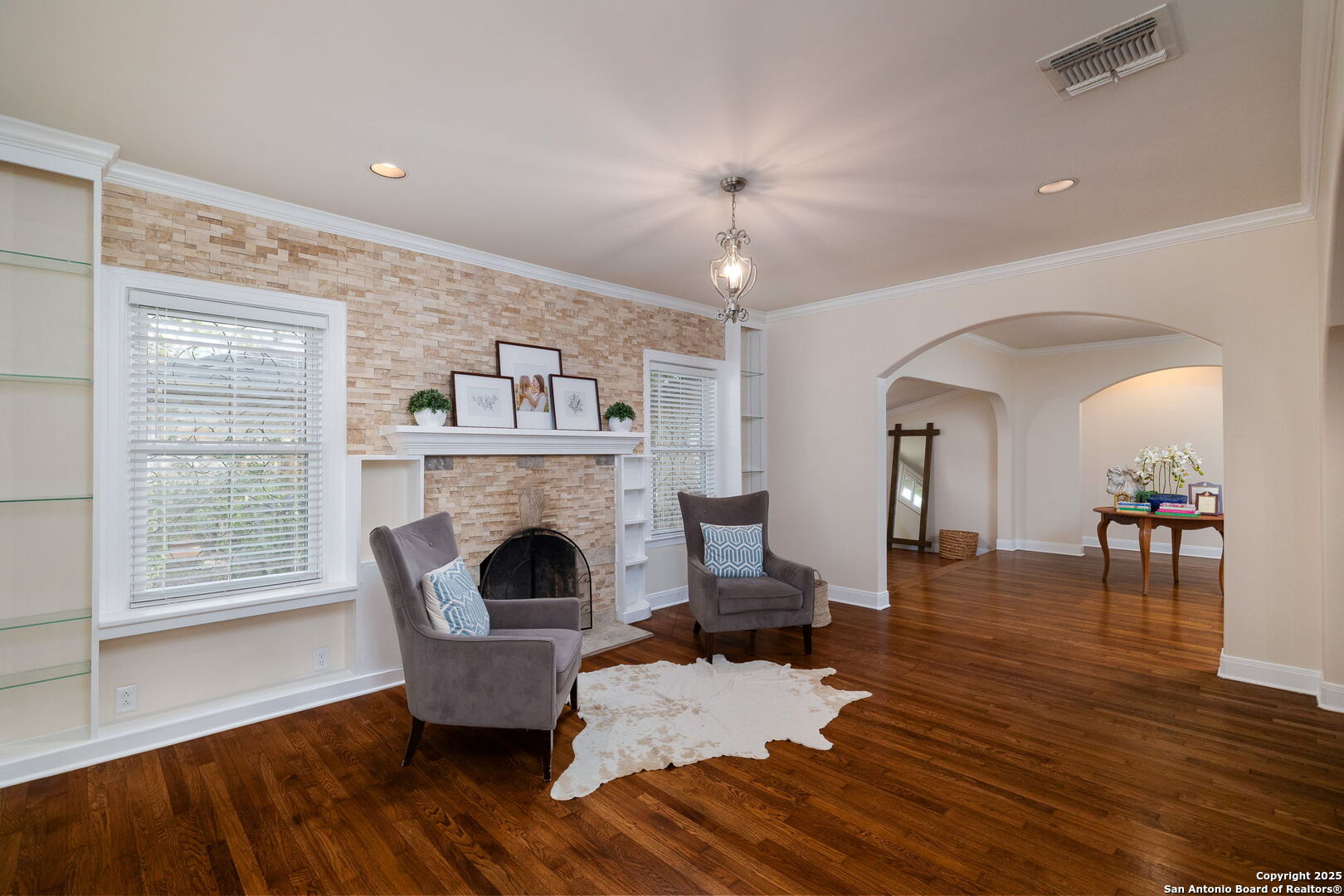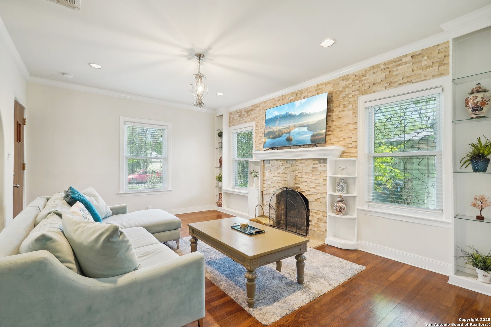 This beauty is back and better than ever! Taken off the market for a well deserved glow up, this charming 3 bedroom, 2 bath home in sought after Olmos Park Historic neighborhood is now move in ready & sparkling with upgrades such as fresh interior & exterior paint, freshly painted cabinets, stylish new backsplash in the kitchen and thoughtfully landscaped front & back yards. Step inside to find a flexible and spacious layout featuring two living areas, a cozy fireplace, & a flex room perfect for a home office, gym, or playroom. The home comes equipped with a refrigerator, washer & dryer. Enjoy modern & eco friendly conveniences like solar panels & an electric vehicle charger, making this home as efficient as it is charming. When it's time to entertain, head out back to your oversized .26 acre lot, where a custom built pergola, expansive patio equipped with an outdoor kitchen await you. Dont miss out on this total package home with its stylish, sustainable upgrades in a neighborhood full of character and history!