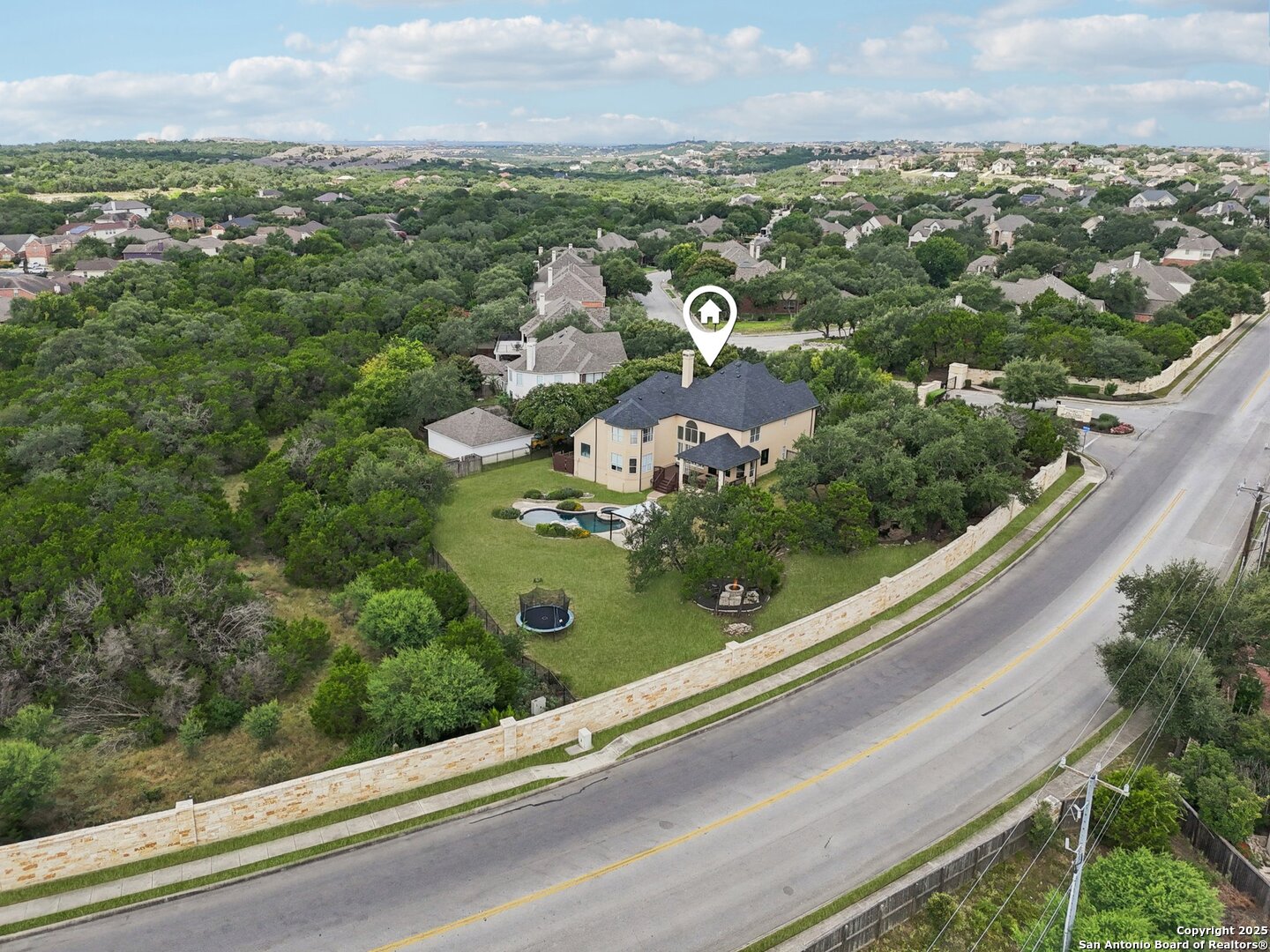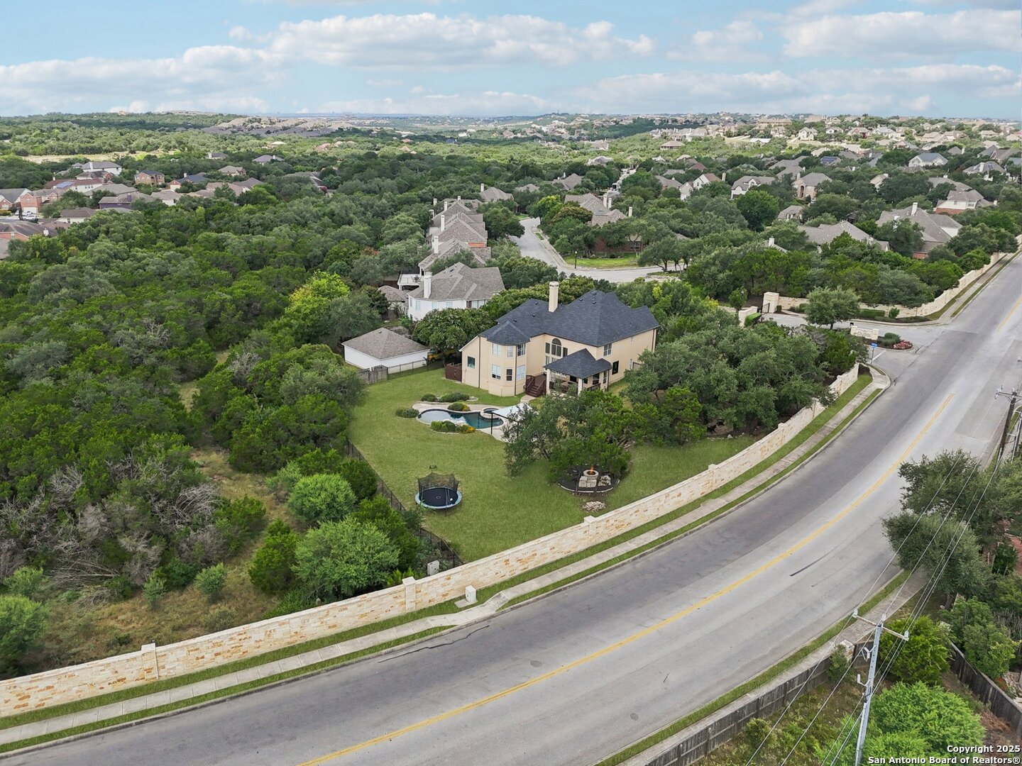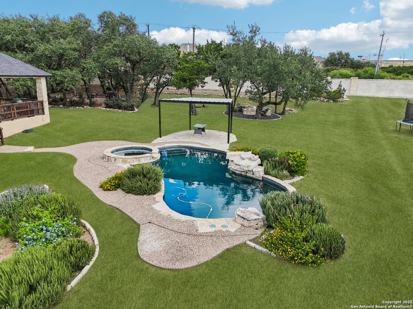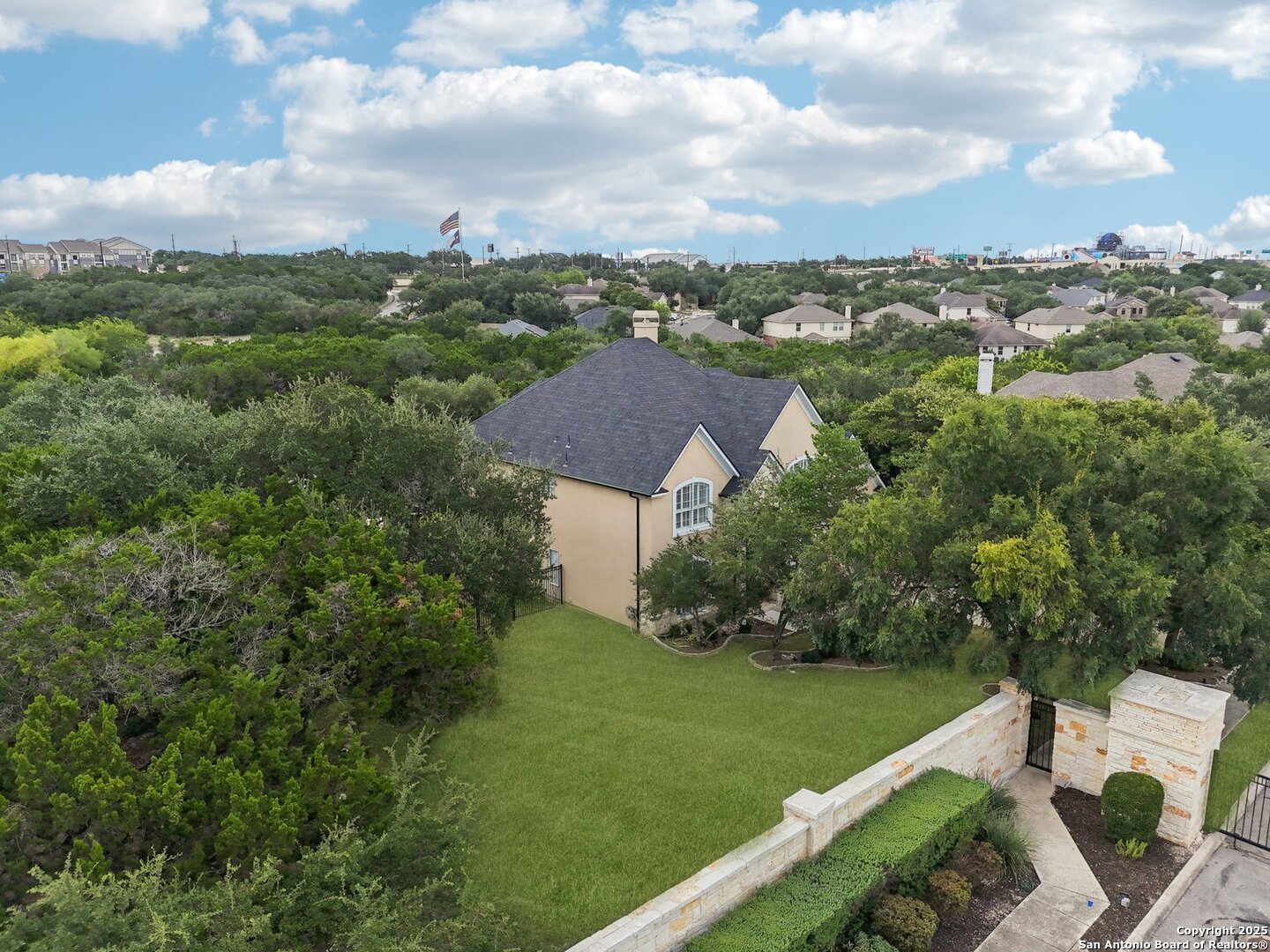Welcome to your 4,800 sq ft dream home in the gated community of Mountain Lodge, where luxury and privacy abound. Nestled on nearly half an acre backing to a greenbelt, this elegant retreat features a Keith Zars pool and spa, lush landscaping, a pergola, and a built-in firepit-perfect for year-round entertaining. Enjoy a brand-new roof, fresh paint, designer double entry doors, and a remodeled kitchen with high-end finishes. The main-level primary suite boasts a fireplace, electric blinds, spa-like bath, and custom walk-in closet. A soaring two-story foyer opens to light-filled living spaces with surround sound, while upstairs offers four bedrooms, two baths, a bonus room, and a fully equipped theater. With a 3-car garage, 3-stall carport, and easy access to US-281, top schools, and shopping-this home truly has it all. Schedule your private tour today.
