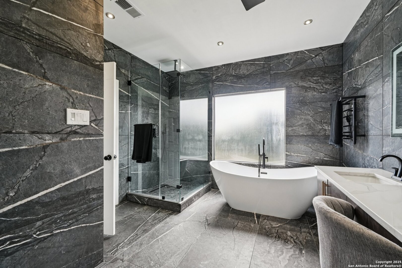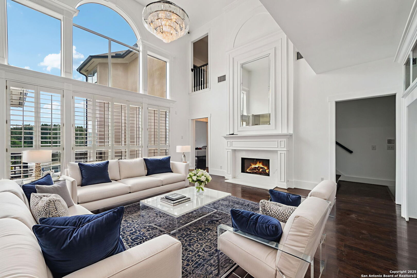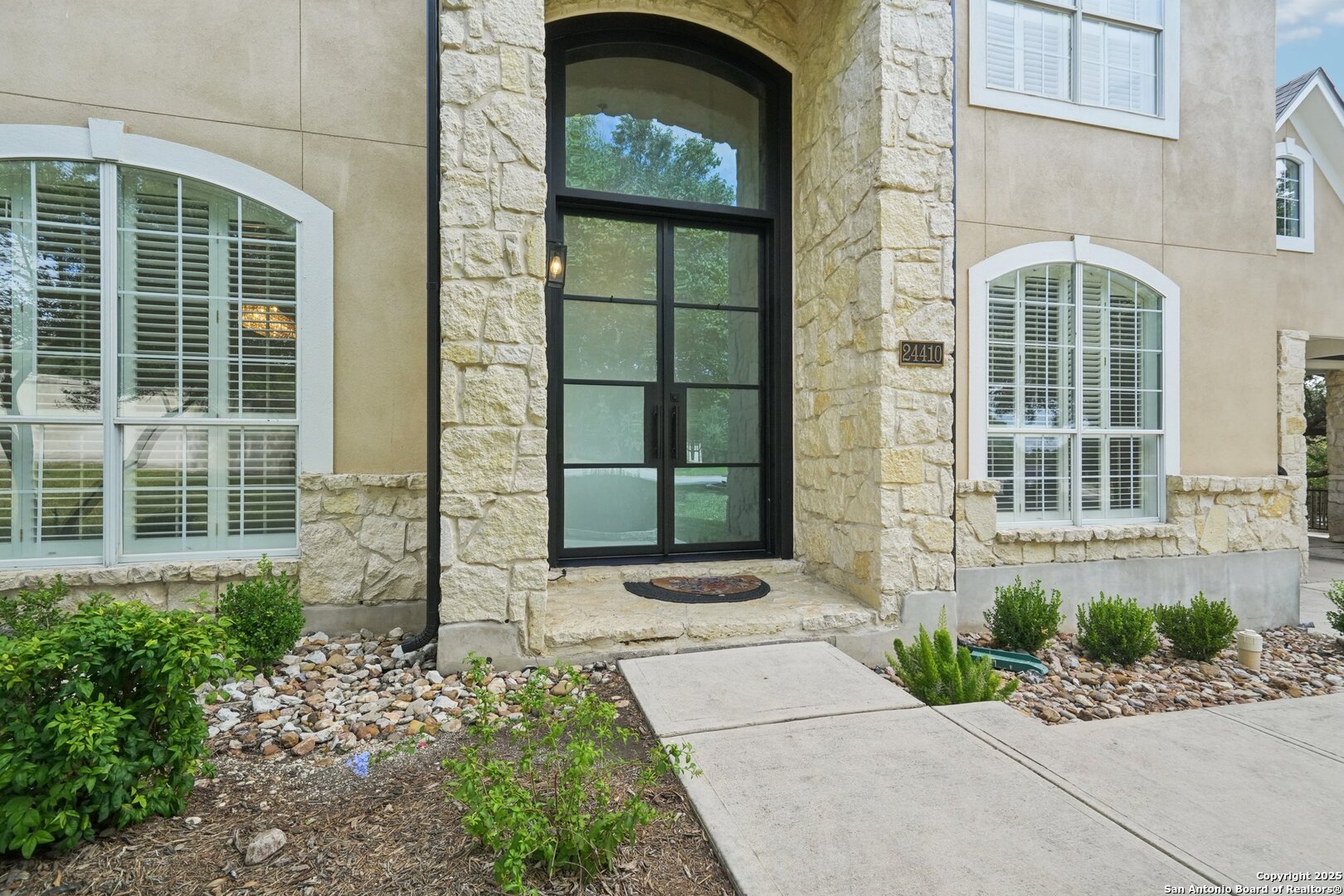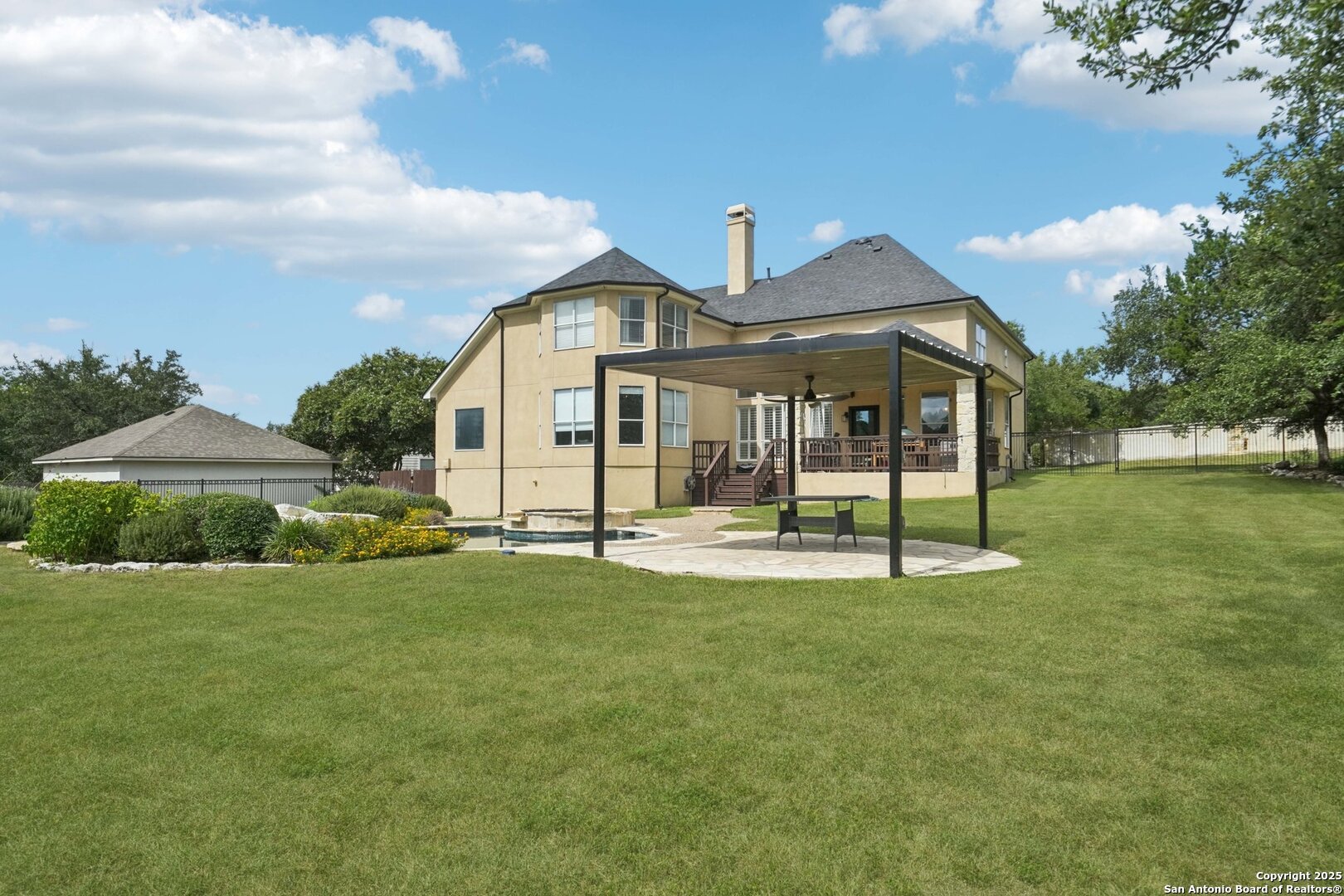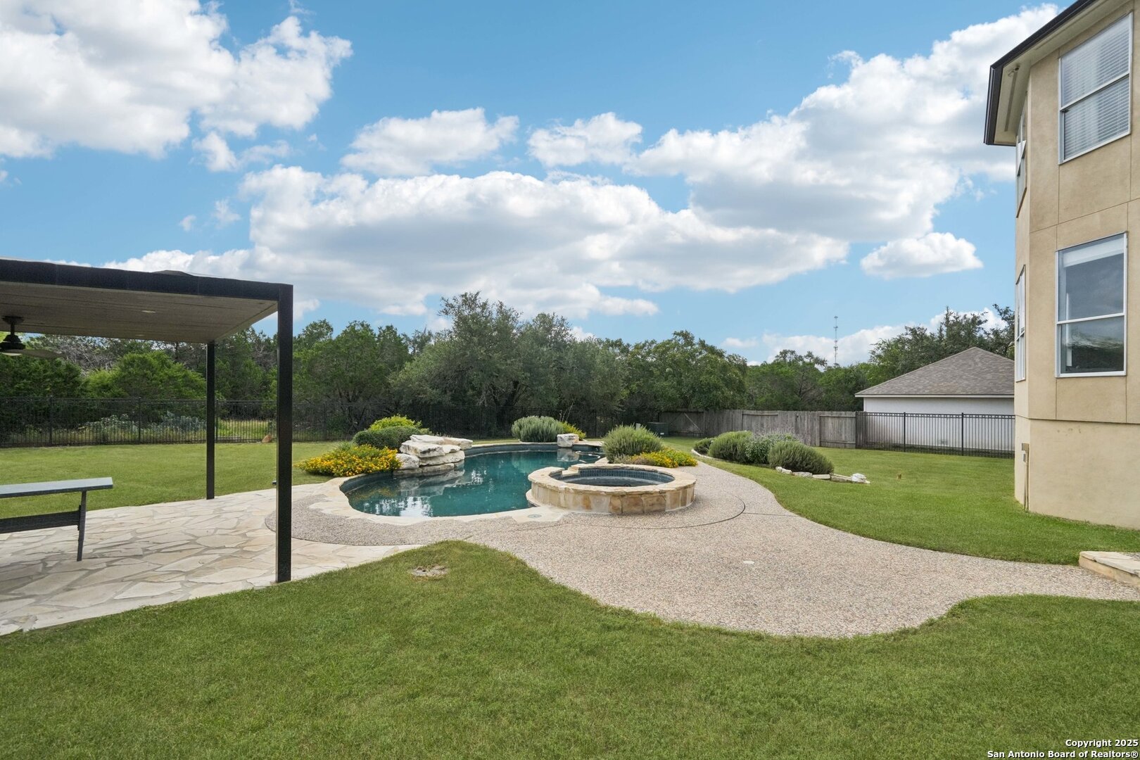 Welcome to your 4,800 sq ft dream home in the gated community of Mountain Lodge, where luxury and privacy abound. Nestled on nearly half an acre backing to a greenbelt, this elegant retreat features a Keith Zars pool and spa, lush landscaping, a pergola, and a built-in firepit-perfect for year-round entertaining. Enjoy a brand-new roof, fresh paint, designer double entry doors, and a remodeled kitchen with high-end finishes. The main-level primary suite boasts a fireplace, electric blinds, spa-like bath, and custom walk-in closet. A soaring two-story foyer opens to light-filled living spaces with surround sound, while upstairs offers four bedrooms, two baths, a bonus room, and a fully equipped theater. With a 3-car garage, 3-stall carport, and easy access to US-281, top schools, and shopping-this home truly has it all. Schedule your private tour today.