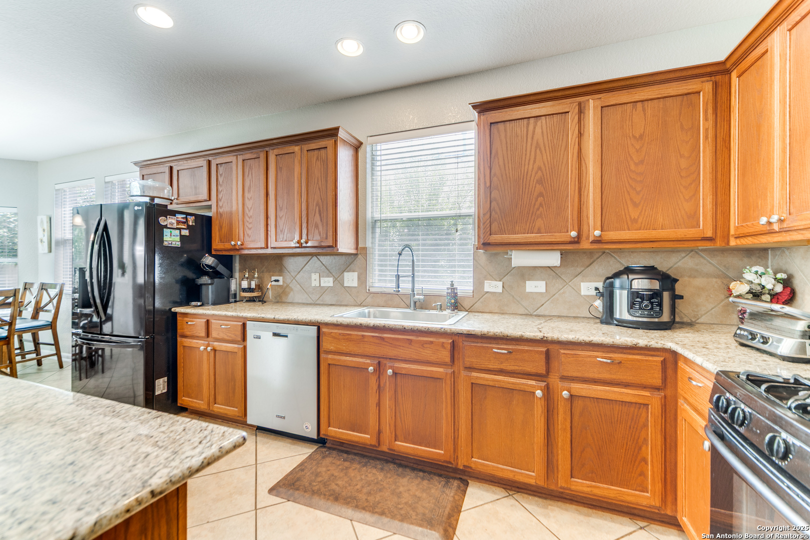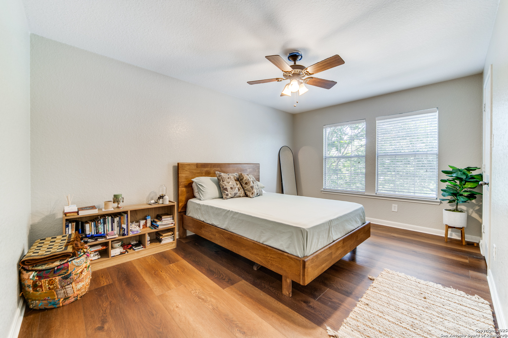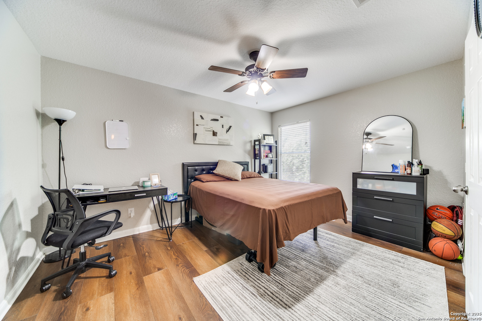Beautifully Maintained 5-Bedroom Home in Prime Location! Welcome to this exceptionally clean and well-kept home that looks just as good-if not better-in person. Featuring a versatile 5-bedroom layout, this home offers a full secondary bedroom & bathroom on the main level, perfect for a guest suite or mother-in-law retreat. Step inside to find an open and inviting floor plan filled with natural light, thanks to abundant windows throughout. The home boasts brand-new flooring and thoughtful updates, creating a fresh and modern feel. Enjoy the outdoors in a spacious, tree-lined backyard that backs to peaceful green space-ideal for relaxing or entertaining. Located in a sought-after neighborhood, you'll have access to a fantastic community pool, park, playground, and basketball court. Conveniently situated directly across the street from highly rated Aue Elementary, this home offers an unbeatable combination of comfort, location, and lifestyle.