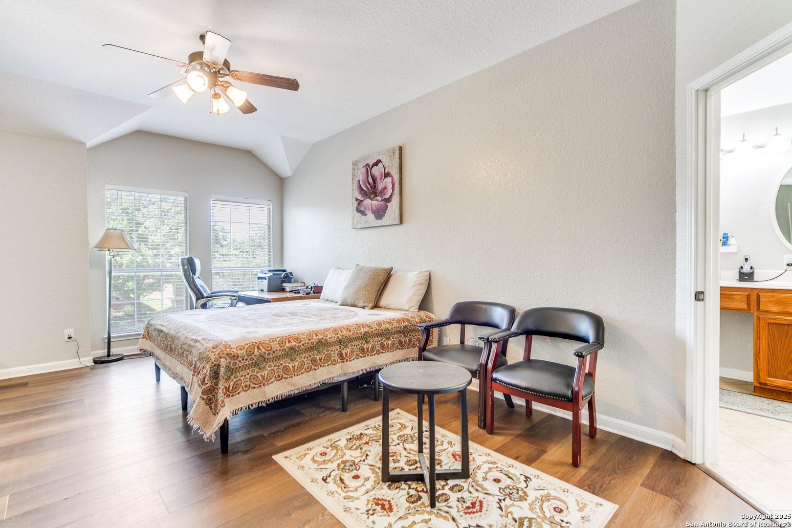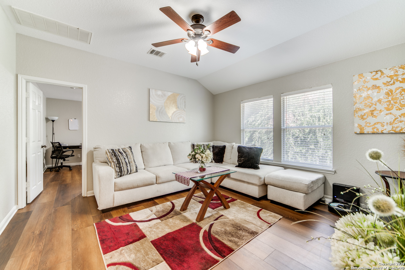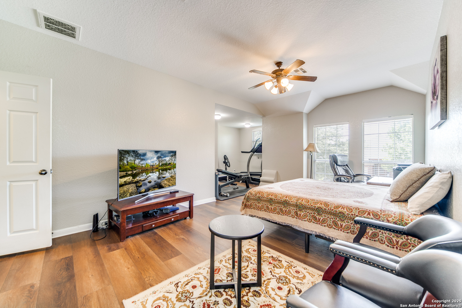 Beautifully Maintained 5-Bedroom Home in Prime Location! Welcome to this exceptionally clean and well-kept home that looks just as good-if not better-in person. Featuring a versatile 5-bedroom layout, this home offers a full secondary bedroom & bathroom on the main level, perfect for a guest suite or mother-in-law retreat. Step inside to find an open and inviting floor plan filled with natural light, thanks to abundant windows throughout. The home boasts brand-new flooring and thoughtful updates, creating a fresh and modern feel. Enjoy the outdoors in a spacious, tree-lined backyard that backs to peaceful green space-ideal for relaxing or entertaining. Located in a sought-after neighborhood, you'll have access to a fantastic community pool, park, playground, and basketball court. Conveniently situated directly across the street from highly rated Aue Elementary, this home offers an unbeatable combination of comfort, location, and lifestyle.