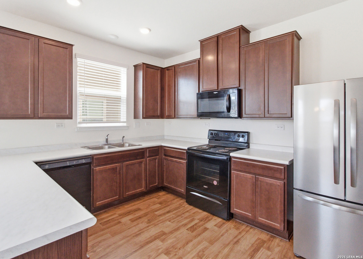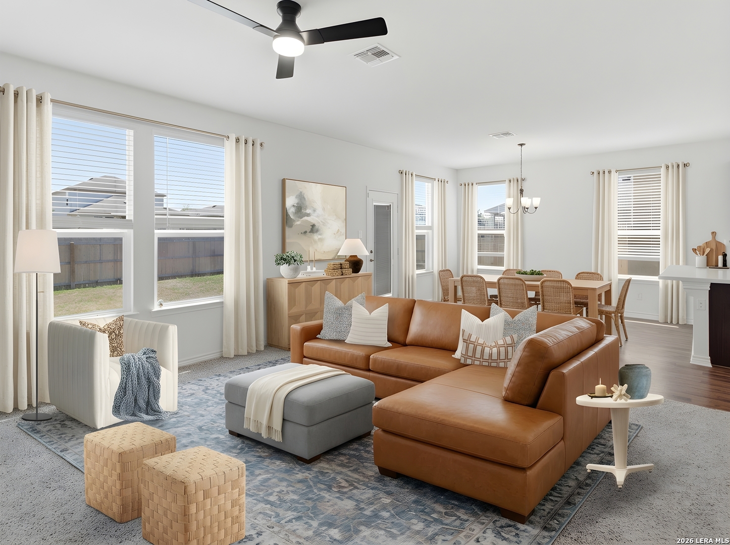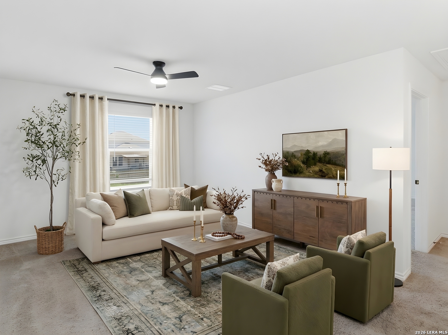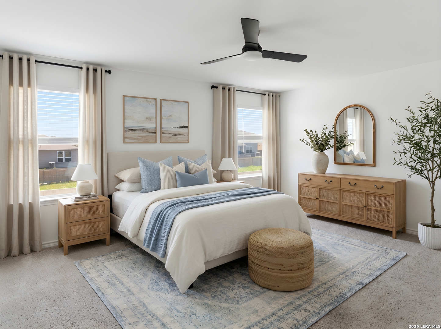 BACK ON MKT with updates! Spacious 4 Bedroom Home Near Community Pool in New Braunfels now includes washer, dryer and refrigerator. Open-concept layout with high ceilings, tall windows, and a mix of wood and carpet flooring, including newly installed carpet downstairs. The kitchen features a large peninsula, updated appliances, extra storage, and a walk-in pantry, all open to the main living area-perfect for gathering or entertaining. A secondary living area upstairs provides flexible space for a game room, office, or additional lounge area. The primary suite includes a split vanity and walk-in shower, with three additional bedrooms and full baths offering plenty of room to spread out. Enjoy a long driveway, attached garage, and large fenced backyard for outdoor living. Located just one home away from the community pool, with HOA covered by the owner. Schedule your showing or apply today!