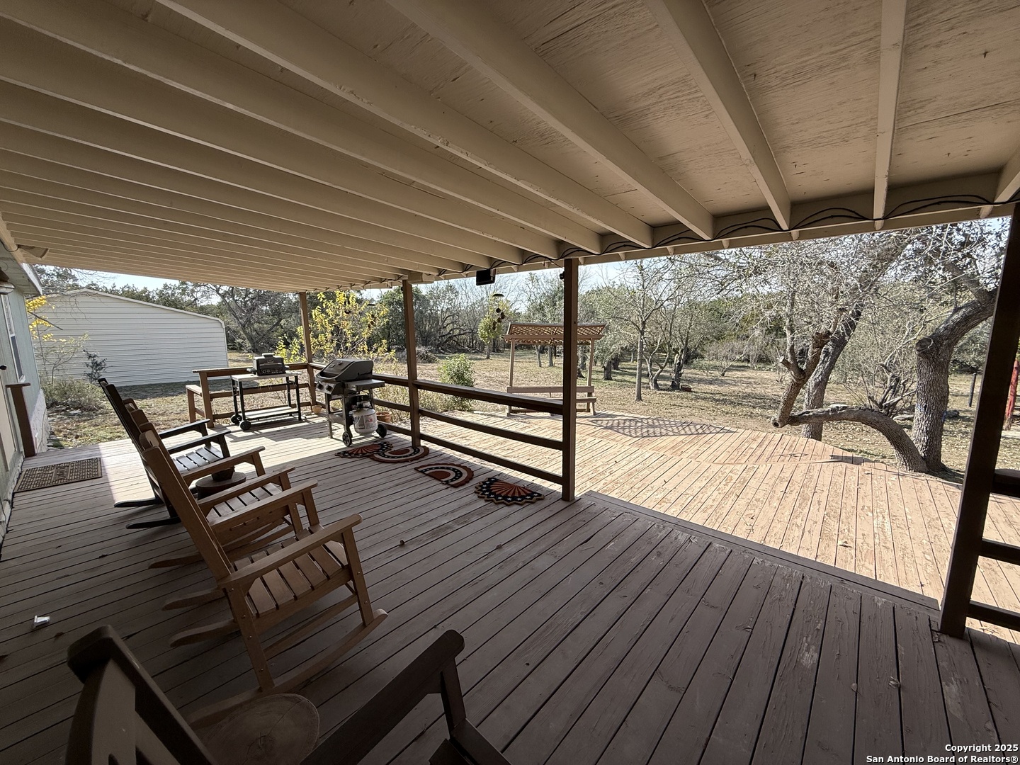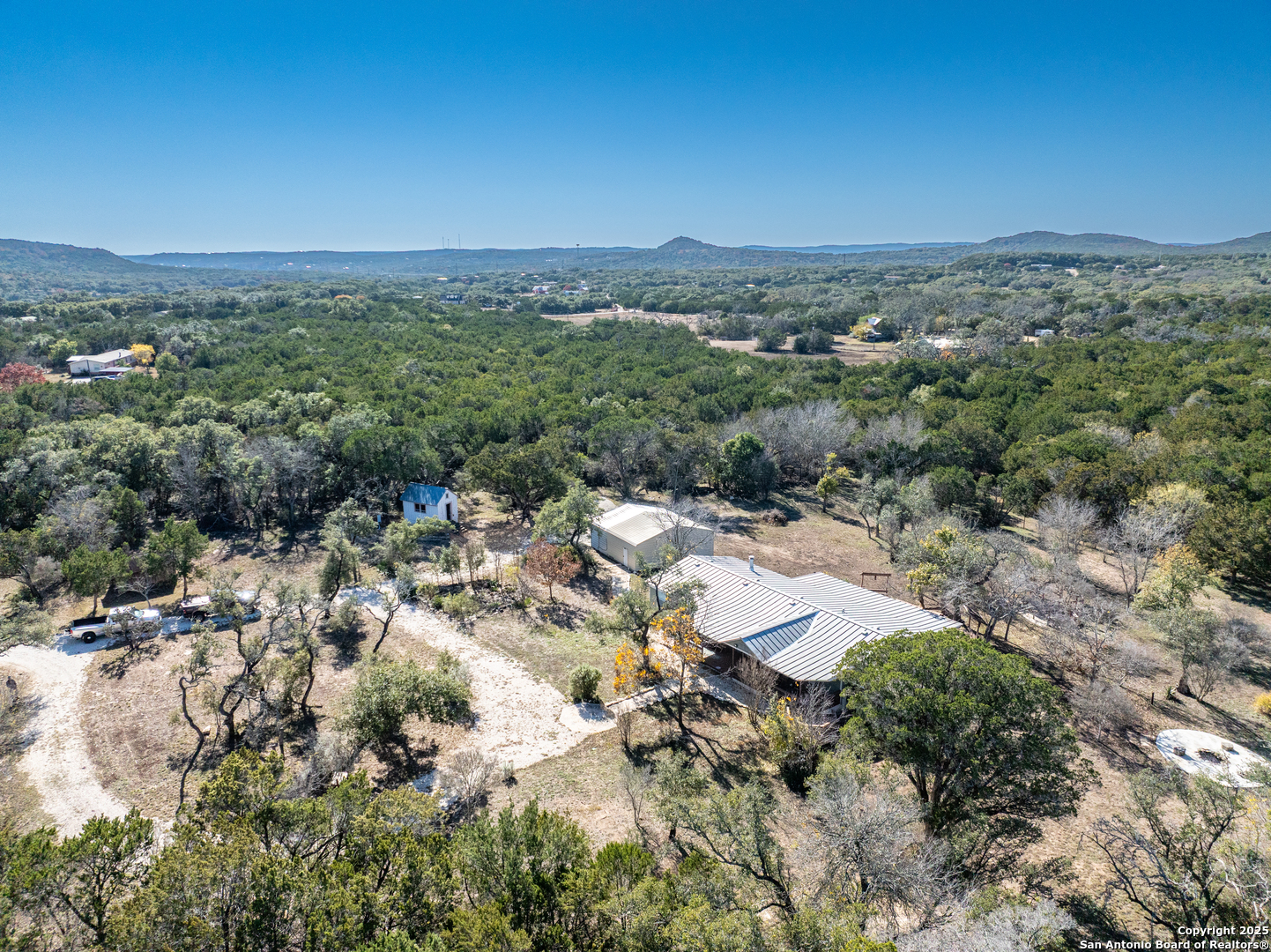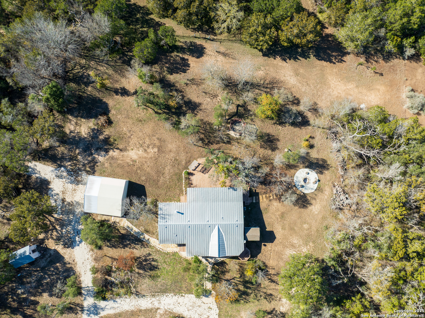 Welcome to your private 10-acre retreat! This fully fenced property features a beautifully renovated double-wide home that comes fully furnished, plus an insulated 2-car detached shop-perfect for work or hobbies. Enjoy outdoor living at its finest with a large, grand covered back patio ideal for entertaining or enjoying a Texas sunset, a massive covered front porch, and an inviting in-ground fire pit for cozy evenings. The land is lush with mature trees and equipped with an irrigation system, well, and well house to support your outdoor needs. Plus, there are three additional outbuildings offering versatile storage or workspace options. Privacy is paramount here-no visible neighbors and no HOA to worry about. Conveniently located just a short drive from San Antonio, Bandera, Boerne, and Medina Lake, this property offers the perfect balance of peaceful country living with easy city access. Don't miss the chance to own your own slice of Texas paradise, fully furnished and move-in ready!