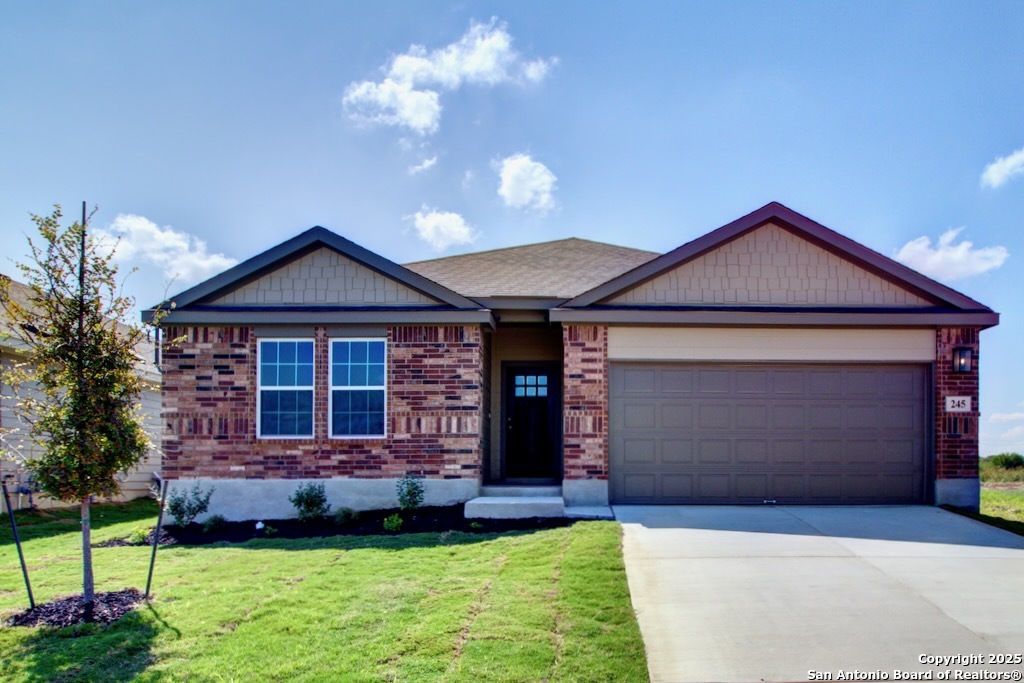 Extended Owner's Suite! Welcome to Westridge! This thoughtfully designed single story Avalon floor plan by DRB Homes offers 4 bedrooms, 2 bathrooms, and functional living throughout. The open concept layout features a modern kitchen with a center island and undermount sink, gas stainless steel appliances, and a corner pantry perfect for everyday meals and entertaining. The kitchen flows seamlessly into the casual dining area and spacious great room, creating a central hub for the home, and an open floor plan. The extended Owner's Suite is a private retreat with a ceramic tile shower, single vanity, private water closet, and a generously sized closet. Three additional bedrooms provide flexibility. The laundry room is located near the 2 car garage for convenience. Exterior highlights include classic brick masonry, a covered back patio for outdoor enjoyment, and a full yard sprinkler system. Located in the Westridge community, residents will enjoy future access to a pool, pickleball court, and playground. Schedule your showing today!