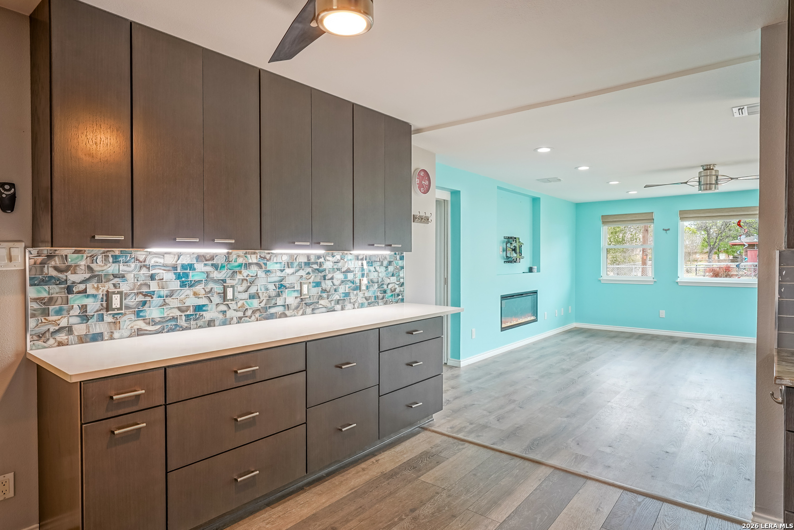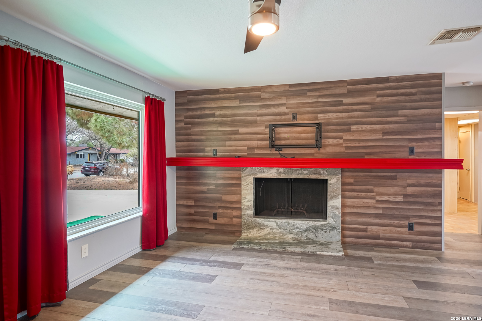 Stop the car! This updated and upgraded Windcrest showstopper is an absolute must see! Situated on a massive 0.43 acre lot, this beautifully renovated home has something for everyone! Step inside and you'll find an open floorplan, with gorgeous luxury vinyl plank flooring throughout! You'll be greeted by a cozy and bright living room, with a giant picture window letting in tons of natural light and a wood burning fireplace with a granite surround! The fabulous island kitchen boasts cabinets galore (with lazy susans in the corner), stainless appliances, and sparkling granite countertops! The bright and spacious family room beyond the kitchen has a dazzling built in electric "fireplace," a wet bar, and a fridge - an ideal space for entertaining as the sliding door leads out back to a sprawling deck! The utility/laundry room is sensational - tons of storage, pull-out drawers in the cabinets, a mud sink, clothes hanging space - there's even a spot for pet dishes! Adjacent you'll find an incredible workshop - with a mud sink and a door leading to a huge patio slab and one of the THREE storage sheds on the property! The workshop and its adjoining rooms could double as a home office, craft space, studio - the possibilities are endless! There's a half bath there too! There's a section of the converted garage remaining for storage and the roll up doors are functional! Along with all the glitz and glam, the home has had tons of essential functional components updated and upgraded - all bathrooms remodeled, electrical panels (upgraded to 200amp service) with whole house surge protector, Energy Star double pane windows, tankless on-demand water heater, Lennox Pure Air HVAC with UV filtration, foundation stabilization, sewer drain lines under the home and in the yard, dimensional shingle roof, gutters, the list goes on and on! Move in ready and priced to sell, schedule your showing ASAP!