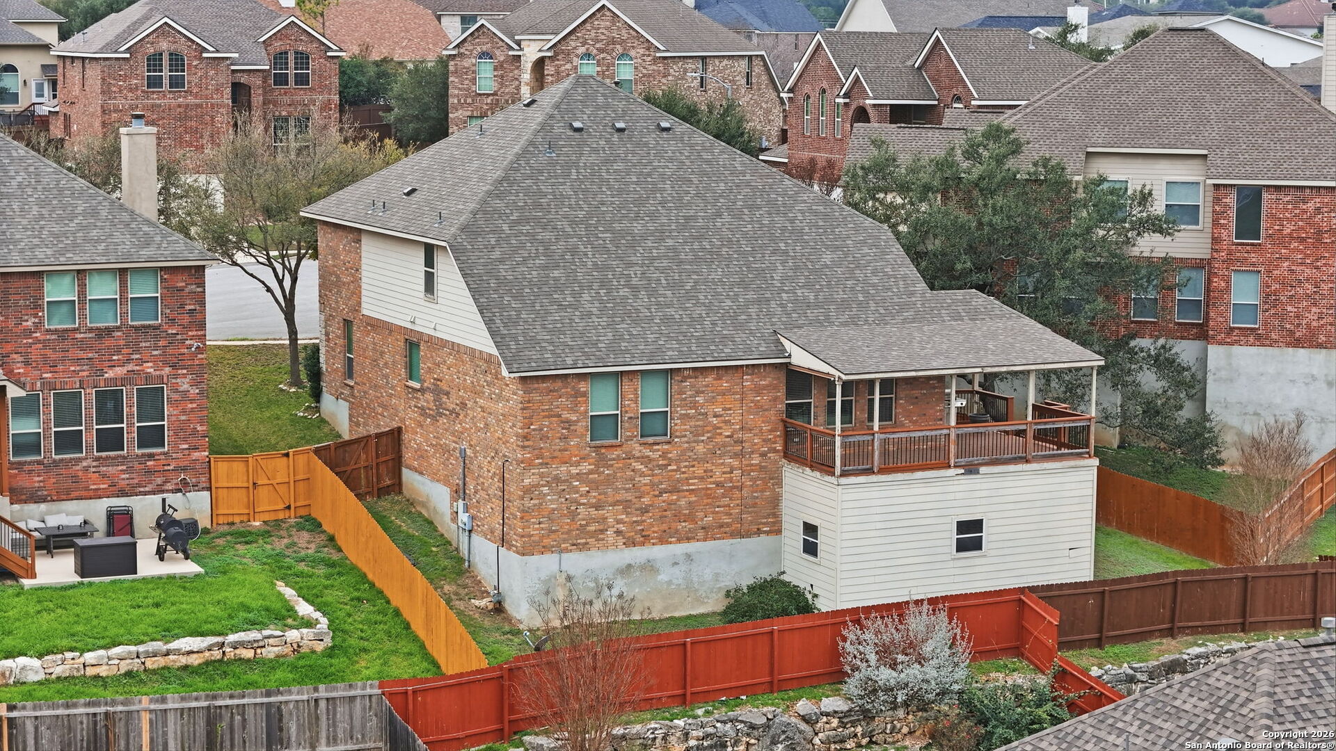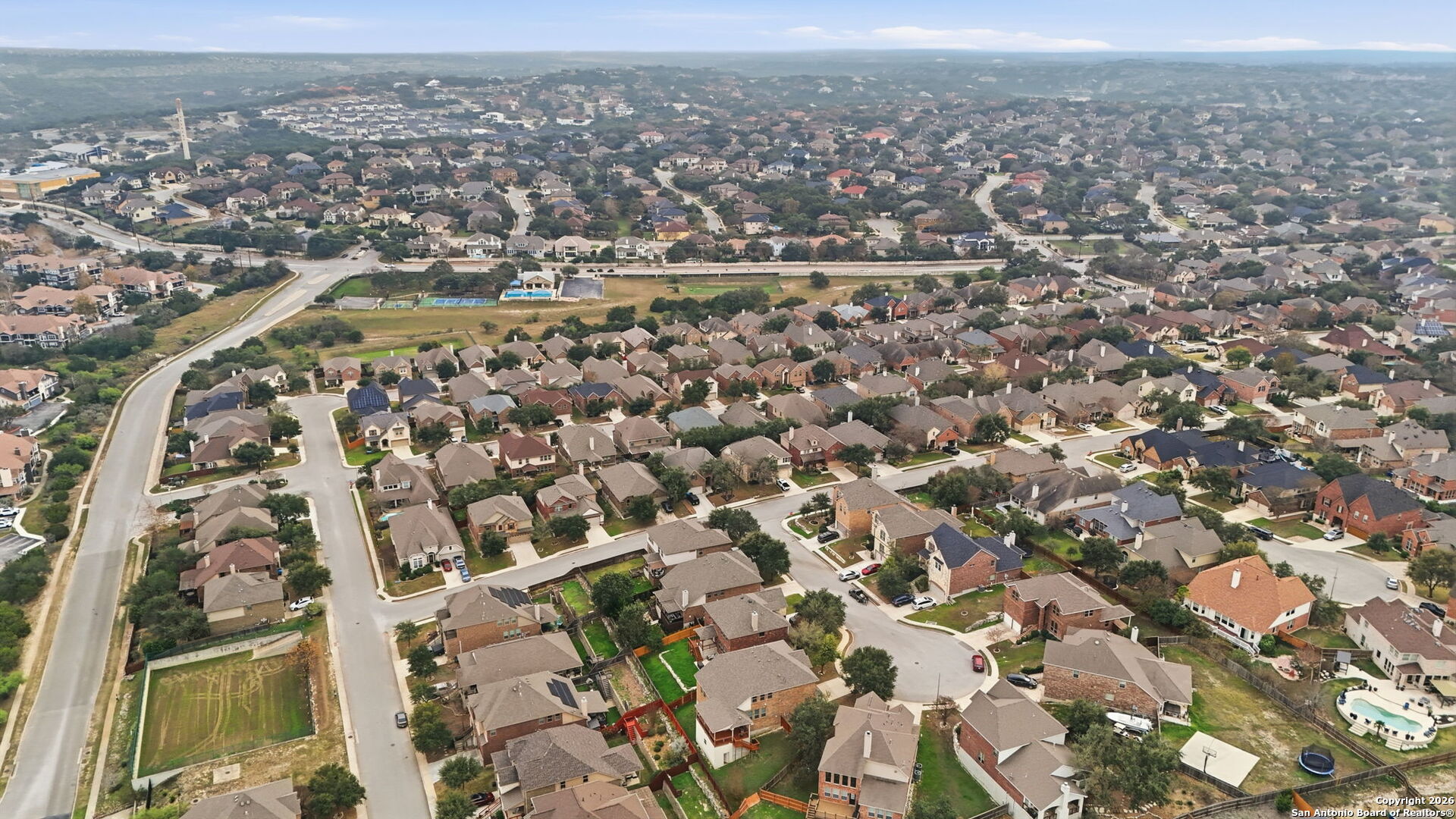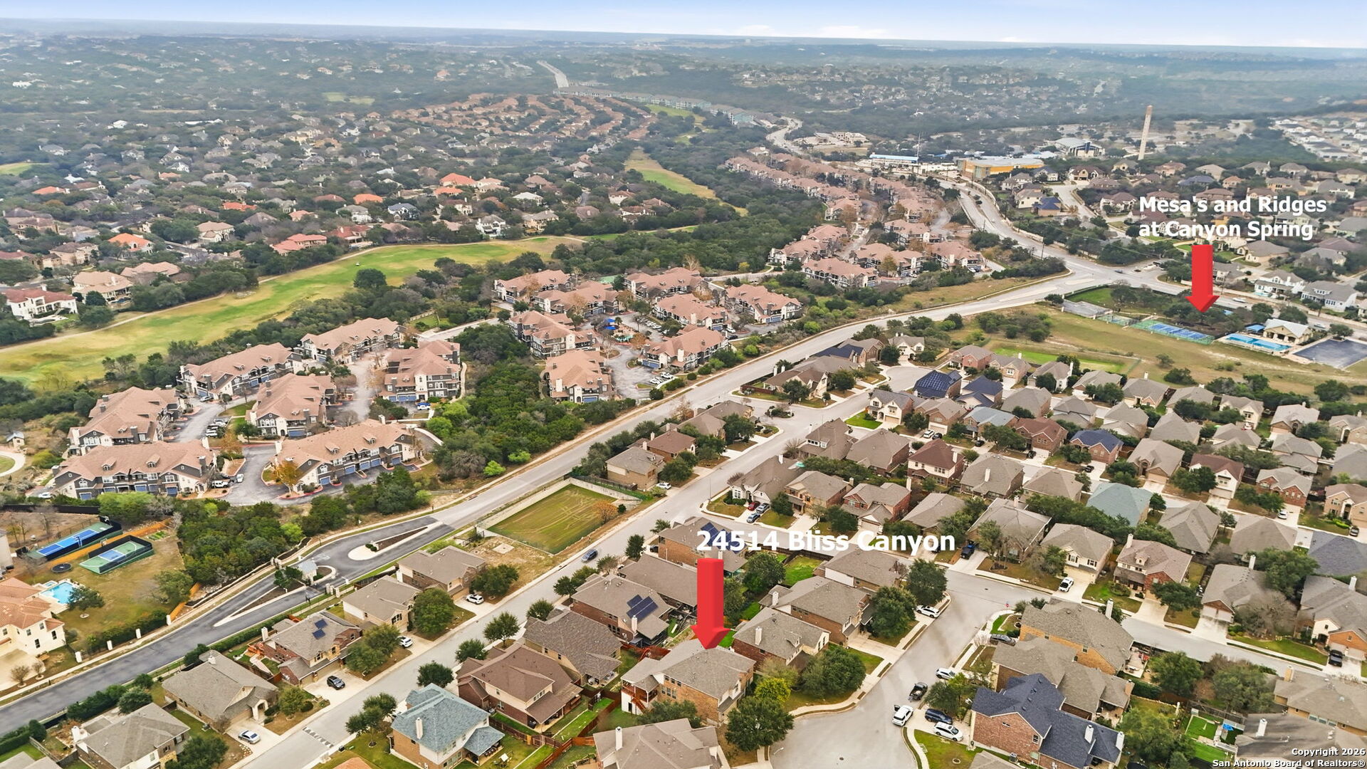 TUCKED AWAY ON A QUIET CUL-DE-SAC INSIDE THE GATED RIDGE AT CANYON SPRINGS COMMUNITY, THIS IMPRESSIVE HOME OFFERS SPACE, PRIVACY, AND A LAYOUT DESIGNED FOR BOTH COMFORT AND ENTERTAINING. FEATURING 5 BEDROOMS, 3.5 BATHROOMS, AND 3,319 SQ FT OF LIVING SPACE, THIS PROPERTY COMBINES THOUGHTFUL DESIGN WITH RECENT UPGRADES, INCLUDING A BRAND-NEW ROOF INSTALLED IN APRIL 2025. THE FLEX ROOM AT THE FRONT OF THE HOME FUNCTIONS PERFECTLY AS A HOME OFFICE OR FORMAL DINING SPACE. THE OVERSIZED KITCHEN WITH GAS COOKTOP OPENS TO A SPACIOUS BREAKFAST AREA THAT EASILY ACCOMMODATES AN EIGHT-SEAT TABLE AND FLOWS EFFORTLESSLY INTO THE FAMILY ROOM, CREATING AN INVITING OPEN-CONCEPT FEEL. PRIMARY BEDROOM DOWNSTAIRS WITH GREAT VIEWS OF THE CITY. UPSTAIRS, A MASSIVE GAME ROOM WITH ADDED SAFETY RAILING OVERLOOKS THE LIVING AREA AND IS SURROUNDED BY FOUR SECONDARY BEDROOMS, EACH WITH WALK-IN CLOSETS, ALONG WITH TWO FULL JACK-AND-JILL BATHROOMS. STEP ONTO THE EXTENDED BACK DECK TO TAKE IN PEACEFUL MORNING VIEWS OF THE HILL COUNTRY AND STONE OAK AREA. THIS HOME HAS BEEN PRICED AGGRESSIVELY AND INCLUDES OVER $15,000 IN RECENT FLOORING UPGRADES, FEATURING NEW LAMINATE FLOORING IN THE OWNER'S SUITE AND STAIRS, PLUS NEW PREMIUM CARPETING IN THE OWNER'S WALK-IN CLOSET, ALL UPSTAIRS BEDROOMS, GAME ROOM/THEATER, CLOSETS, AND HALLWAYS. ORIGINAL TILE FLOORING IS PRESERVED IN THE OFFICE, KITCHEN, BREAKFAST AREA, HALLWAYS, AND ALL BATHROOMS. LOCATED JUST 0.8 MILES FROM HEB AND CVS, THIS HOME DELIVERS EVERYDAY CONVENIENCE IN A SETTING YOU'LL LOVE COMING HOME TO.
