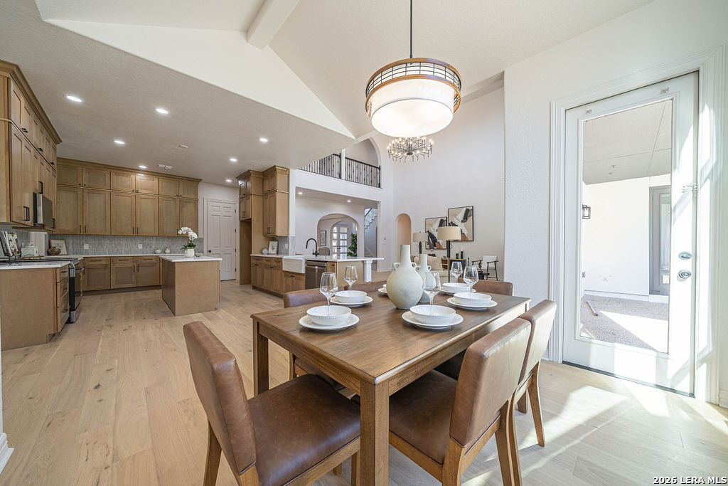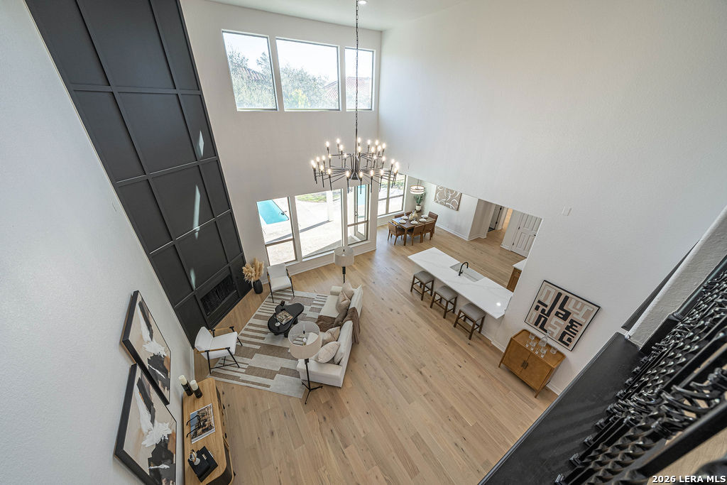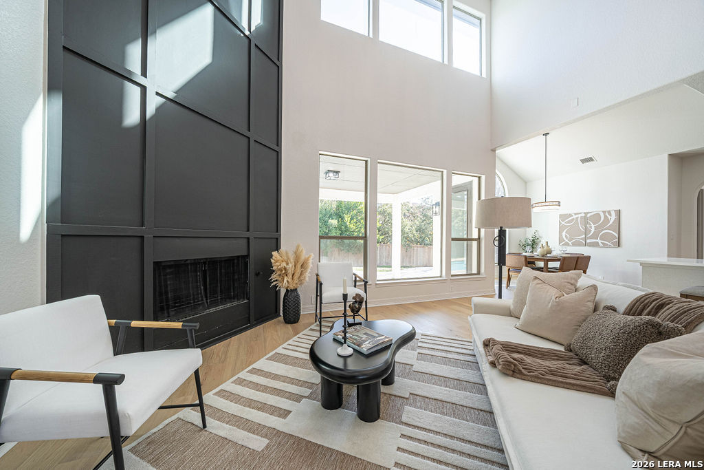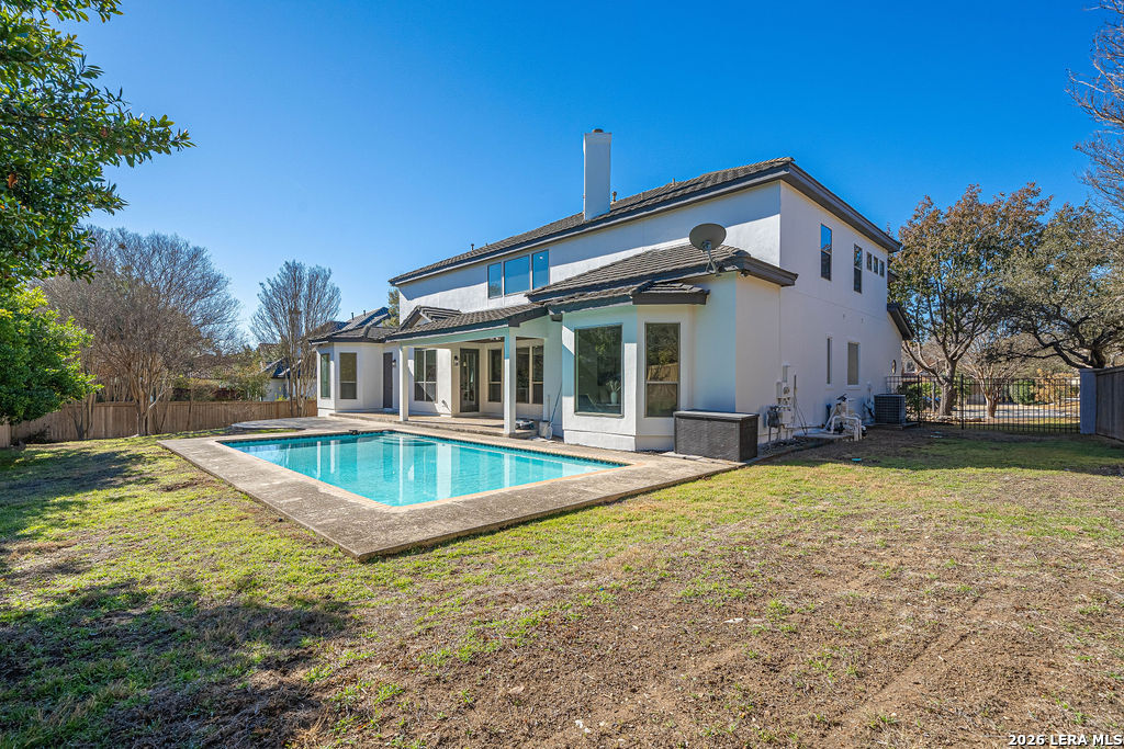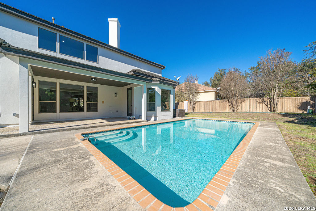 Welcome to 24615 Birdie Ridge in the guard-gated community of Canyon Springs-an exceptional, fully remodeled 5-bedroom, 4.5-bath home blending classic style with warm, earthy finishes and abundant space for everyday living and entertaining. Freshly repainted inside and out, this home is move-in ready with thoughtful upgrades throughout. The main level features hardwood flooring and soaring ceilings in the living room, where an accent fireplace and oversized windows create a bright, inviting atmosphere. The beautifully updated kitchen offers generous counter space with quartz countertops, natural wood cabinetry, new appliances, a custom pantry, and a modern-yet-cozy backsplash that ties it all together. The dining area is accented with highlights that benefit any kind of dining gathering. A custom-designed laundry room adds both function and style with detailed cabinetry and ample workspace. Designed for flexibility, the home includes a mother-in-law suite adjacent to a full bath-ideal for guests or multi-generational living-plus a dedicated home office with striking wainscoting and custom detail. The primary suite is a true retreat with designer lighting, direct access to the patio and pool, and a resort-inspired spa bath featuring a soaking tub and custom shower. Upstairs, guest bedrooms are comfortably carpeted and enjoy convenient access to renovated bathrooms. A spacious media room is perfect for movie nights, gaming, or relaxing with guests. Step outside to a backyard built for entertaining, complete with a pool and large patio space. Set within one of the Northside's most scenic neighborhoods, Canyon Springs offers the added peace of mind of a guard-gated entrance and a beautiful Hill Country setting-just minutes from top amenities, dining, and shopping.