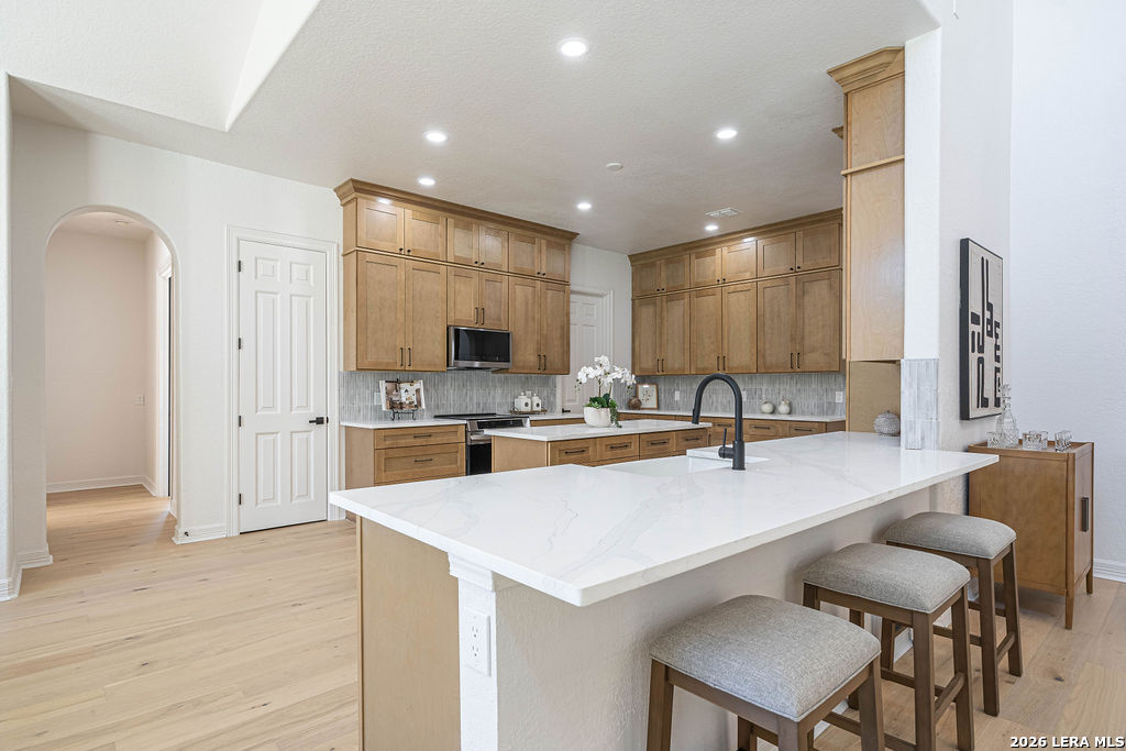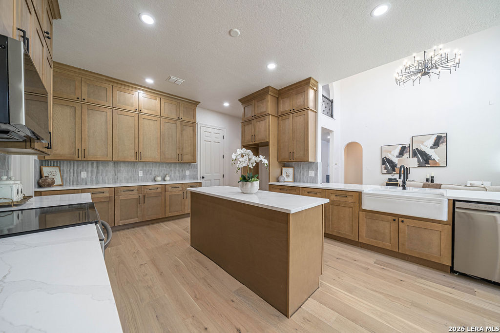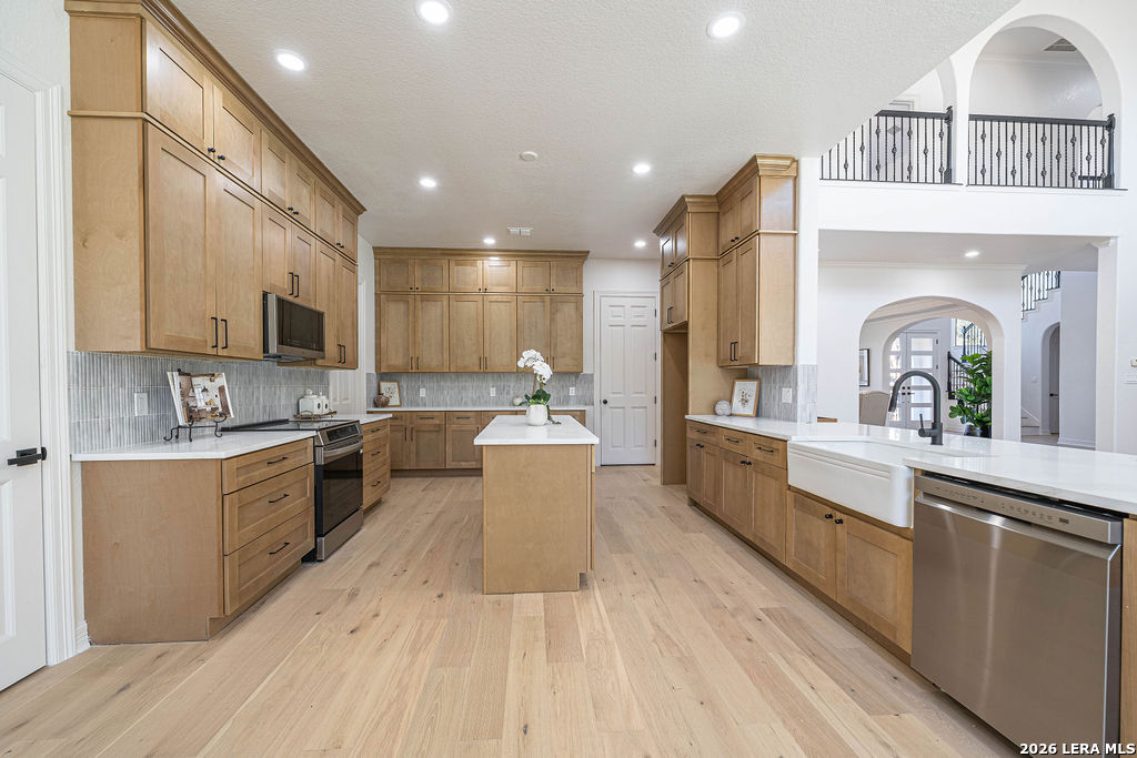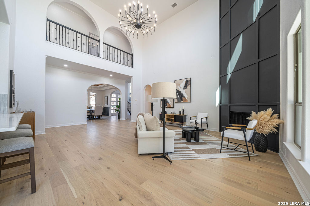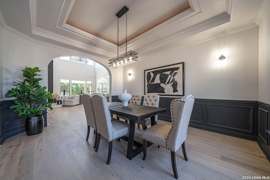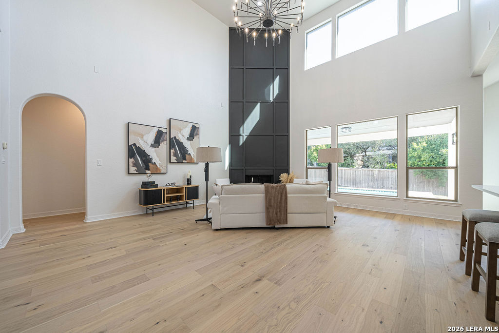 Welcome to 24615 Birdie Ridge in the guard-gated community of Canyon Springs-an exceptional, fully remodeled 5-bedroom, 4.5-bath home blending classic style with warm, earthy finishes and abundant space for everyday living and entertaining. Freshly repainted inside and out, this home is move-in ready with thoughtful upgrades throughout. The main level features hardwood flooring and soaring ceilings in the living room, where an accent fireplace and oversized windows create a bright, inviting atmosphere. The beautifully updated kitchen offers generous counter space with quartz countertops, natural wood cabinetry, new appliances, a custom pantry, and a modern-yet-cozy backsplash that ties it all together. The dining area is accented with highlights that benefit any kind of dining gathering. A custom-designed laundry room adds both function and style with detailed cabinetry and ample workspace. Designed for flexibility, the home includes a mother-in-law suite adjacent to a full bath-ideal for guests or multi-generational living-plus a dedicated home office with striking wainscoting and custom detail. The primary suite is a true retreat with designer lighting, direct access to the patio and pool, and a resort-inspired spa bath featuring a soaking tub and custom shower. Upstairs, guest bedrooms are comfortably carpeted and enjoy convenient access to renovated bathrooms. A spacious media room is perfect for movie nights, gaming, or relaxing with guests. Step outside to a backyard built for entertaining, complete with a pool and large patio space. Set within one of the Northside's most scenic neighborhoods, Canyon Springs offers the added peace of mind of a guard-gated entrance and a beautiful Hill Country setting-just minutes from top amenities, dining, and shopping.